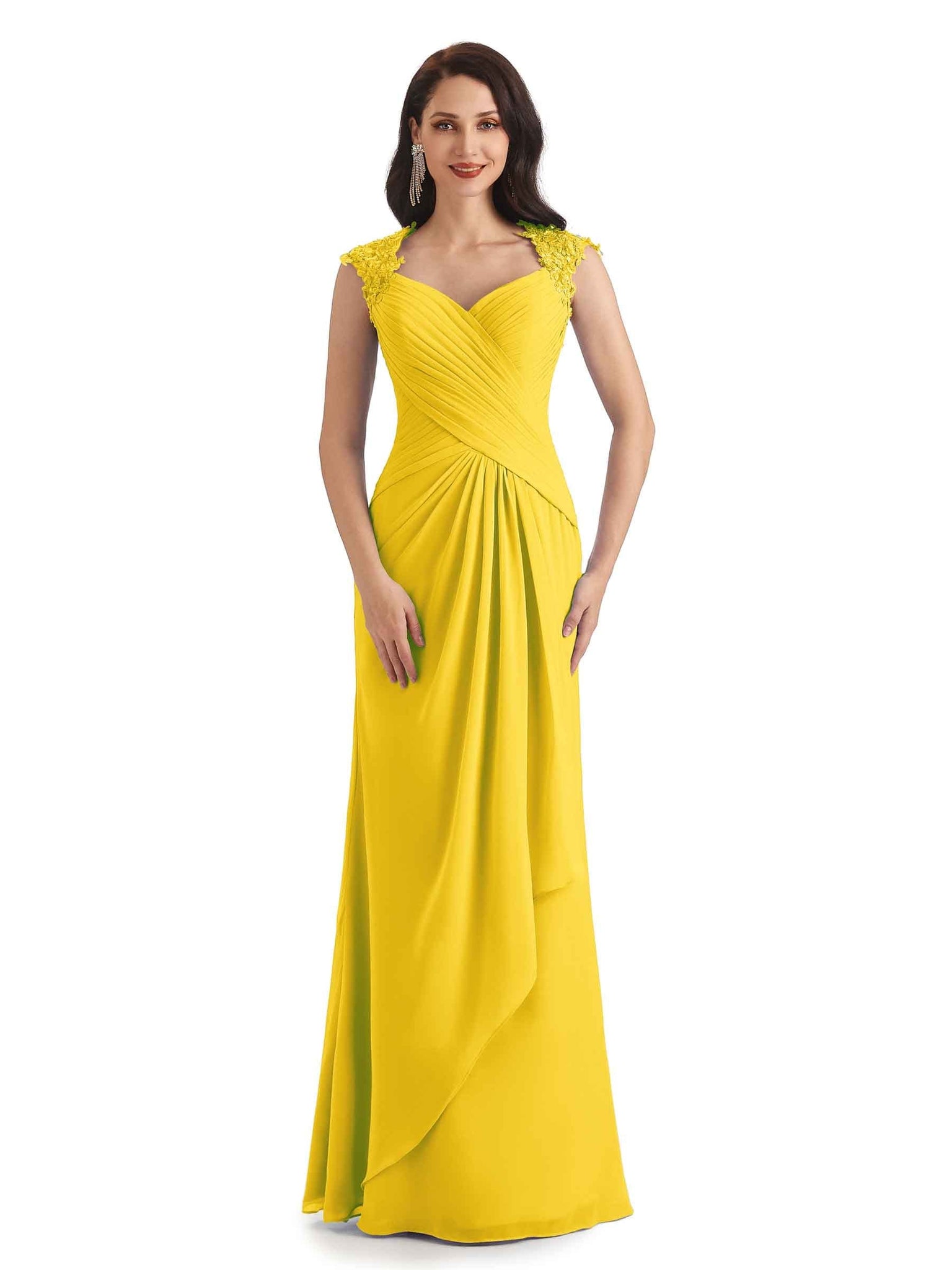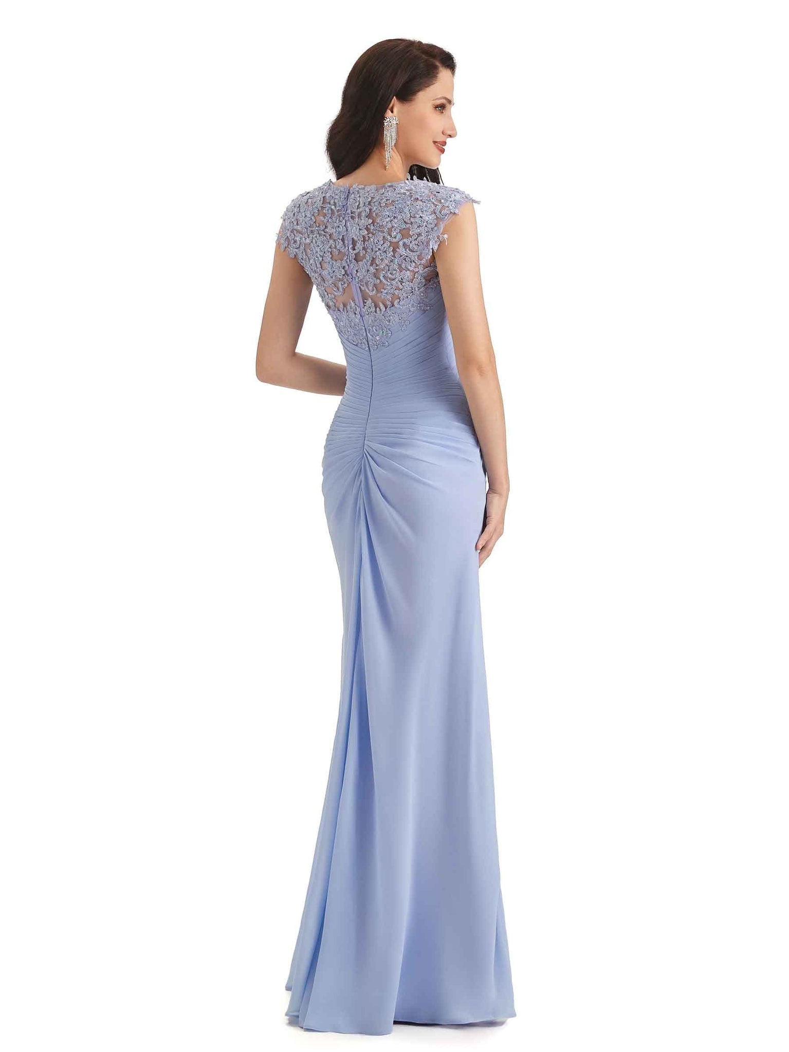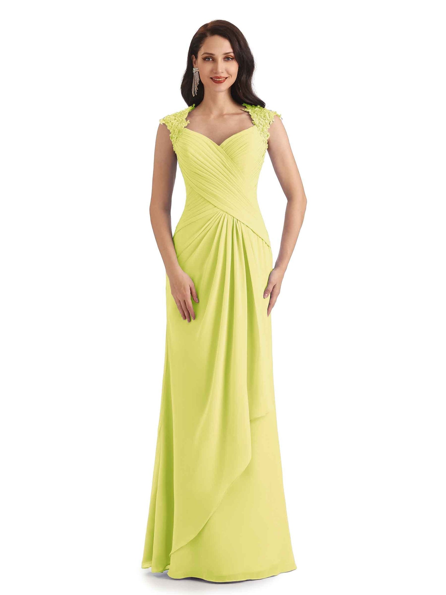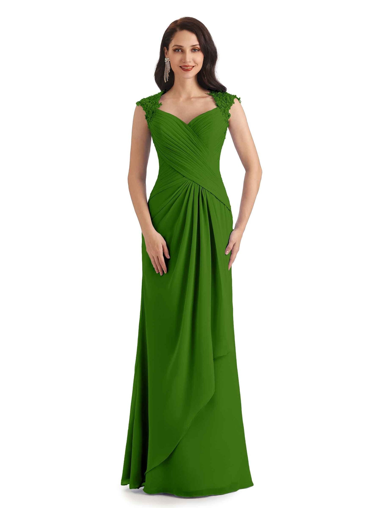 Elegant Chiffon Sheath Queen Ann Floor Length Mother of The Bride Dresses- ChicSew