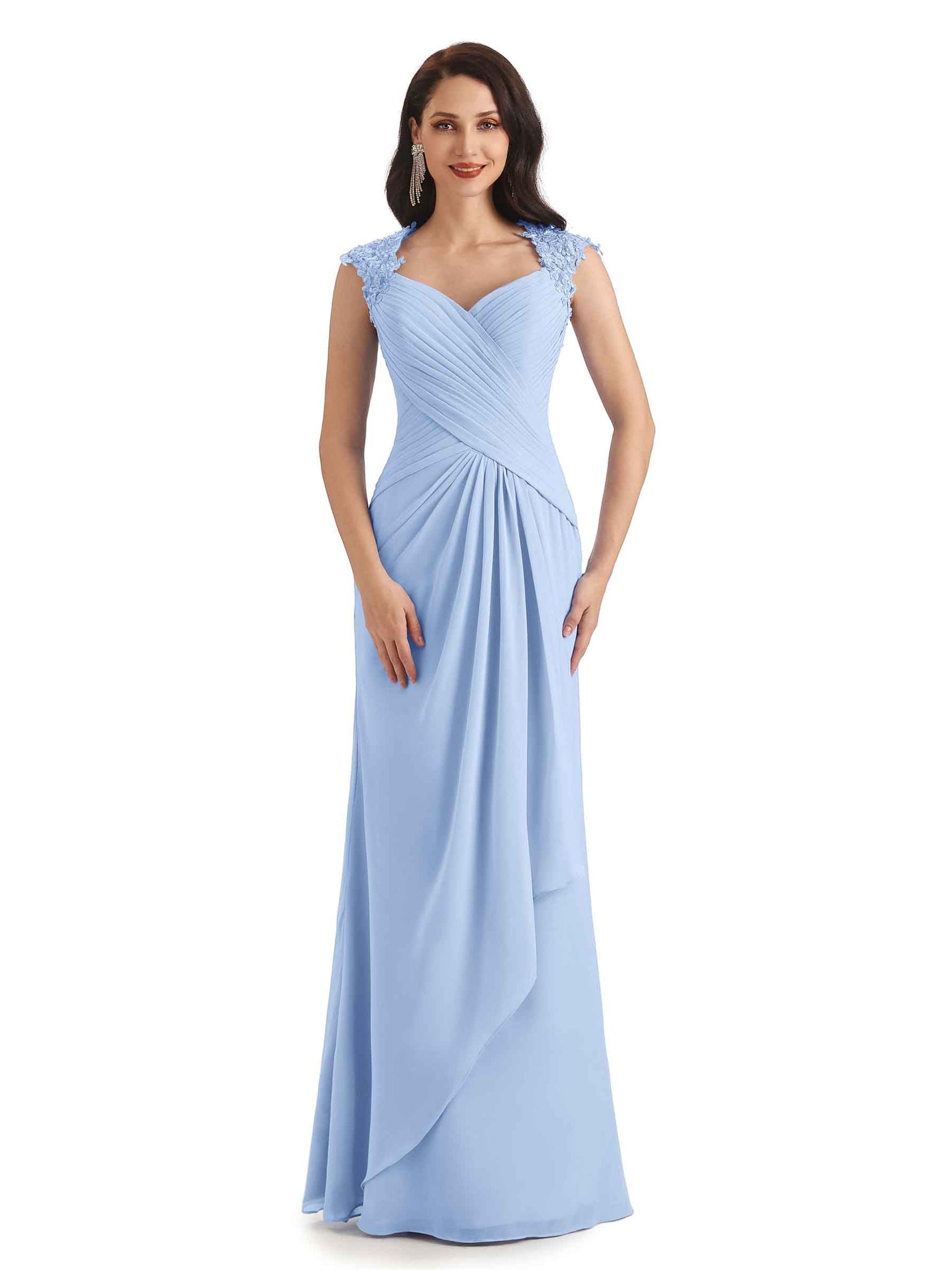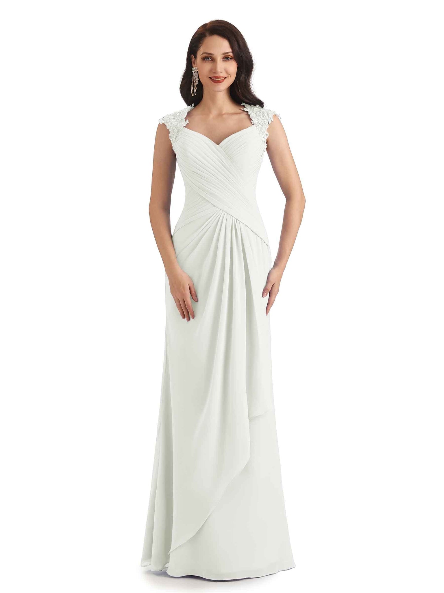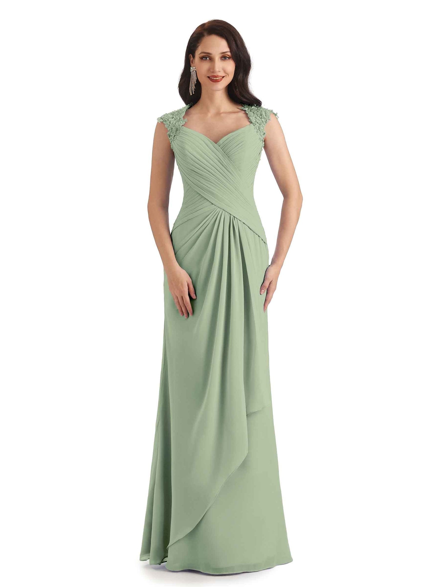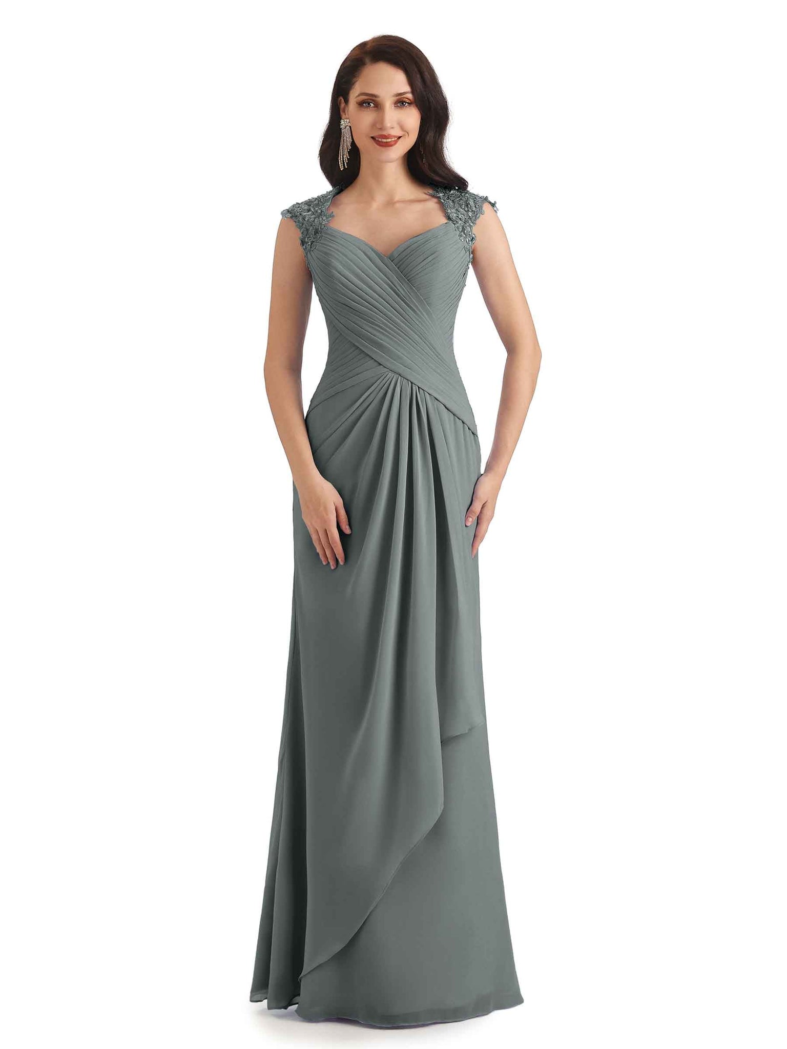 Elegant Chiffon Sheath Queen Ann Floor Length Long Mother of The Bride Outfits