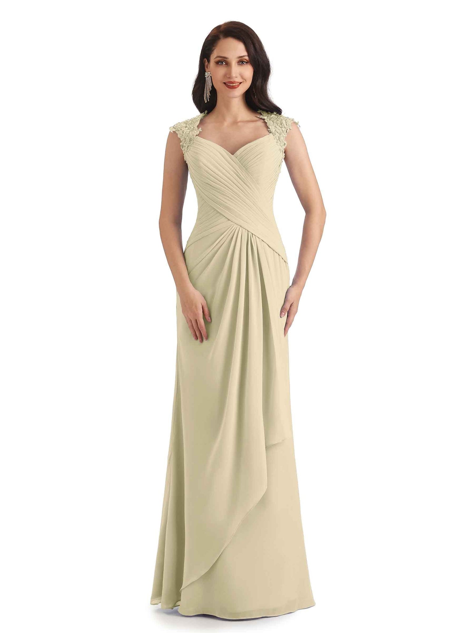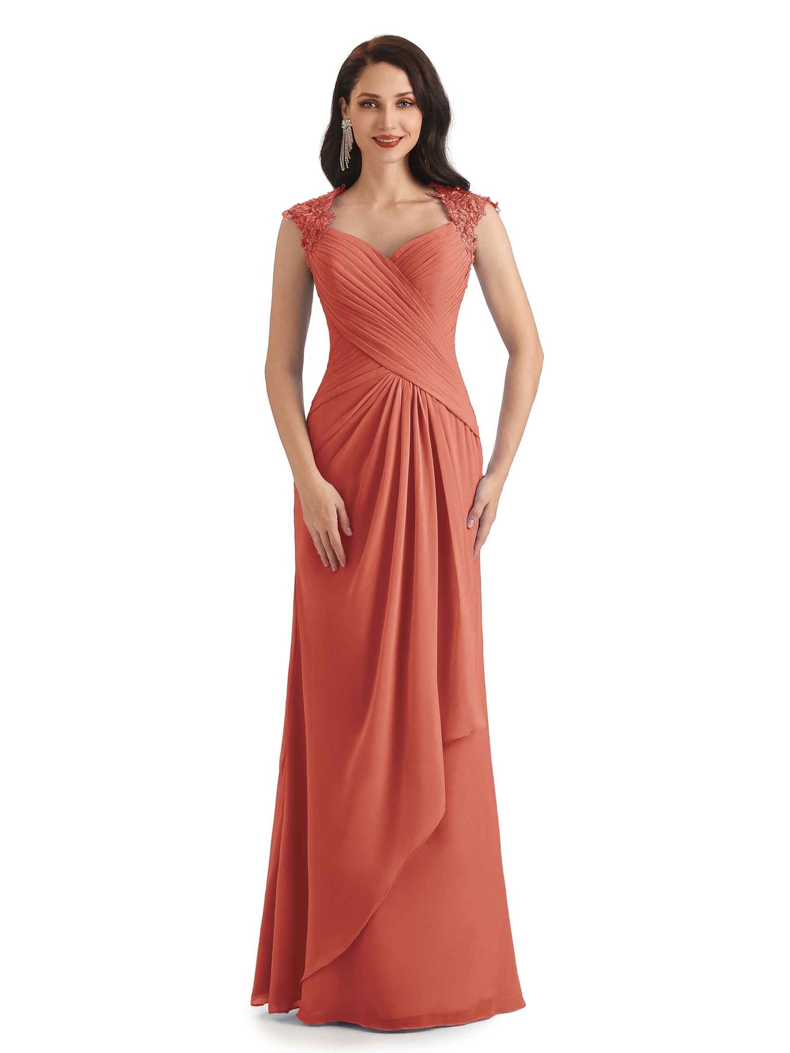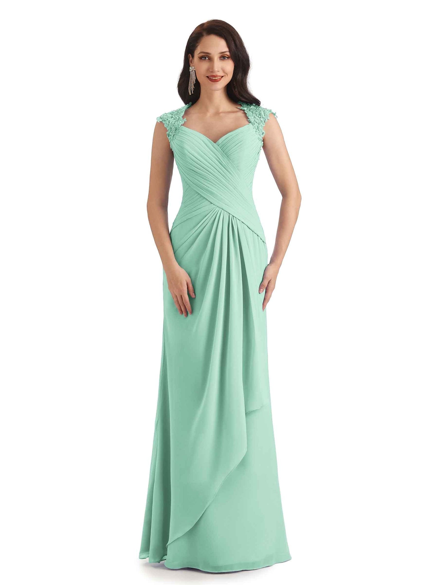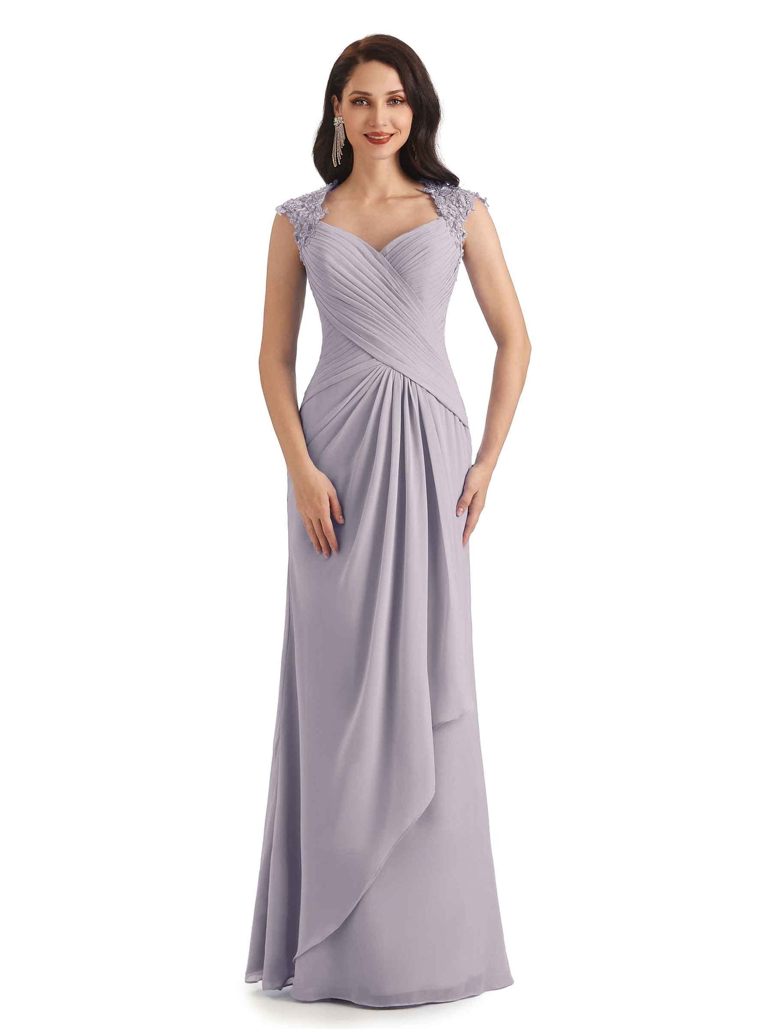 Elegant Chiffon Sheath Queen Ann Floor Length Long Mother of The Bride Outfits
