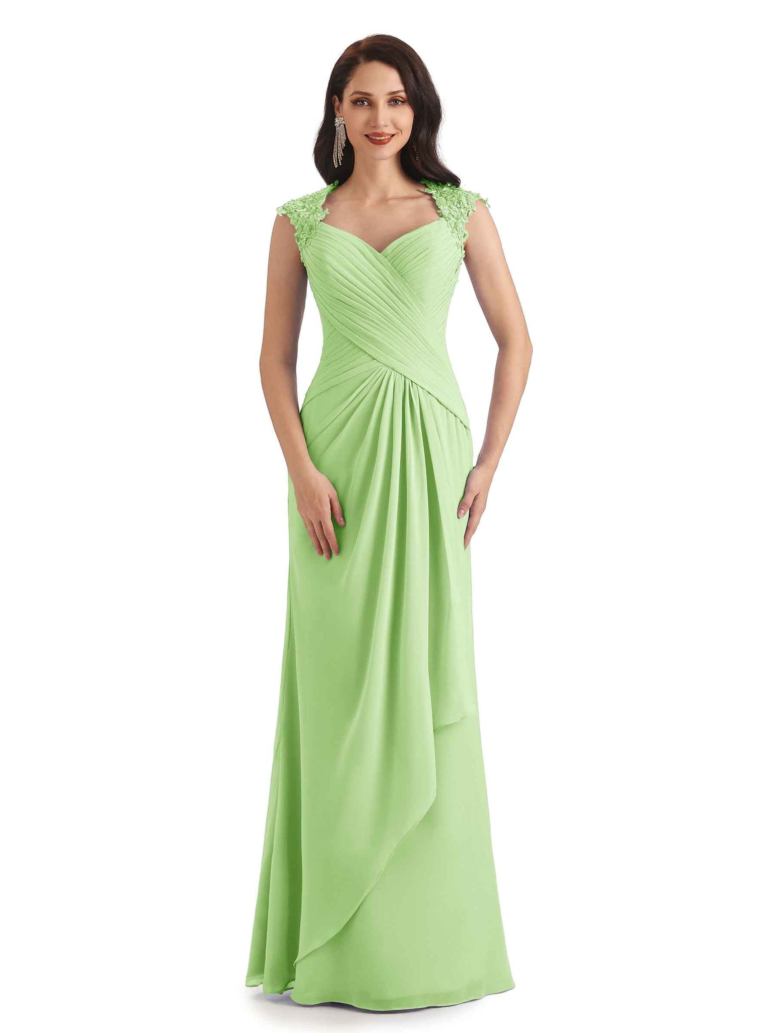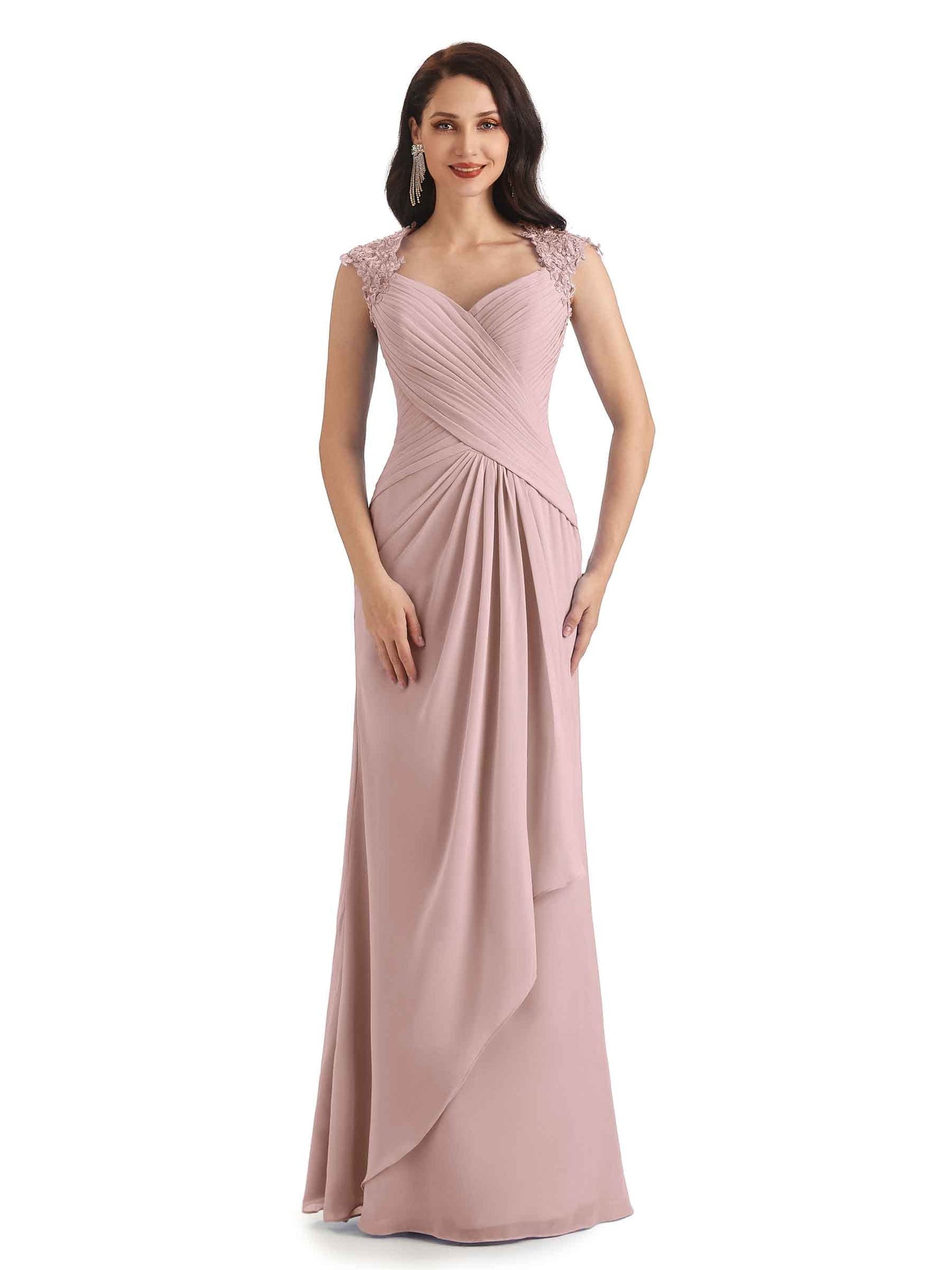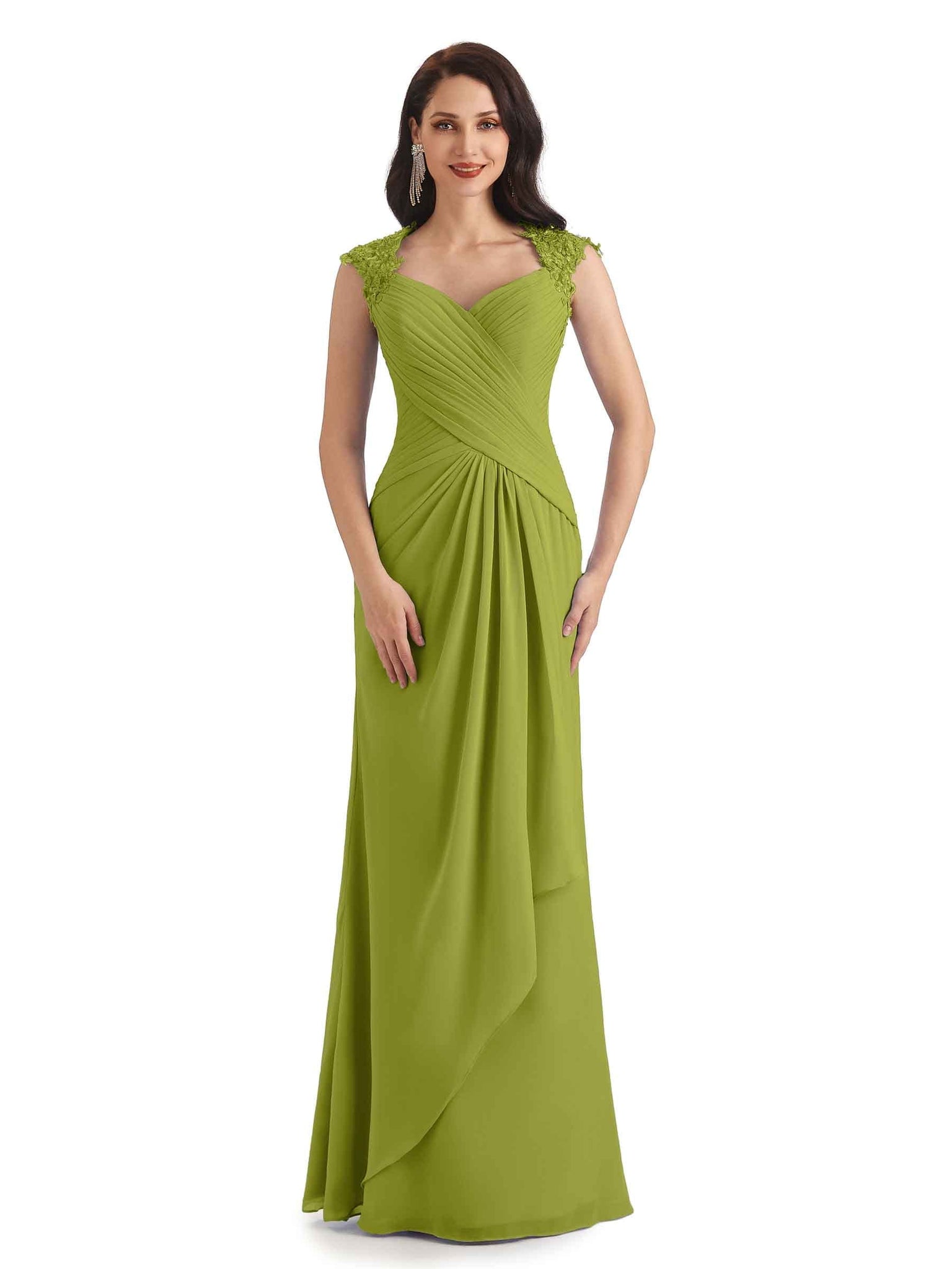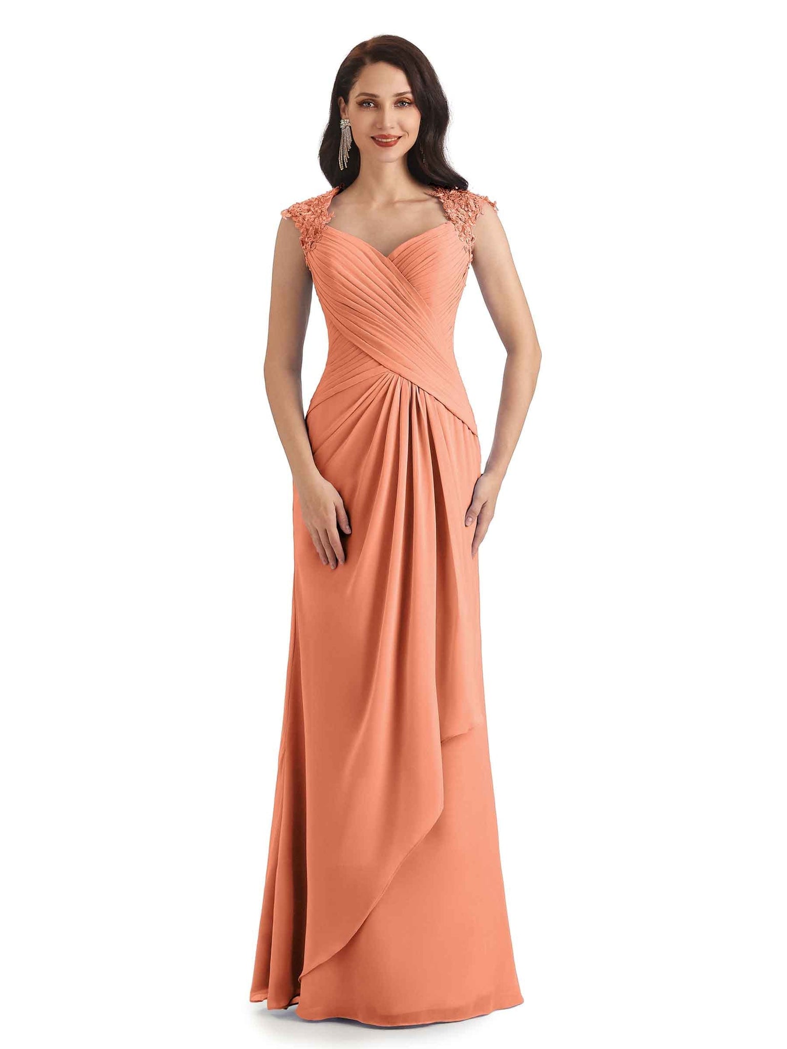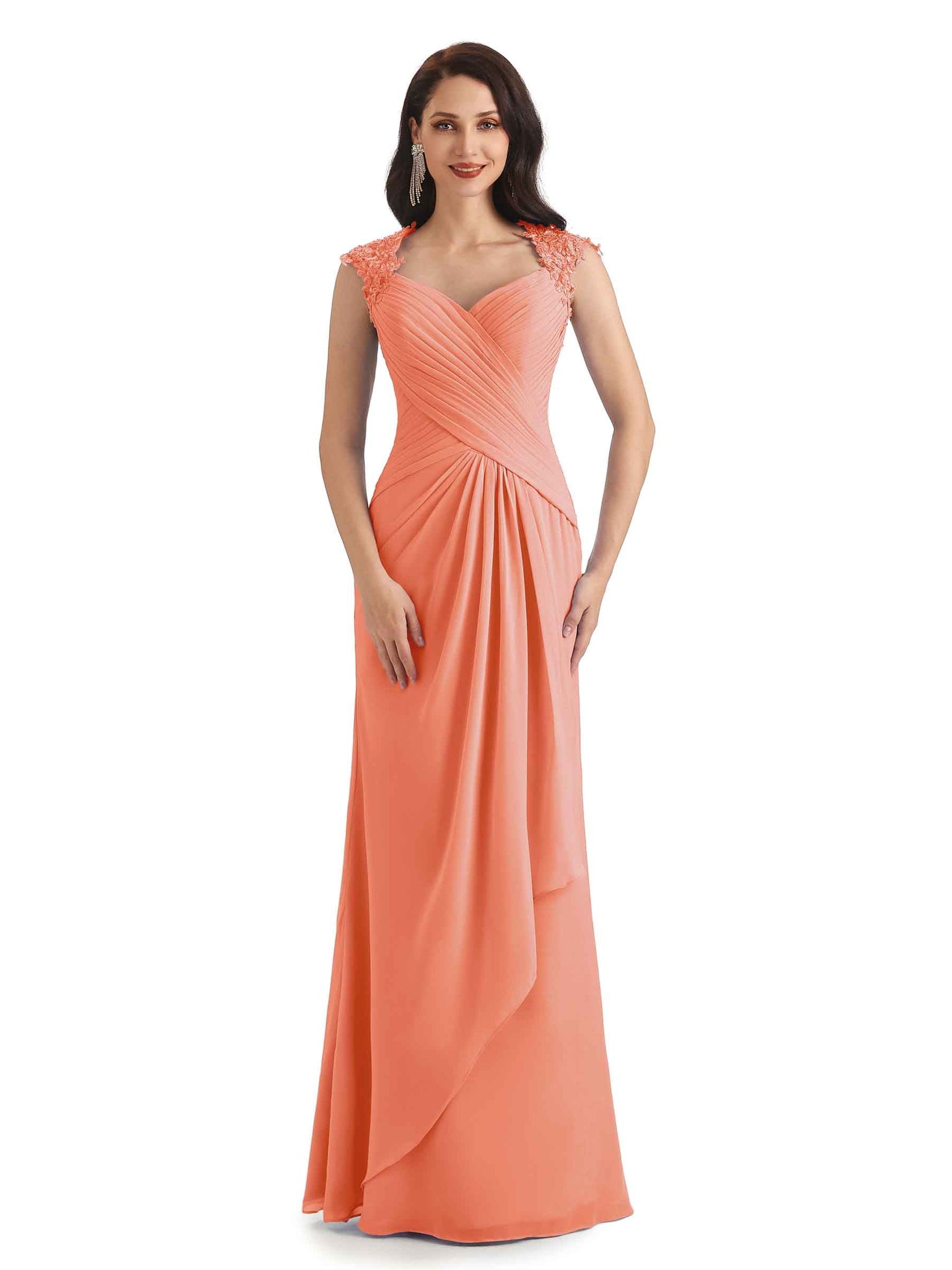 Elegant Chiffon Sheath Queen Ann Floor Length Long Mother of The Bride Outfits