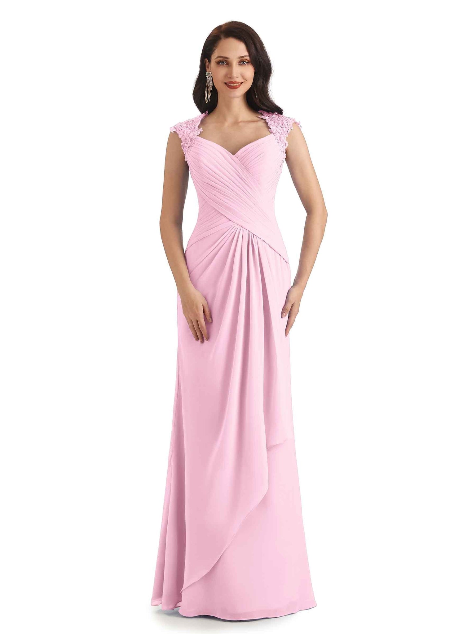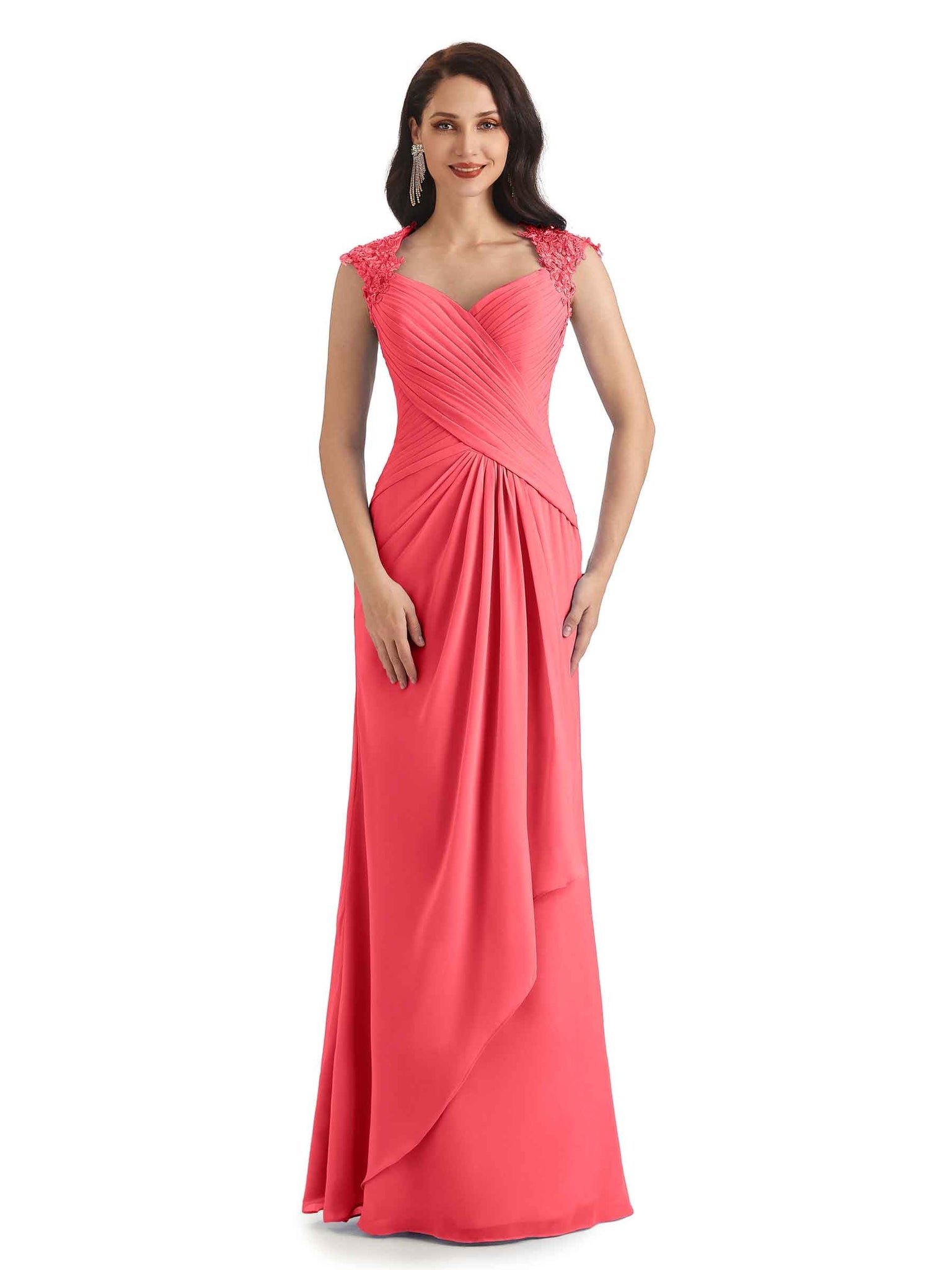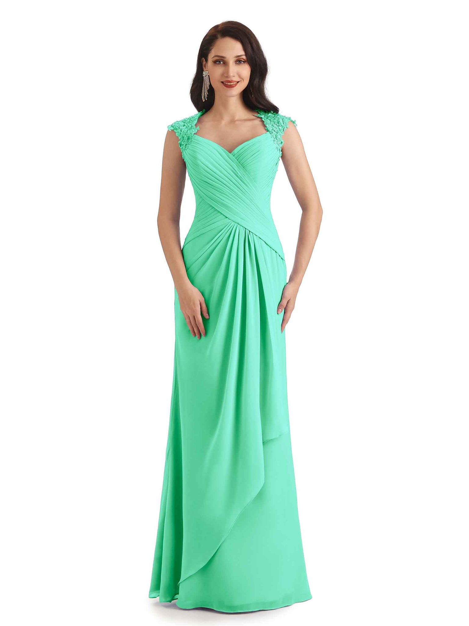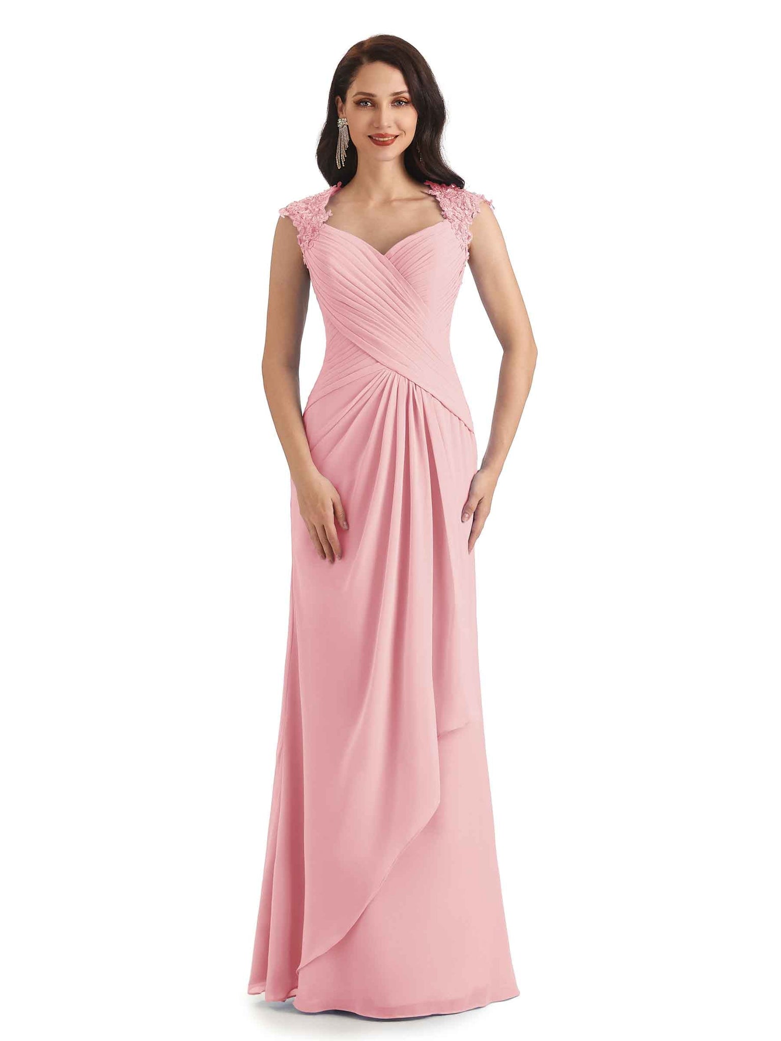Elegant Chiffon Sheath Queen Ann Floor Length Long Mother of The Bride Outfits