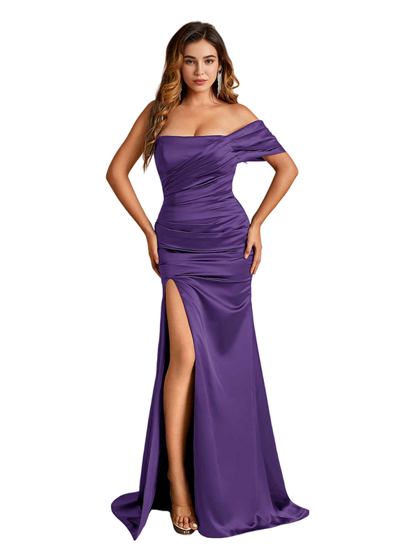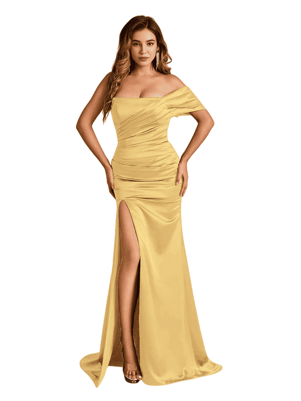 Sexy One Shoulder Mermaid Soft Satin Side Slit Beauty Long Bridesmaid Dresses - ChicSew