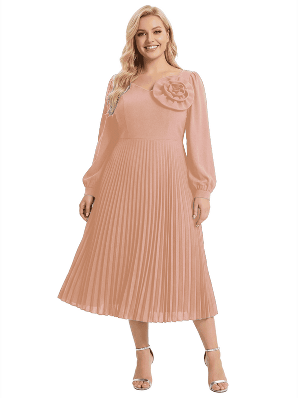 Since the material is soft satin, it's stretchy, if your real measurements are bigger than dress, then dress will be tight for you, the pleats will be stretched to plain, the pleats will not be obviously, further more, if you take dress off, then stitches will be stretched out, they become obviously if you bring up the pleats, in this condition, you can sort out the pleats by stretching them into both side, then stitches will indent into pleats. If your real measurements are smaller than dress, then pleats will out of shape, they will become loose, so please find a seamstress in your local shop to take dress in.For more, please check our blog: https://chicsew.com/blogs/news/why-i-can-see-stitches-under-pleatsWe also have ADJUSTMENTS & REIMBERSEMENTS policy, please check this link: https://chicsew.com/pages/adjustments-reimbersements