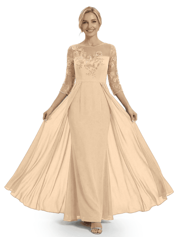 Material: chiffon, lace applique, pongee.