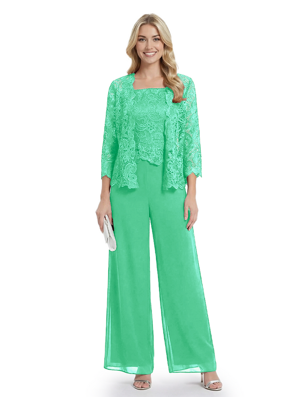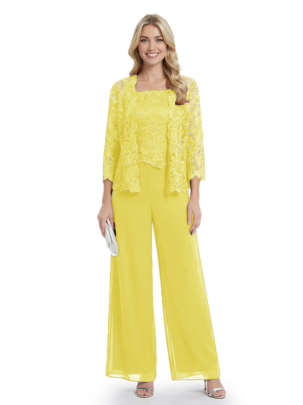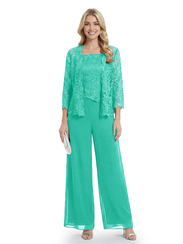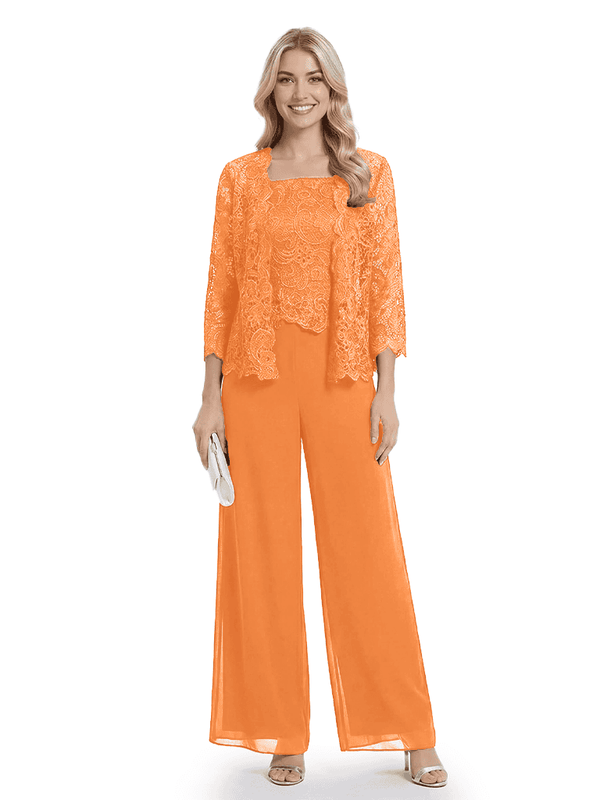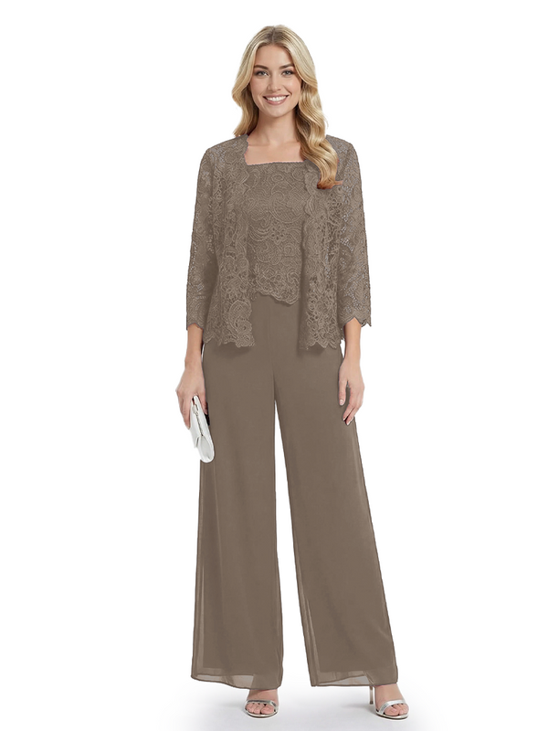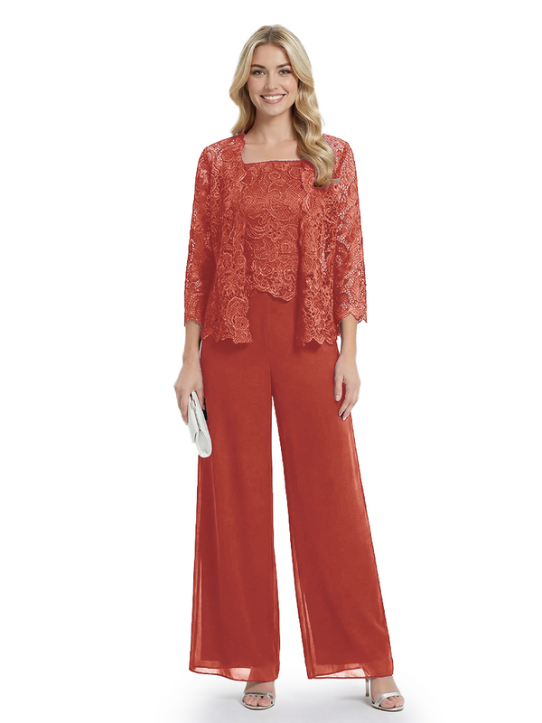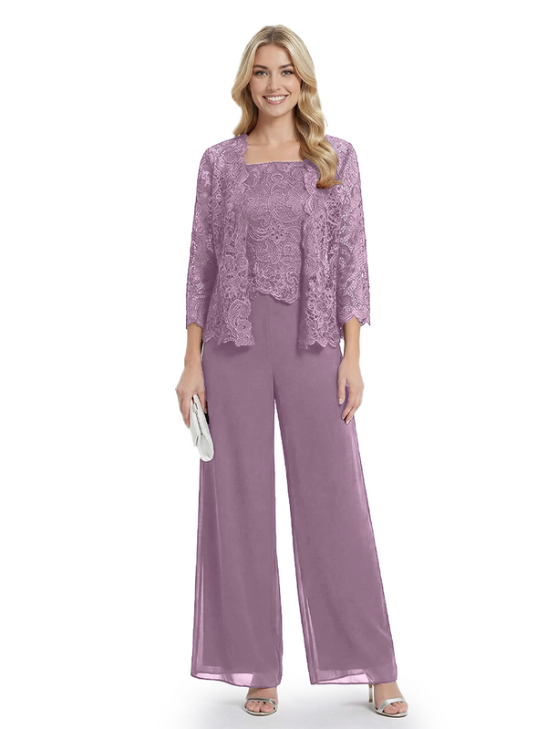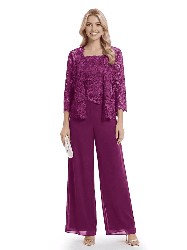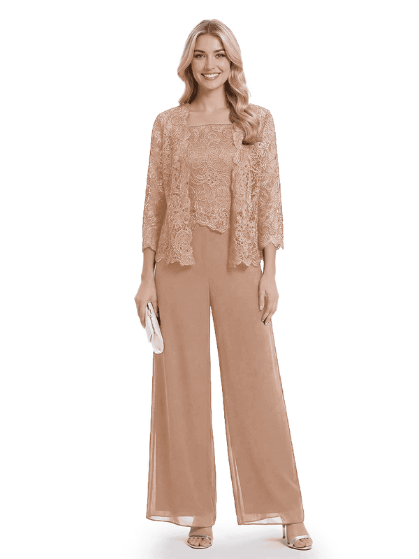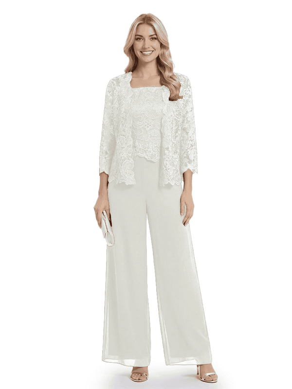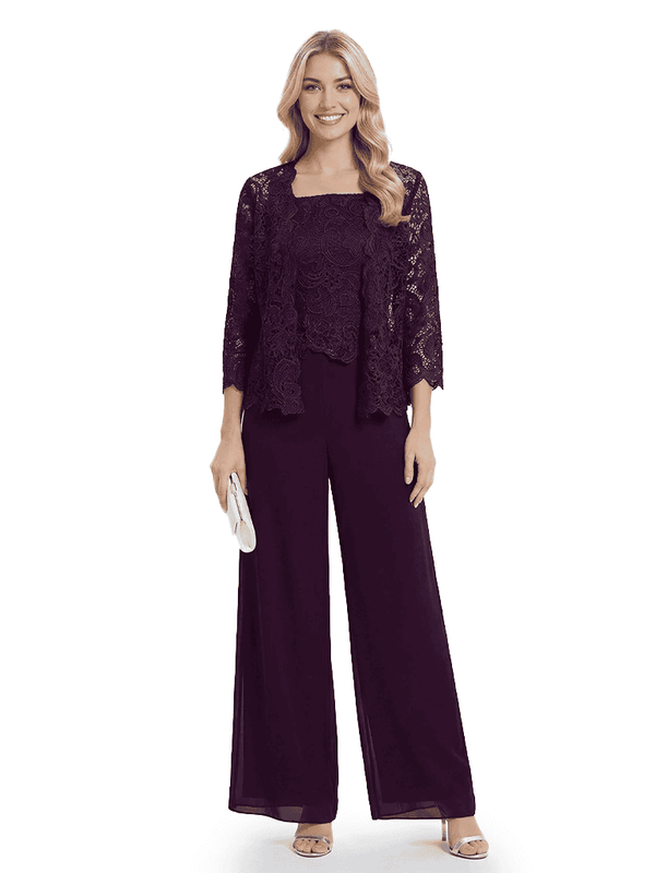 Classy Mother Of The Bride Pantsuit Lace Top Wide Leg Jumpsuit Wedding Guest - ChicSew