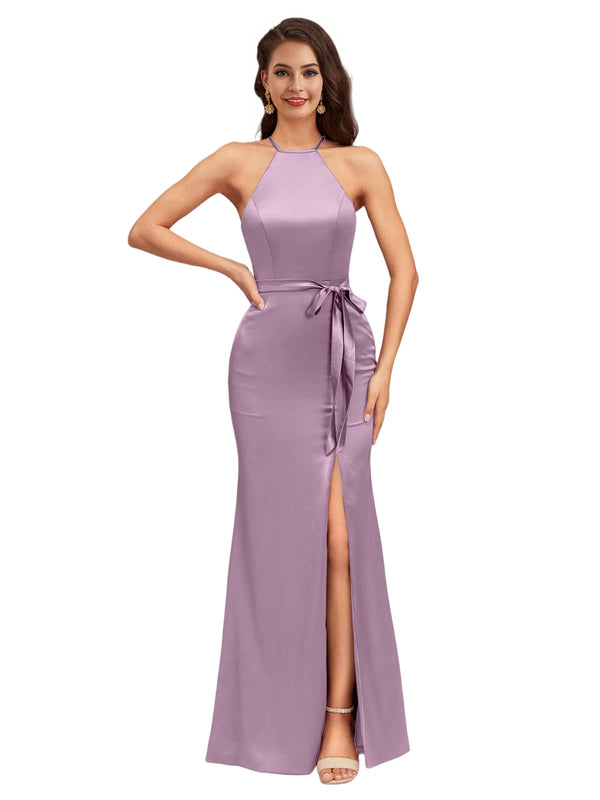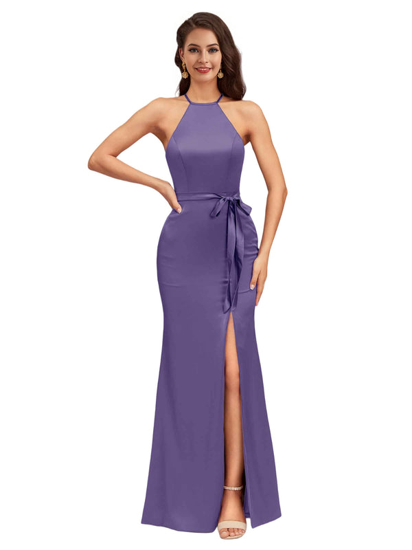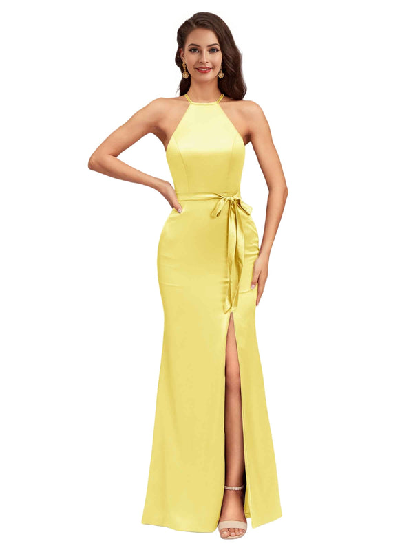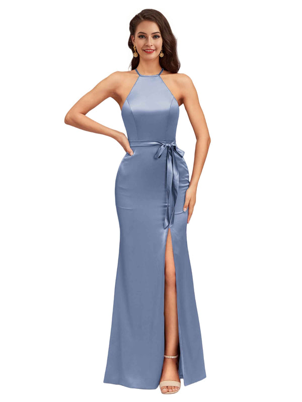 Sexy Halter Soft Satin Mermaid Side Slit Long Bridesmaid Dresses Online