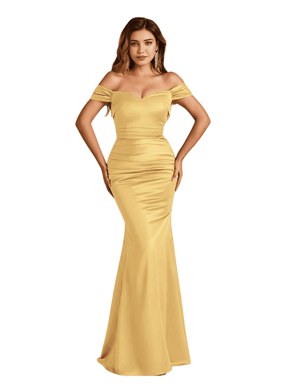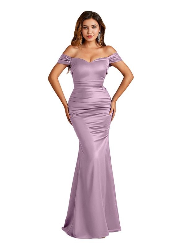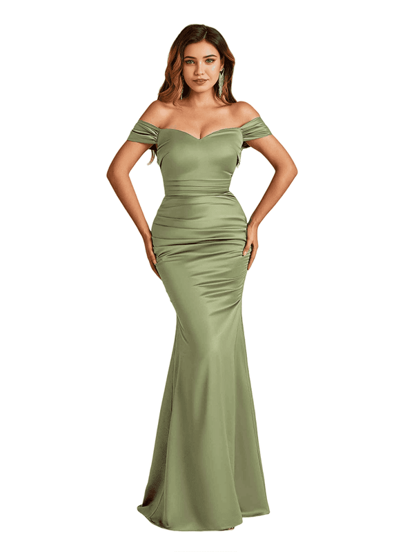 Sexy Off The Shoulder Ruched Mermaid Soft Satin Long Bridesmaid Dresses Online