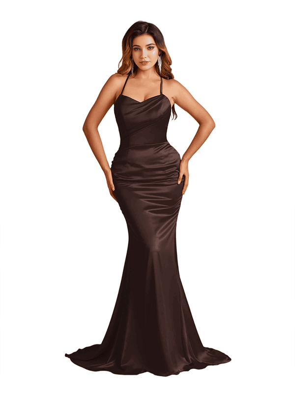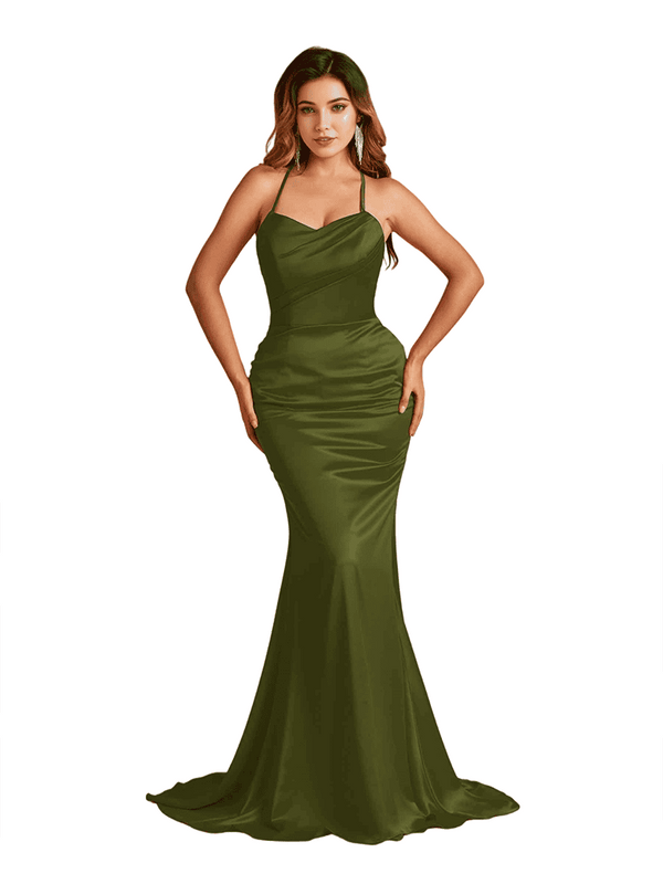 Sexy Spaghetti Straps Criss Cross Mermaid Soft Satin Long Bridesmaid Dresses - ChicSew