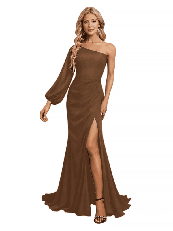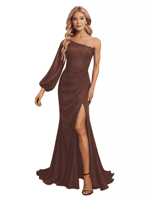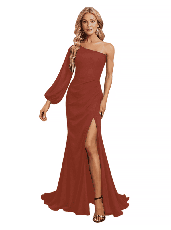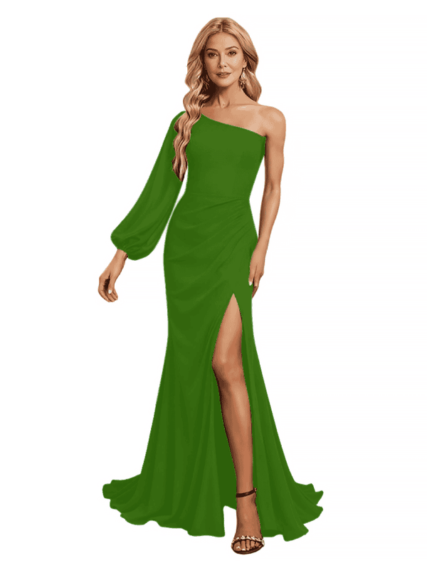 Elegant Satin One Shoulder Side Slit Mermaid Long Mother Of The Bride Dresses- ChicSew