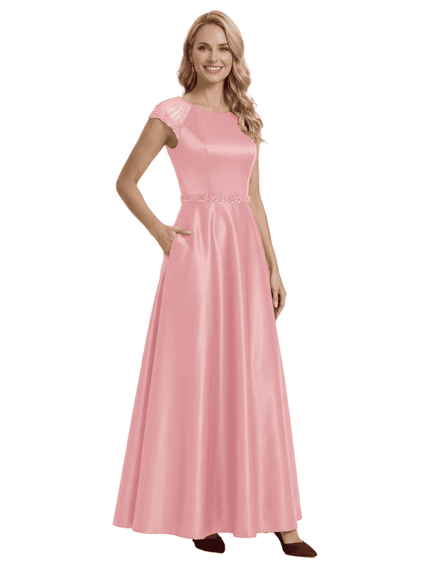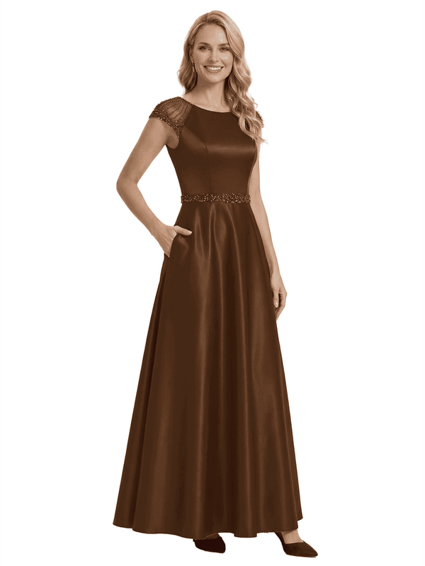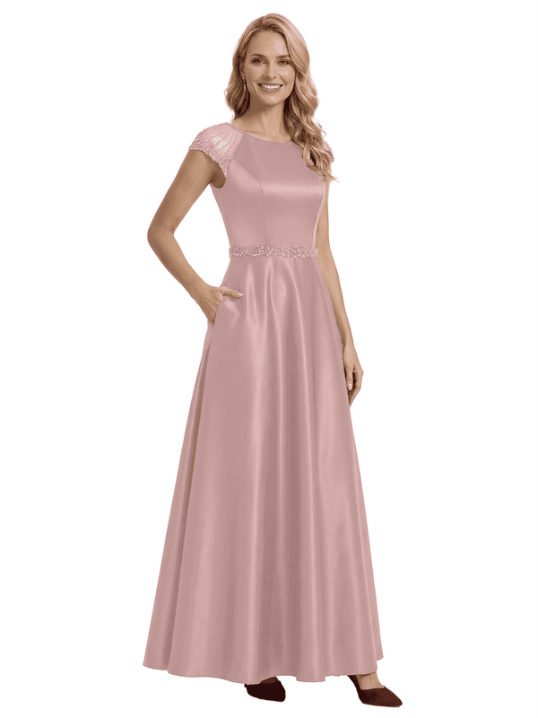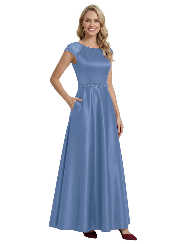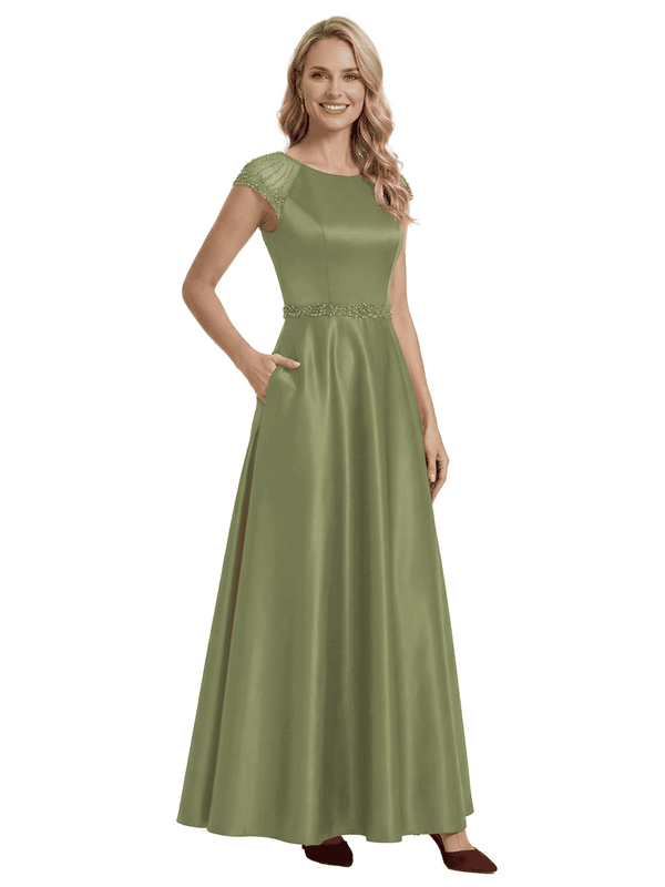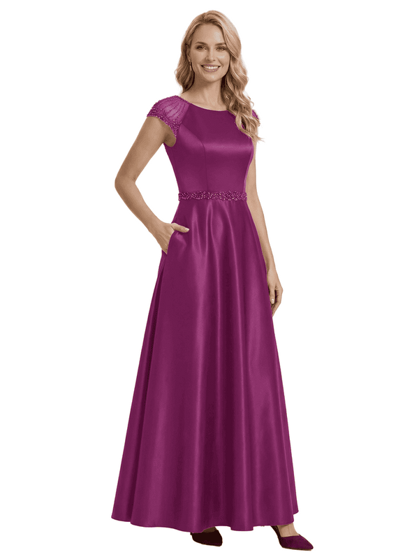 Elegant Scoop Cap Sleeve Satin A-Line Floor-Length For Mother Of The Bride with Pocket - ChicSew
