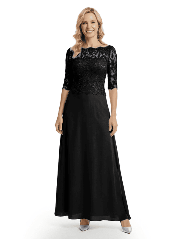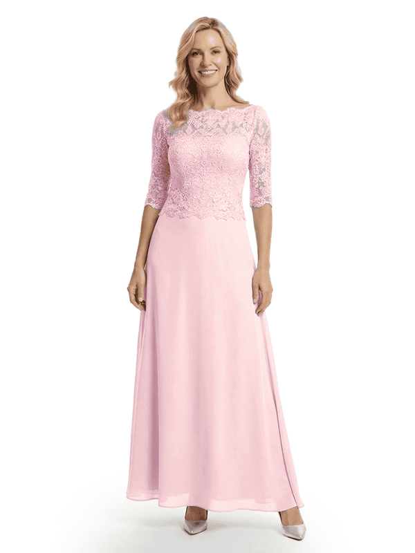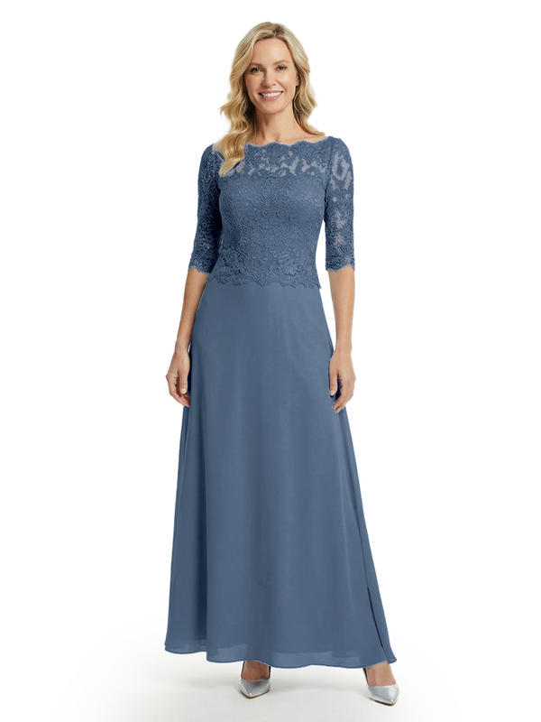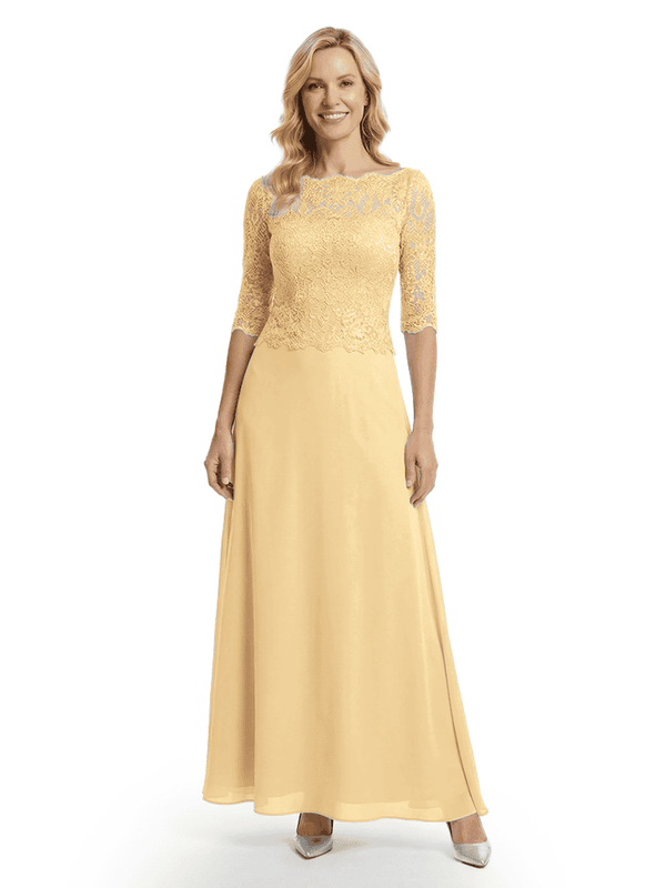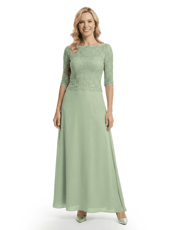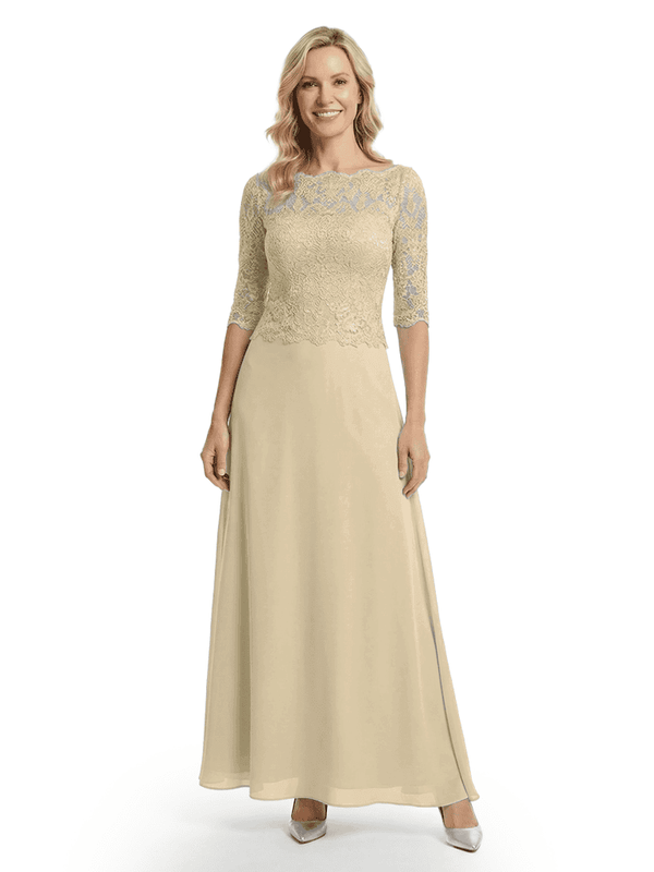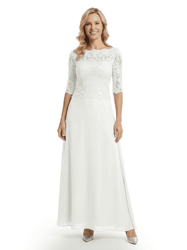 Sophisticated Lace Applique Mother Of The Bride Gown Half Sleeves Illusion Chiffon Dress - ChicSew