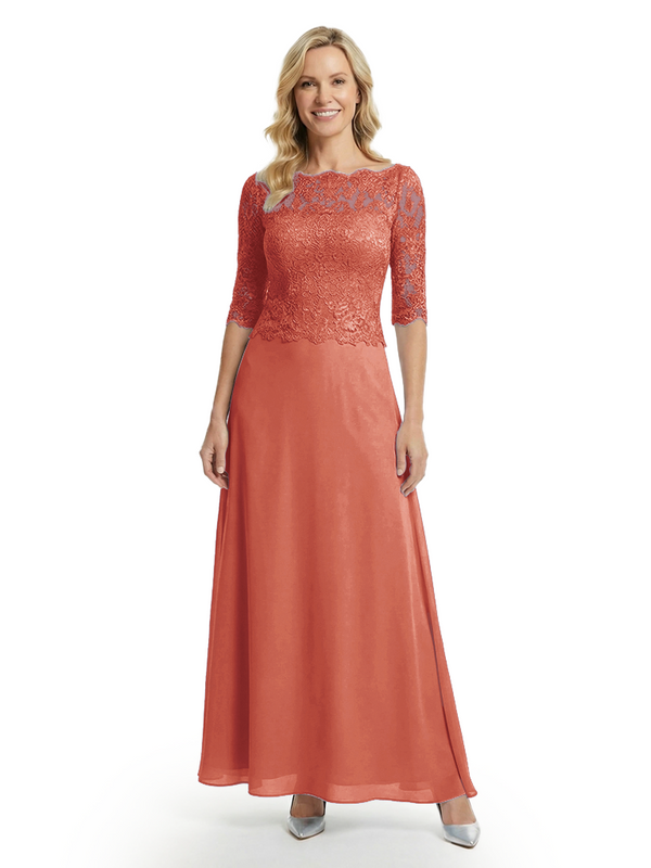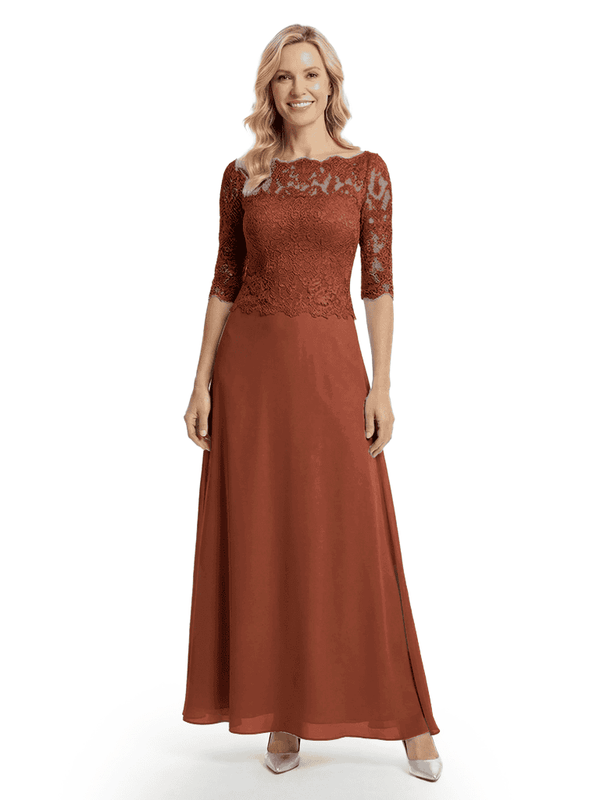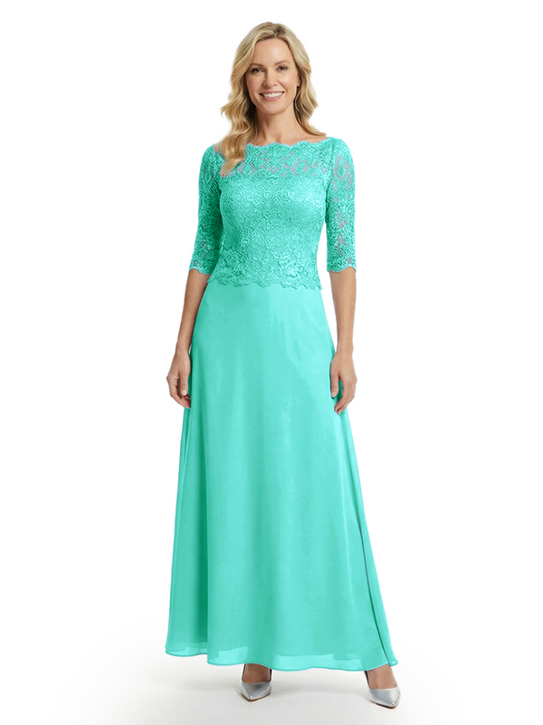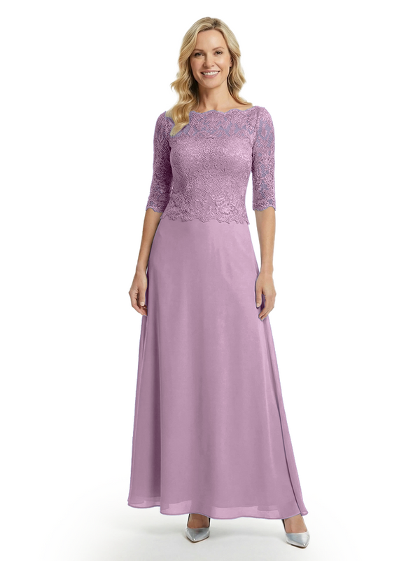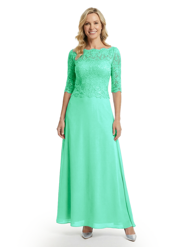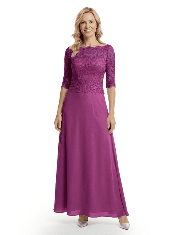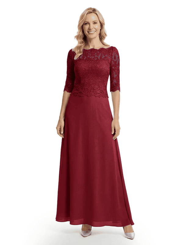 Sophisticated Lace Applique Mother Of The Bride Gown Half Sleeves Illusion Chiffon Dress - ChicSew