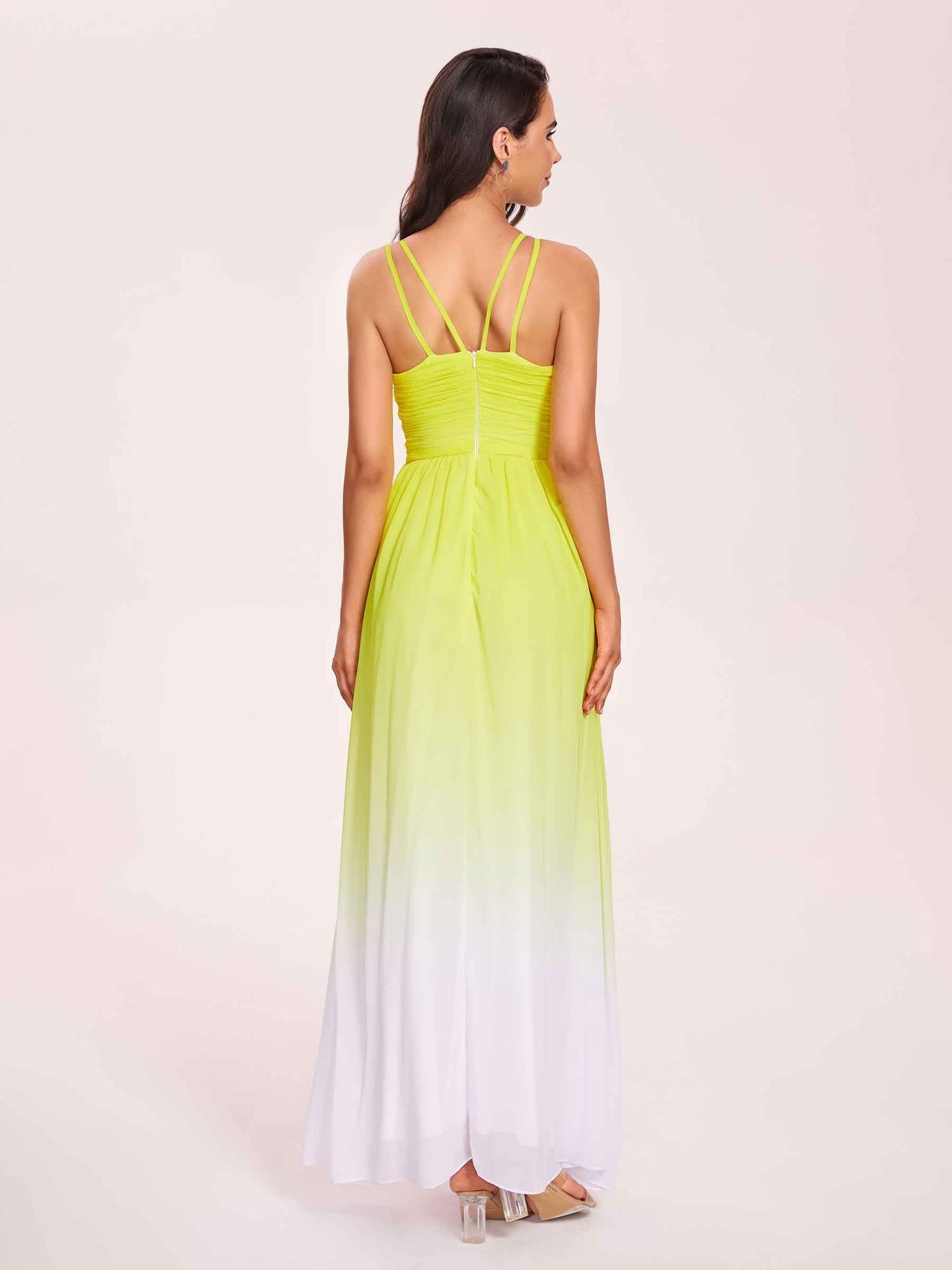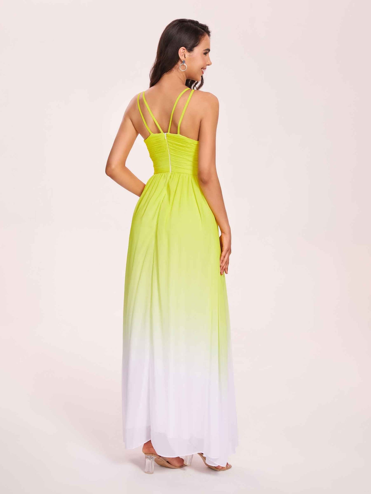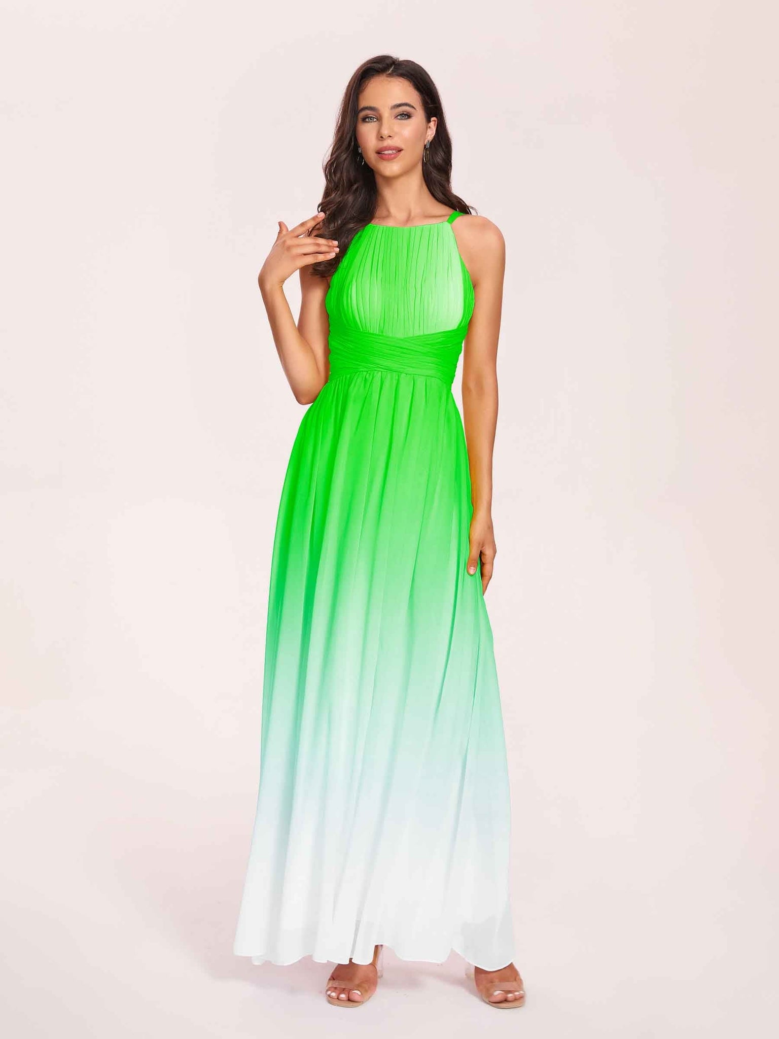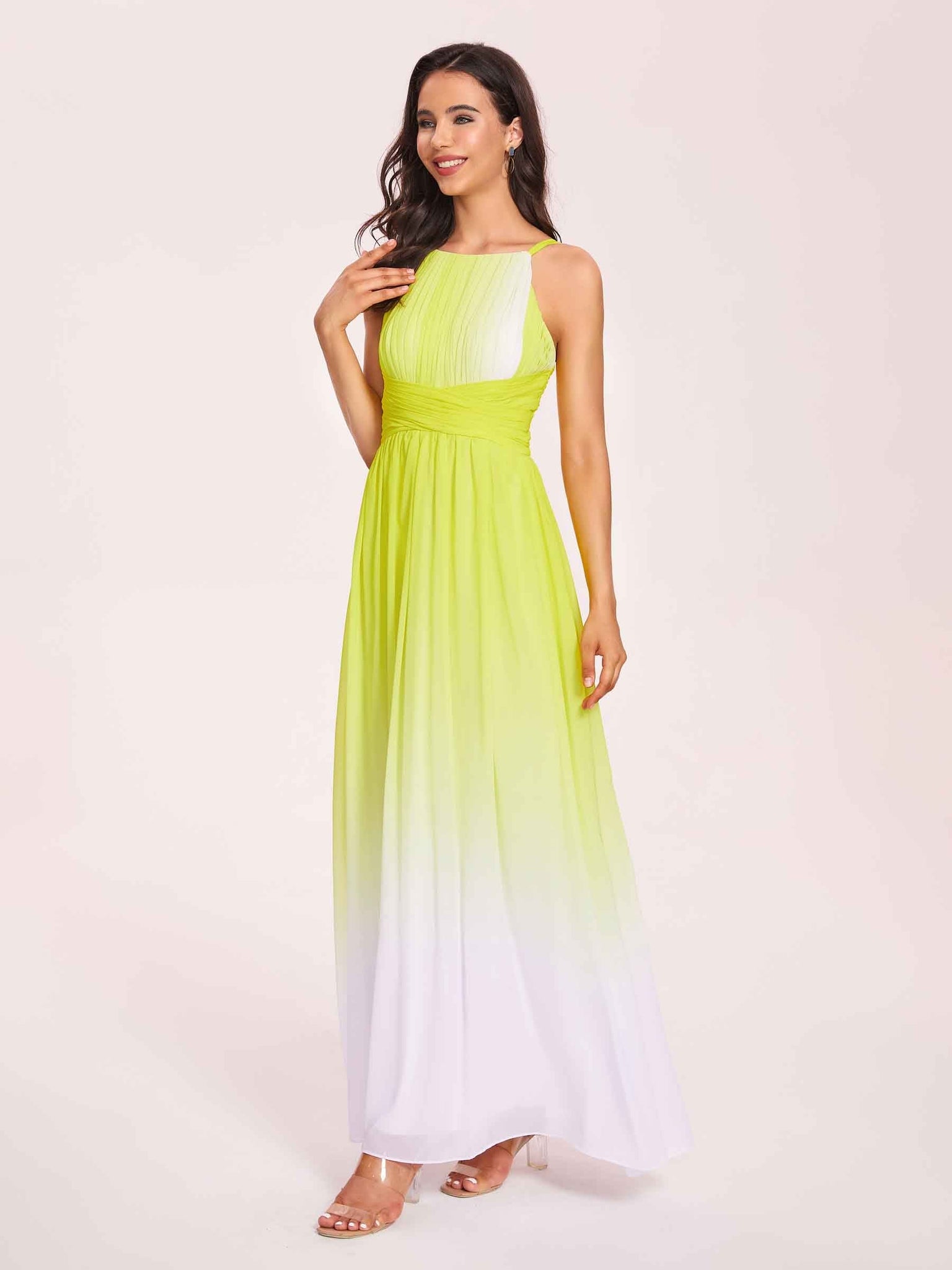 Halter Floral A-line Ombre Chiffon Long Bridesmaid Dresses Online - ChicSew