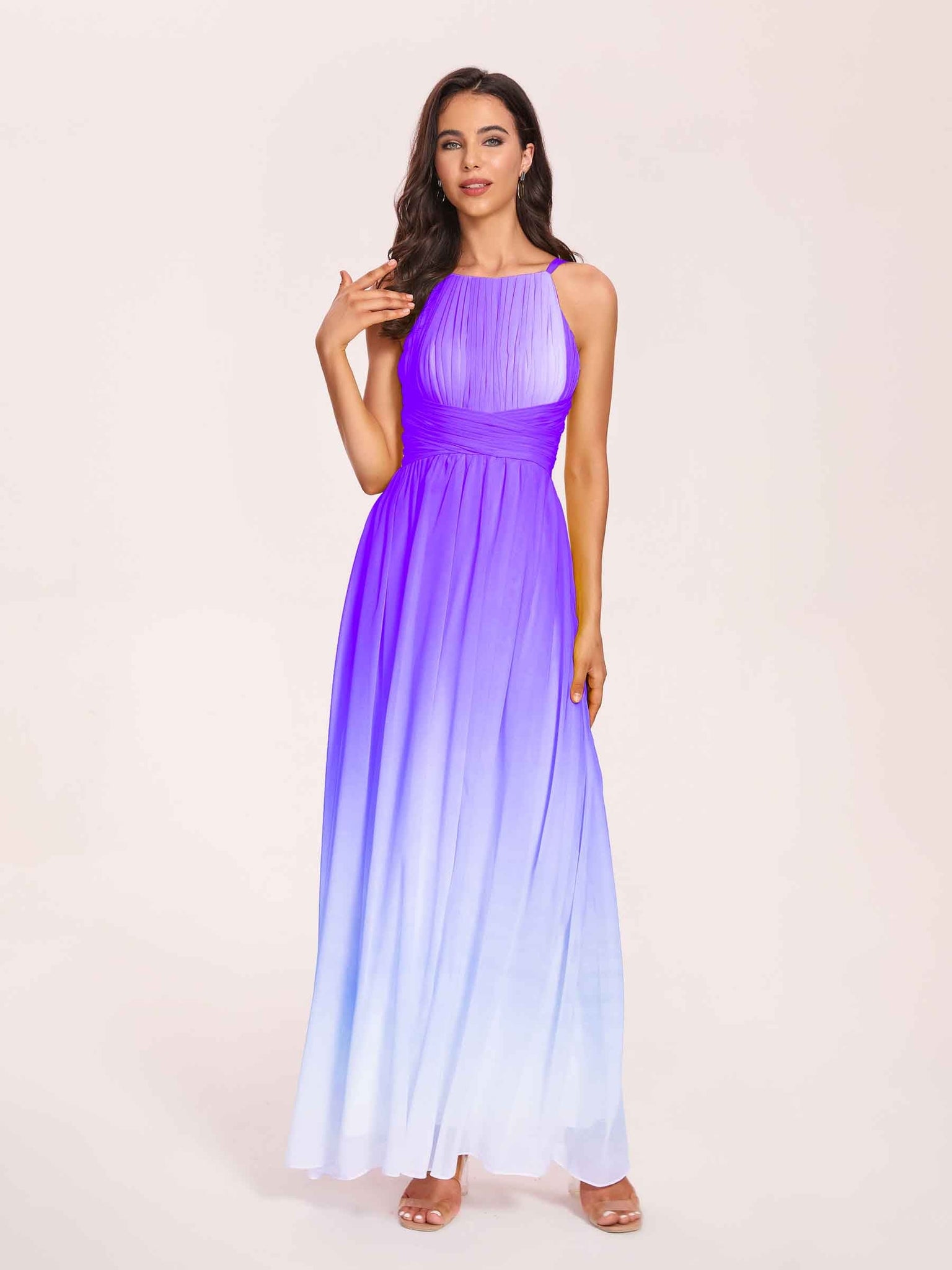 Halter Floral A-line Ombre Chiffon Long Bridesmaid Dresses Online