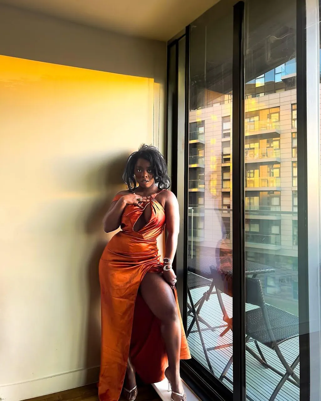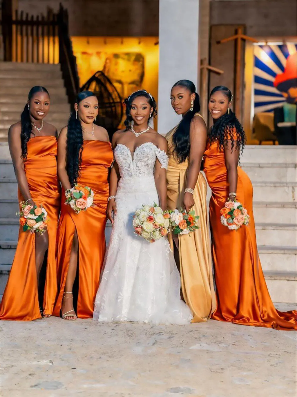 This gown made me feel like a goddess! The way it accentuates my curves is unreal—I’ve never felt so confident in a dress!A burnt orange dress! It's so sparkly, especially outdoors! Such a rich color! It fits my figure perfectly! It's unlike any other dress! It's custom-made and really shows off my figure!💃✨
