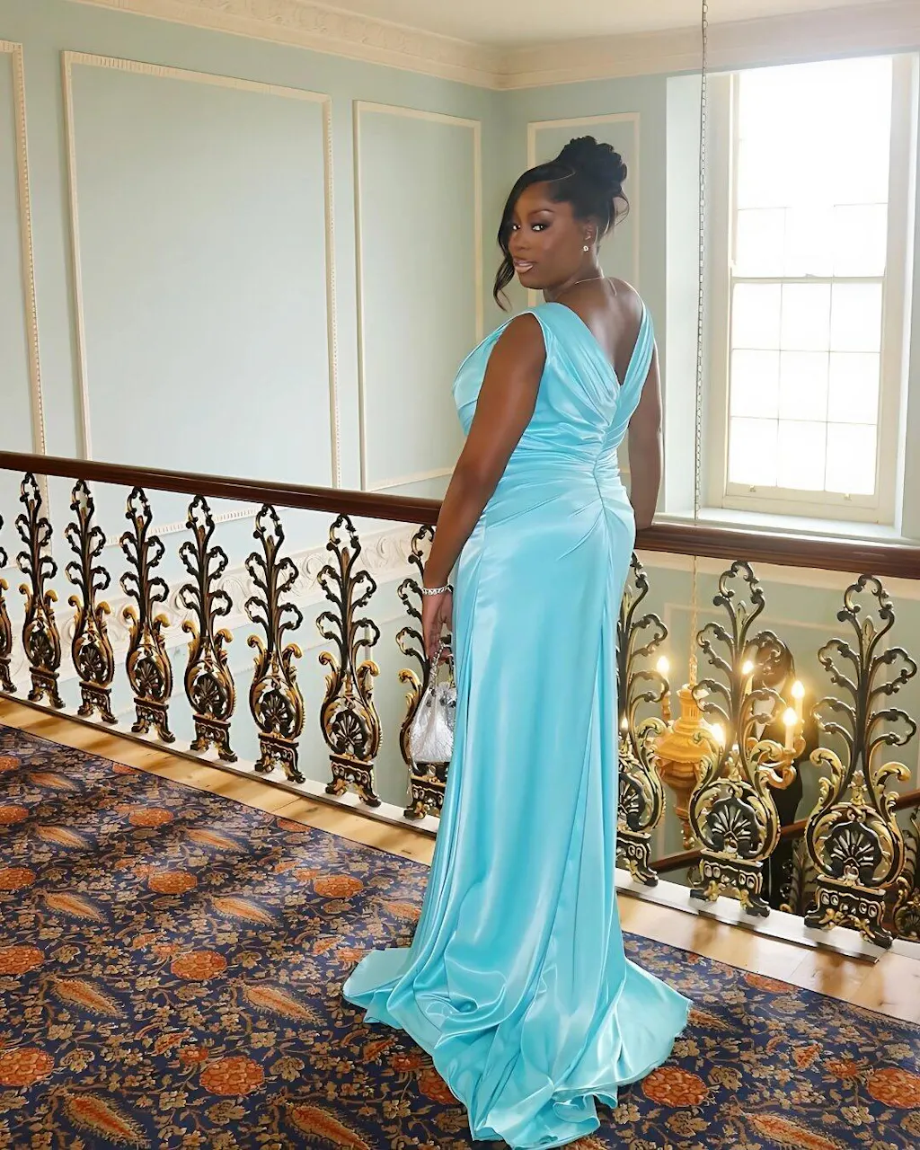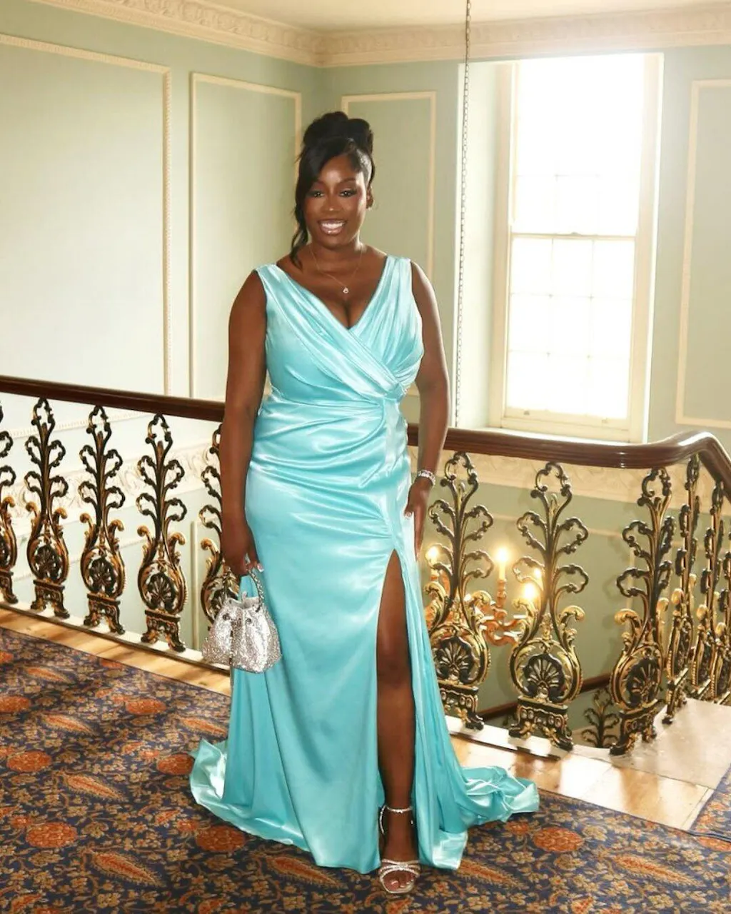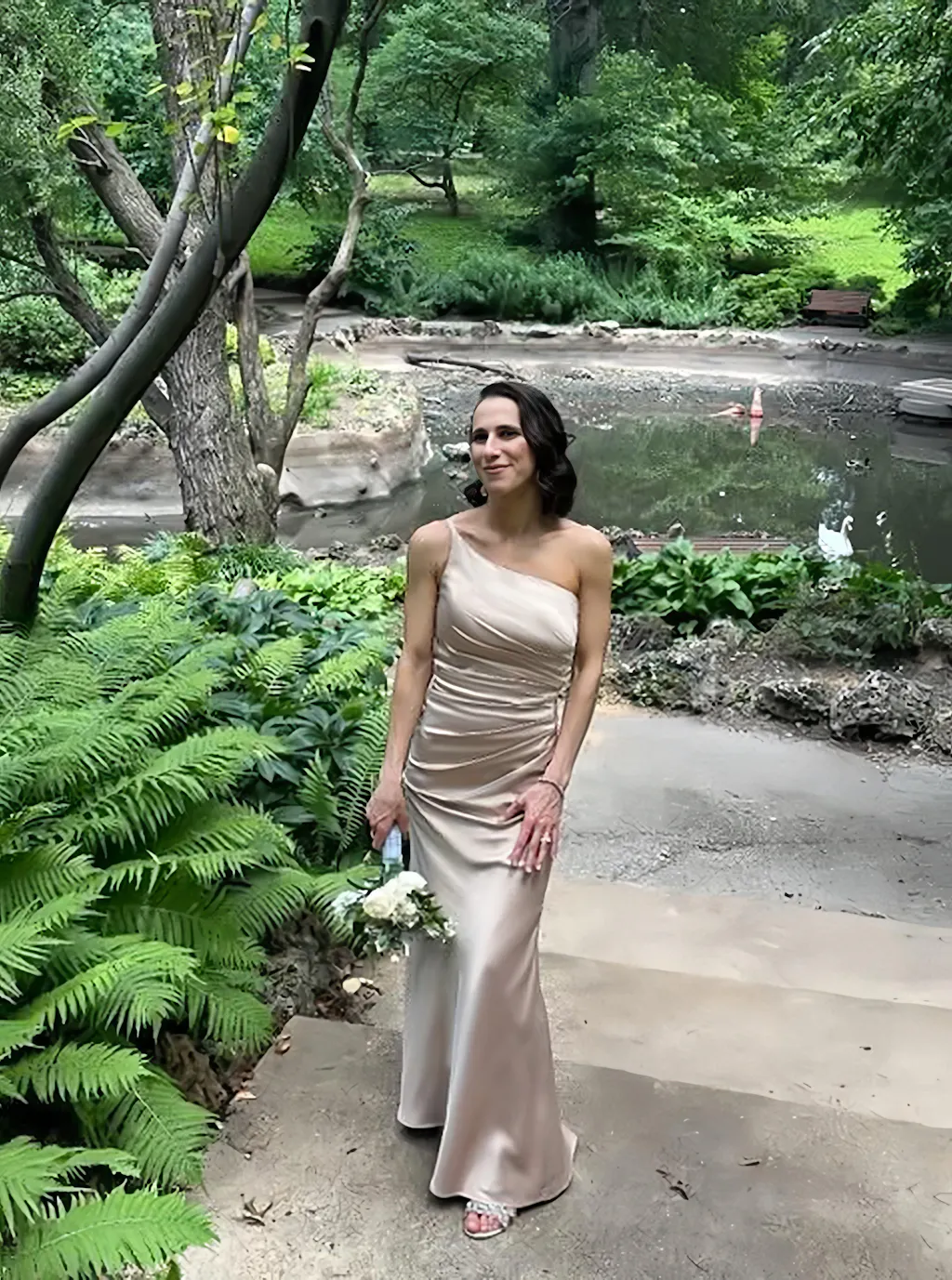 This dress hugged my curves in all the right places! I’ve never felt so elegant yet powerful at a wedding. The fabric is shiny and drapes smoothly!People kept asking, ‘Who designed your dress?!