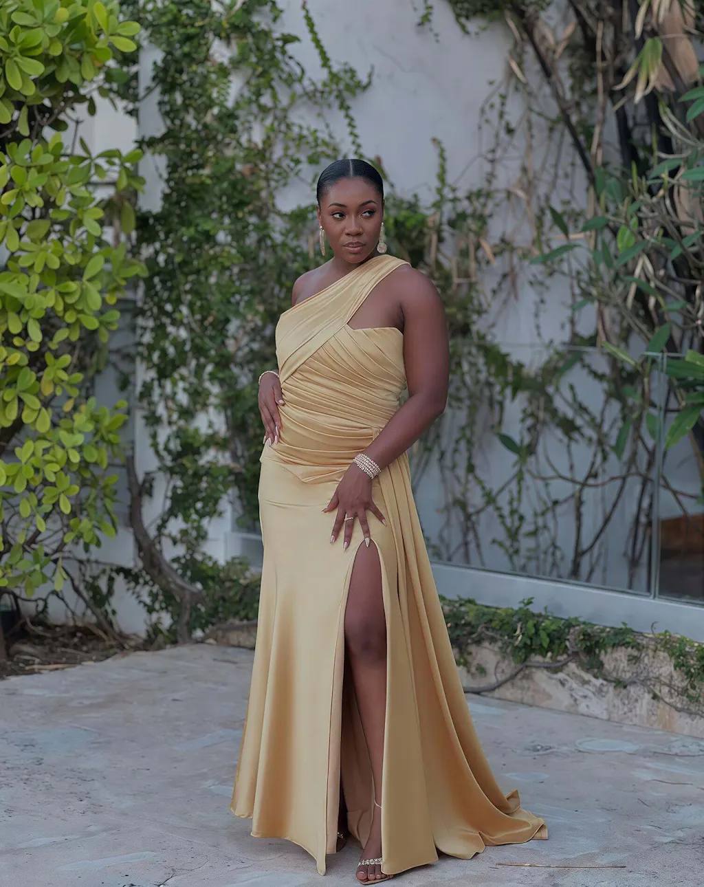 I’ve never received so many compliments! The golden dress is elegant and classy! It fits the body perfectly!The dress hugs my curves perfectly and has a timeless elegance that’s hard to find. 10/10!🥂