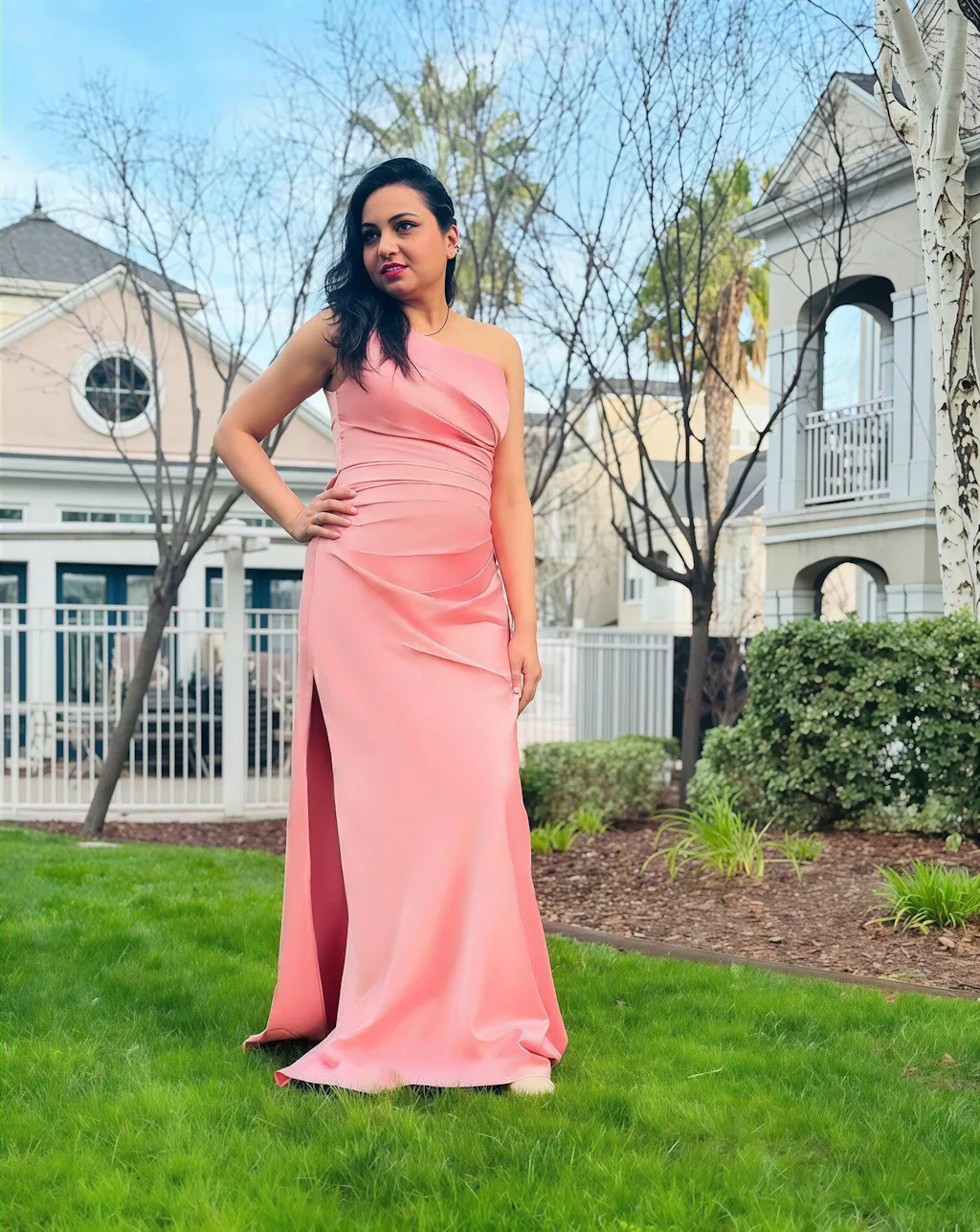 I'm so late in reviewing this! It's not only beautiful as a bridesmaid dress, but it can also be worn for everyday formal occasions. It's incredibly versatile!The blush pink hue was even prettier in person, but the real magic is the fit. The 3D draping hugs my curves without squeezing, and the asymmetric hem made me feel like a movie star. Best part? Under $150 – my friends thought I spent triple that!