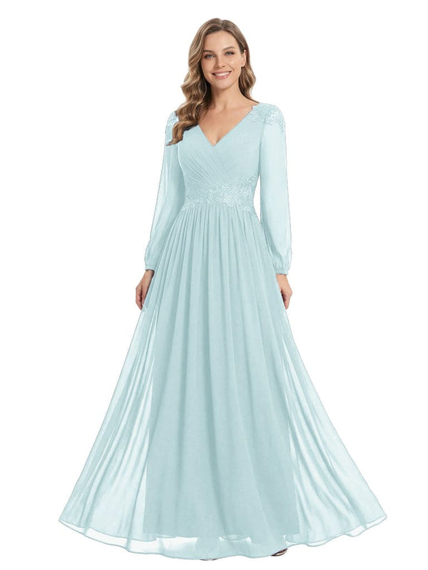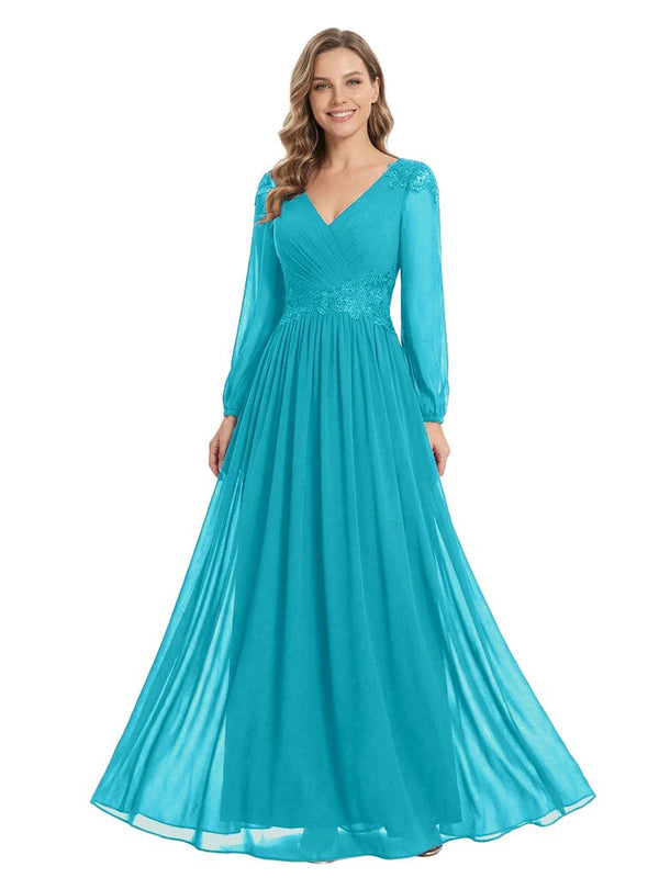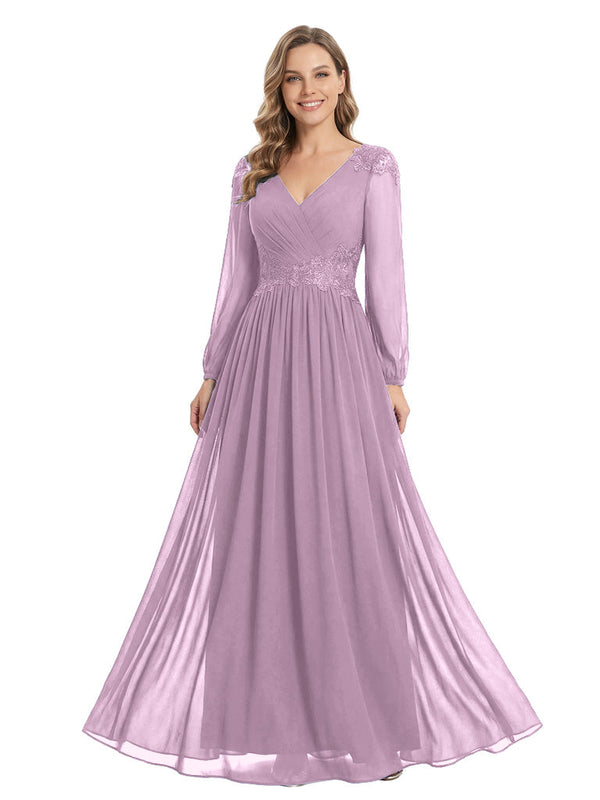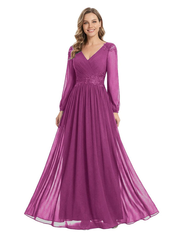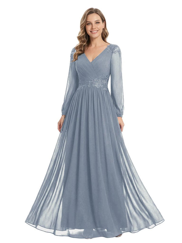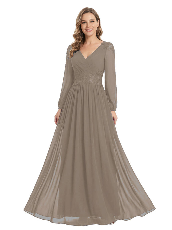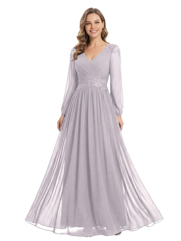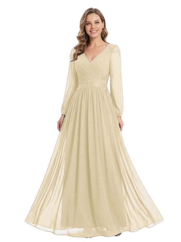 Beautiful Mother Of The Bride Dresses V-Neck Long Sleeves A-Line Lace Appliques - ChicSew