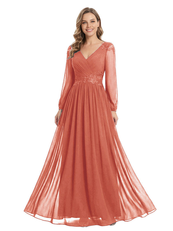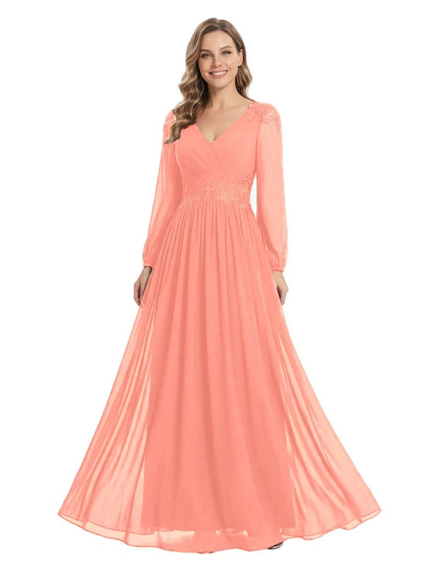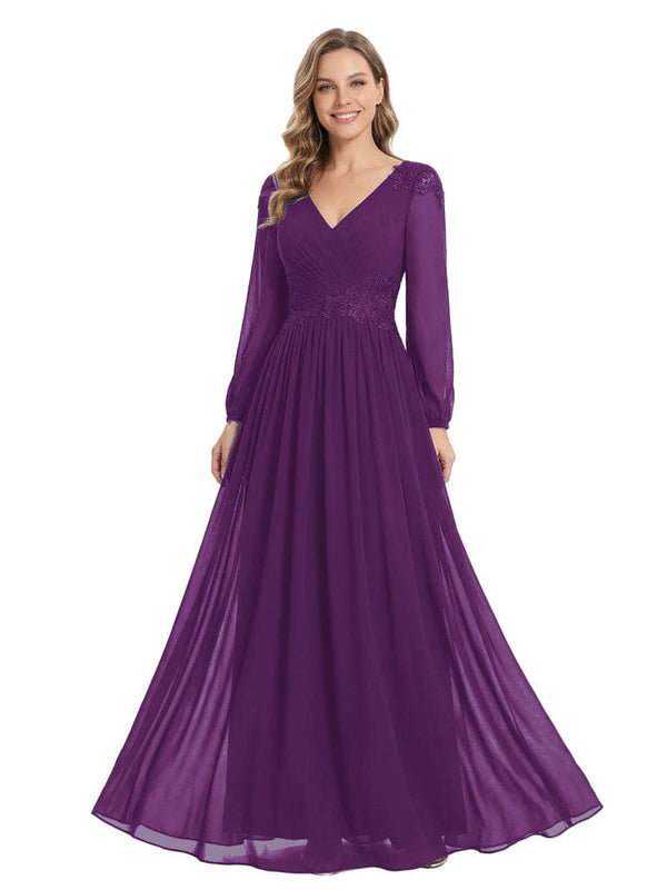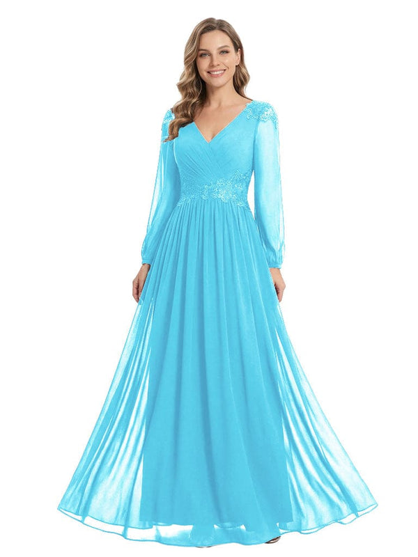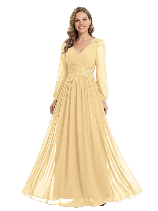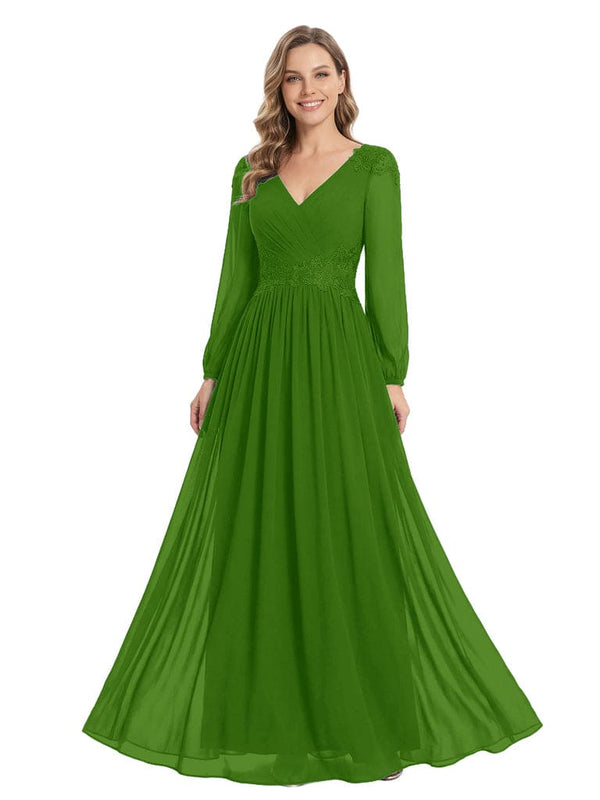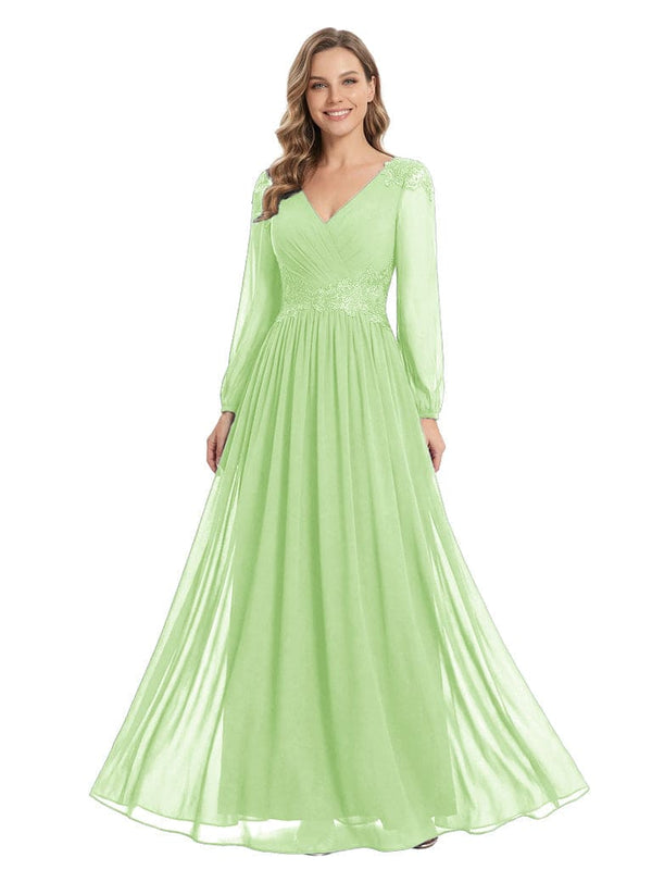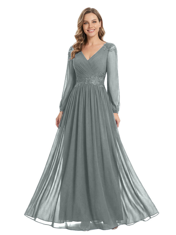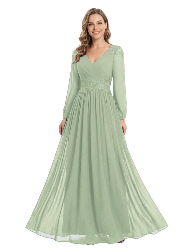 Beautiful Mother Of The Bride Dresses V-Neck Long Sleeves A-Line Lace Appliques - ChicSew