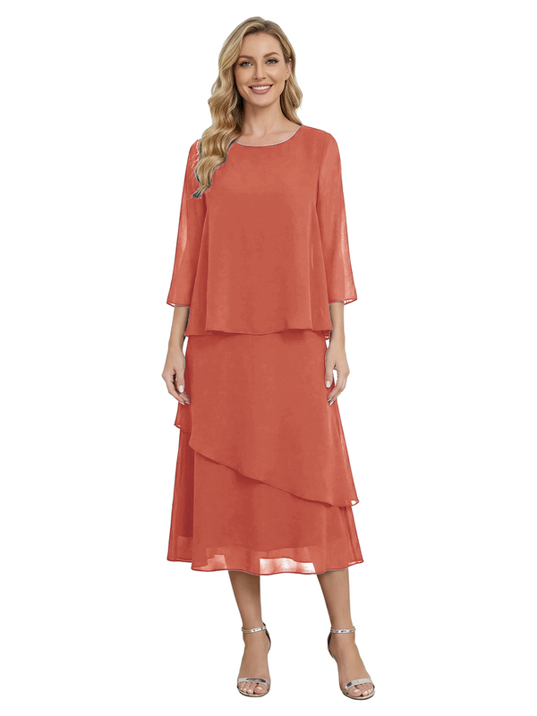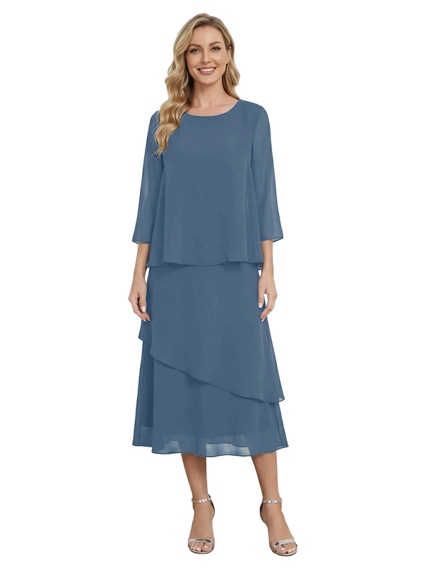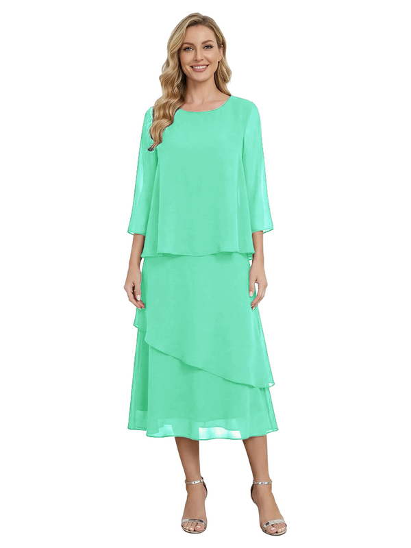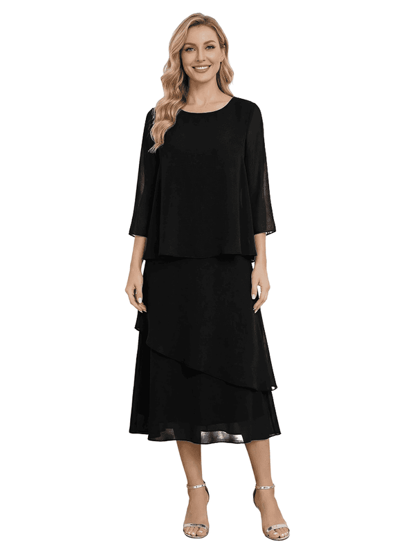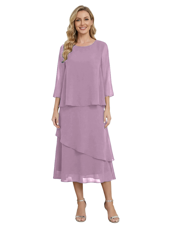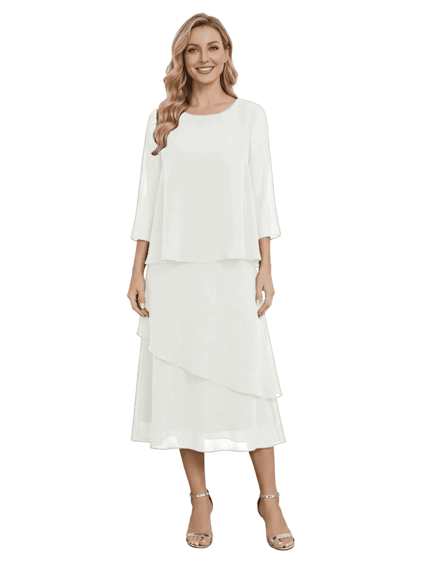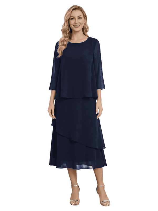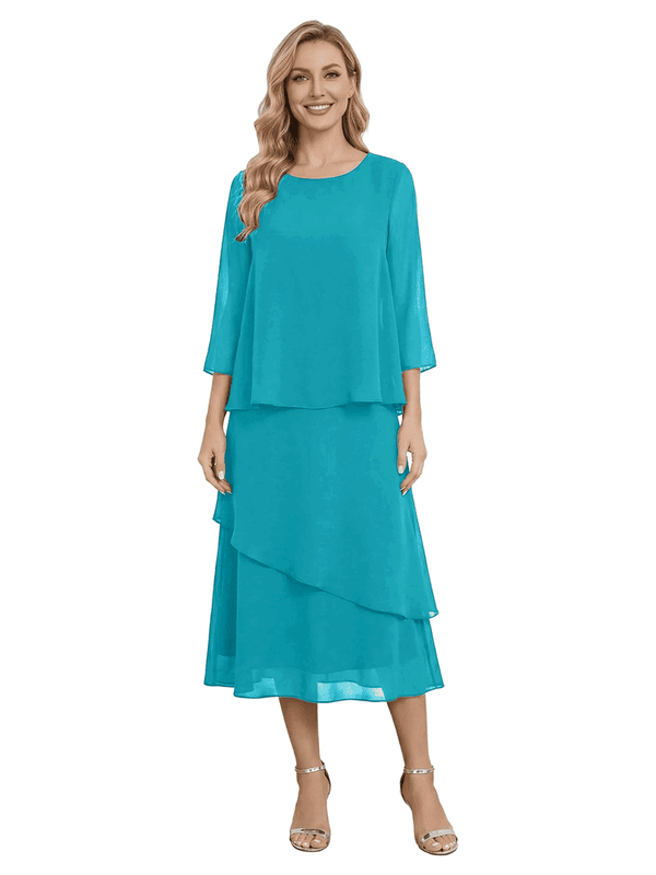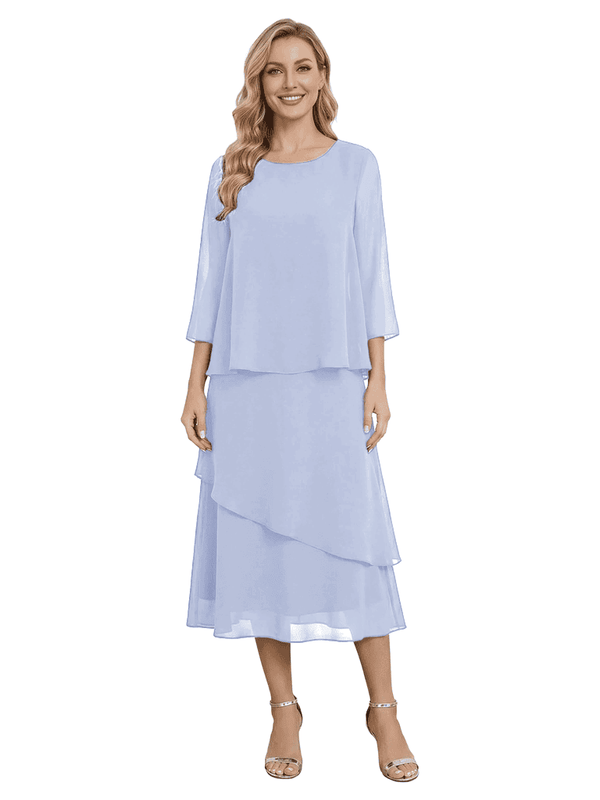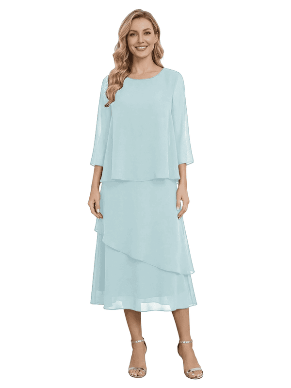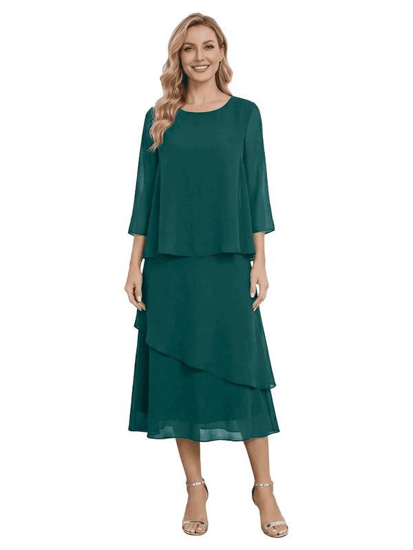 Chicsew Classy Chiffon 3/4 Sleeves Tiered Ruffles A-Line Mother Of The Bride Dress- ChicSew