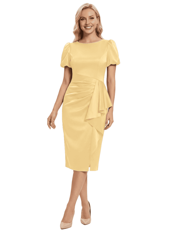 Since the material is soft satin, it's stretchy, if your real measurements are bigger than dress, then dress will be tight for you, the pleats will be stretched to plain, the pleats will not be obviously, further more, if you take dress off, then stitches will be stretched out, they become obviously if you bring up the pleats, in this condition, you can sort out the pleats by stretching them into both side, then stitches will indent into pleats. If your real measurements are smaller than dress, then pleats will out of shape, they will become loose, so please find a seamstress in your local shop to take dress in.For more, please check our blog: https://chicsew.com/blogs/news/why-i-can-see-stitches-under-pleatsWe also have ADJUSTMENTS & REIMBERSEMENTS policy, please check this link: https://chicsew.com/pages/adjustments-reimbersements