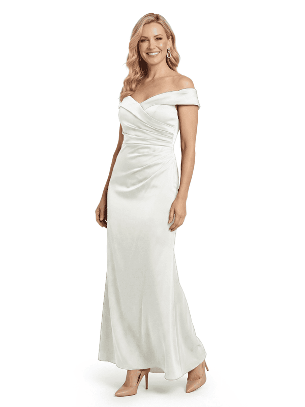 Chicsew Elegant Satin Off Shoulder Ruched Mermaid Mother Of The Groom Gowns - ChicSew