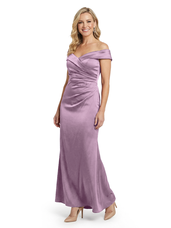 Chicsew Elegant Satin Off Shoulder Ruched Mermaid Mother Of The Groom Gowns