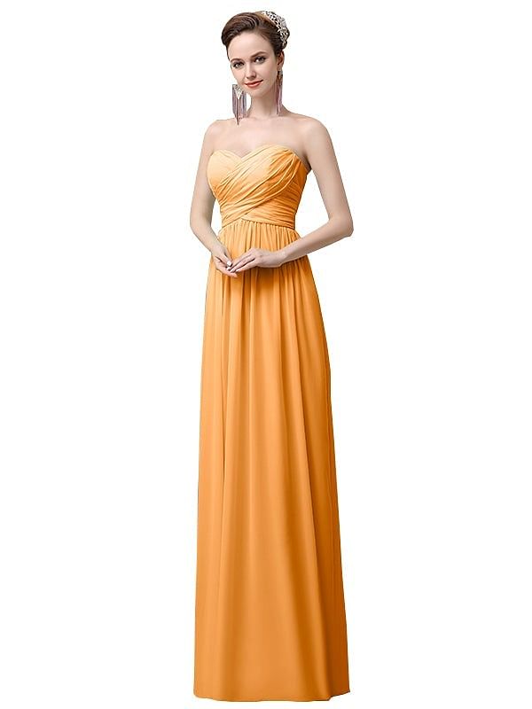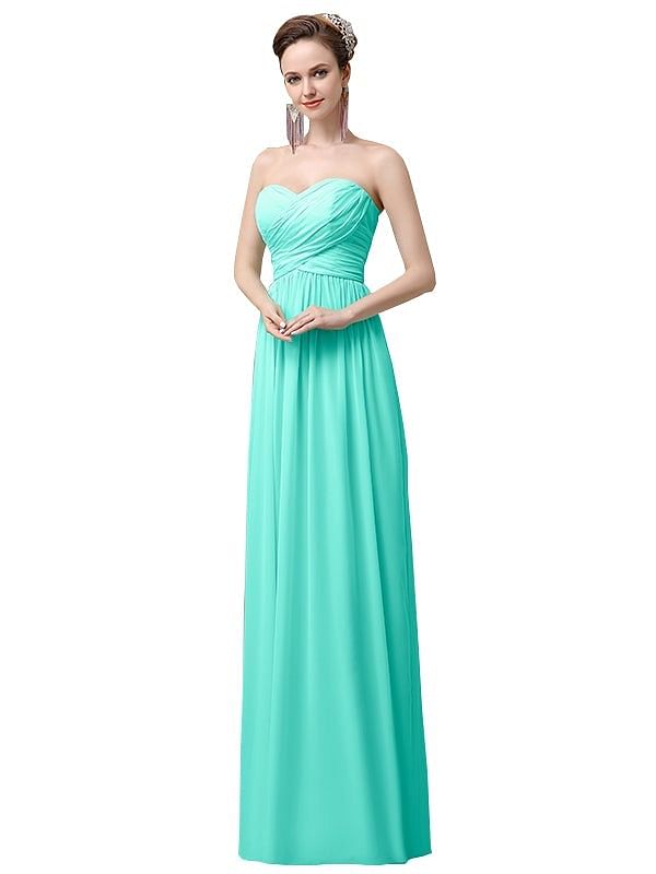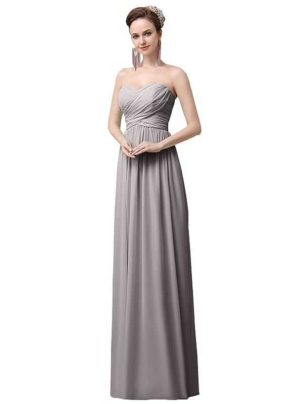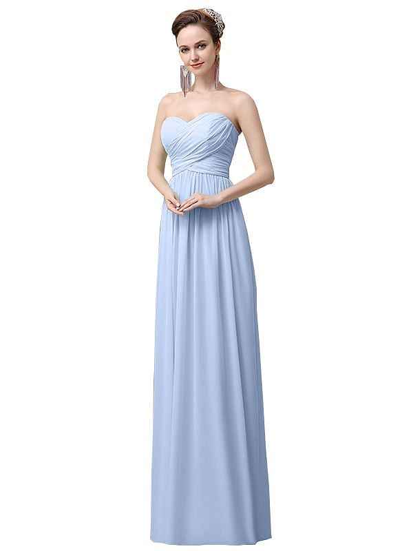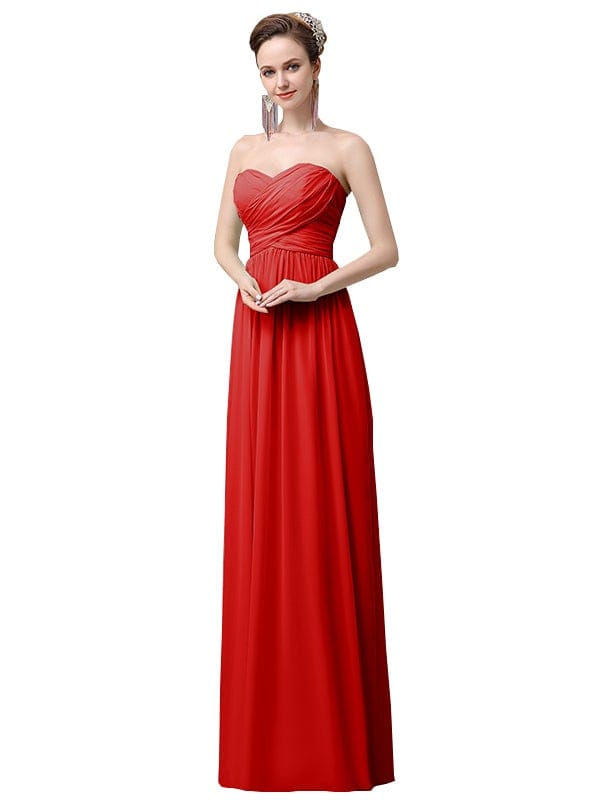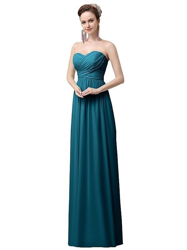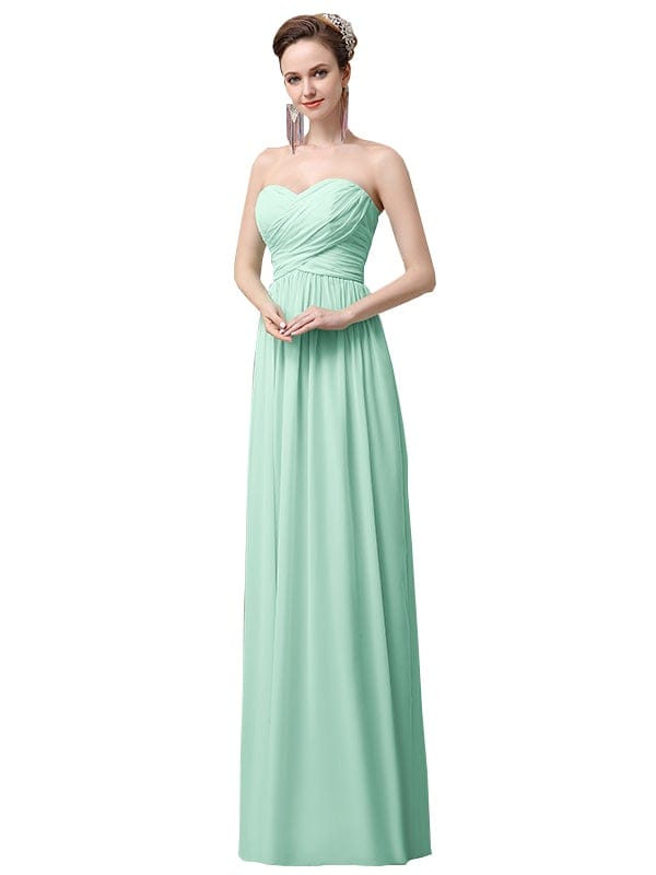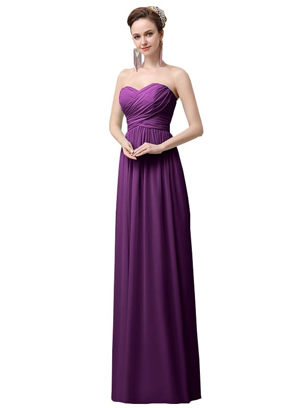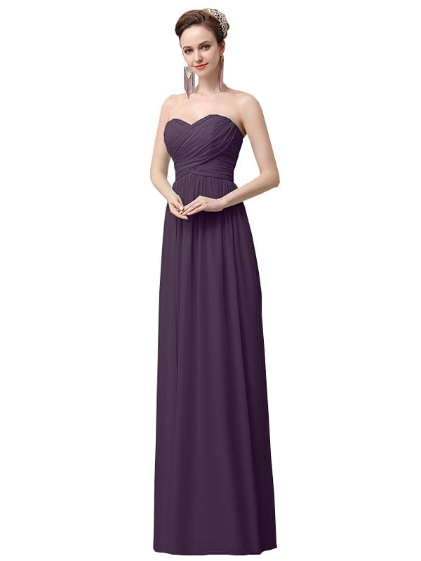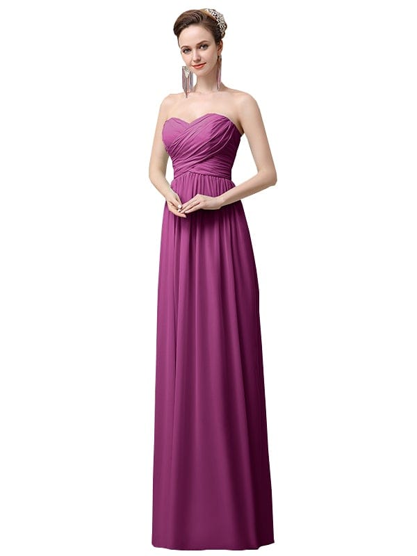 Simple A-line Chiffon Sweetheart Floor-Length Long Bridesmaid Dresses - ChicSew.co.uk