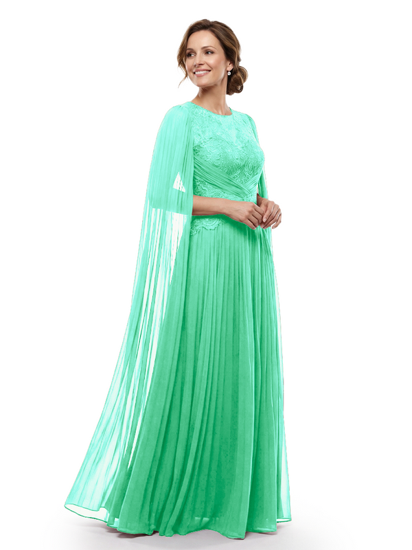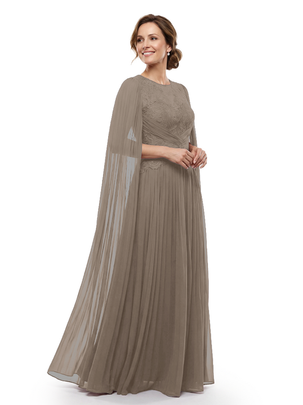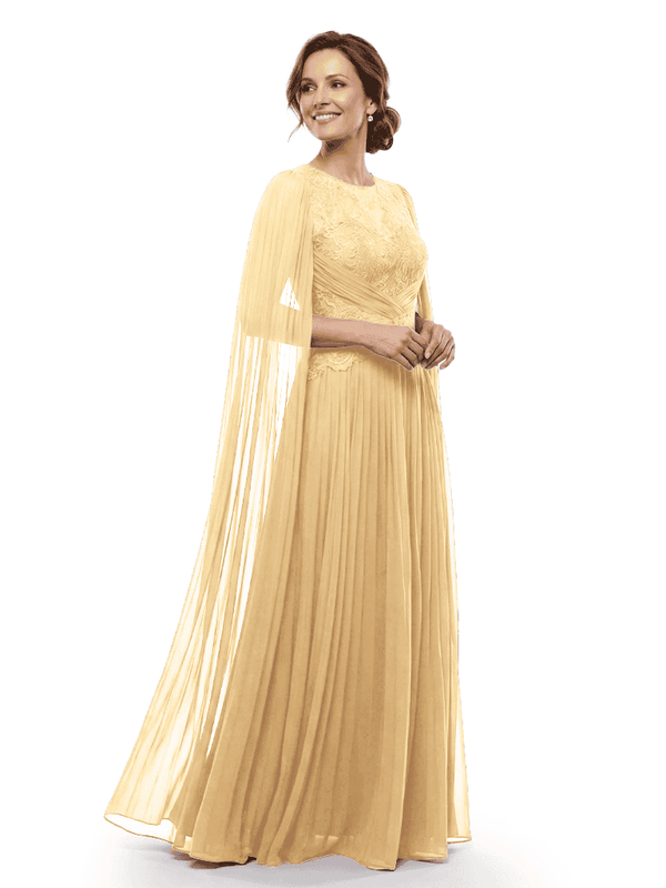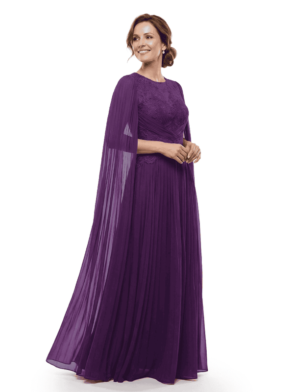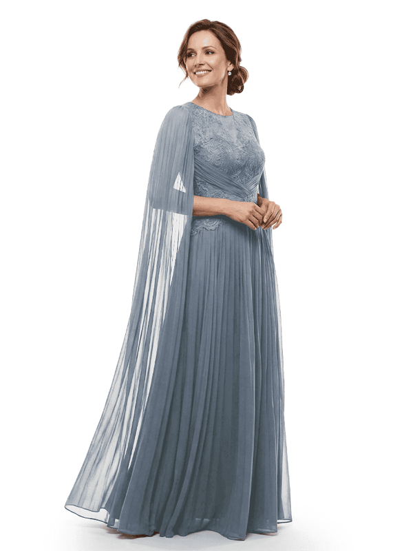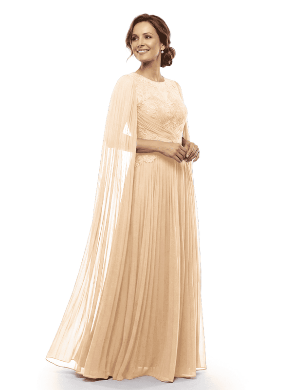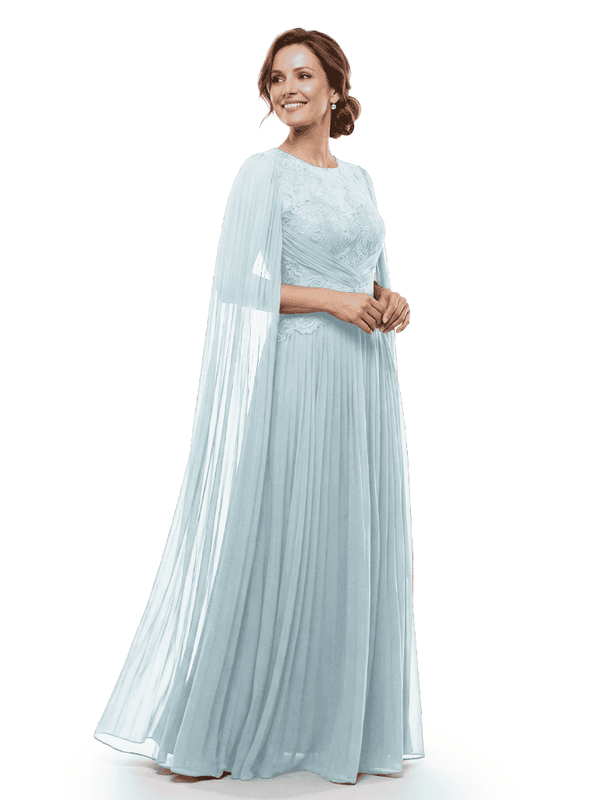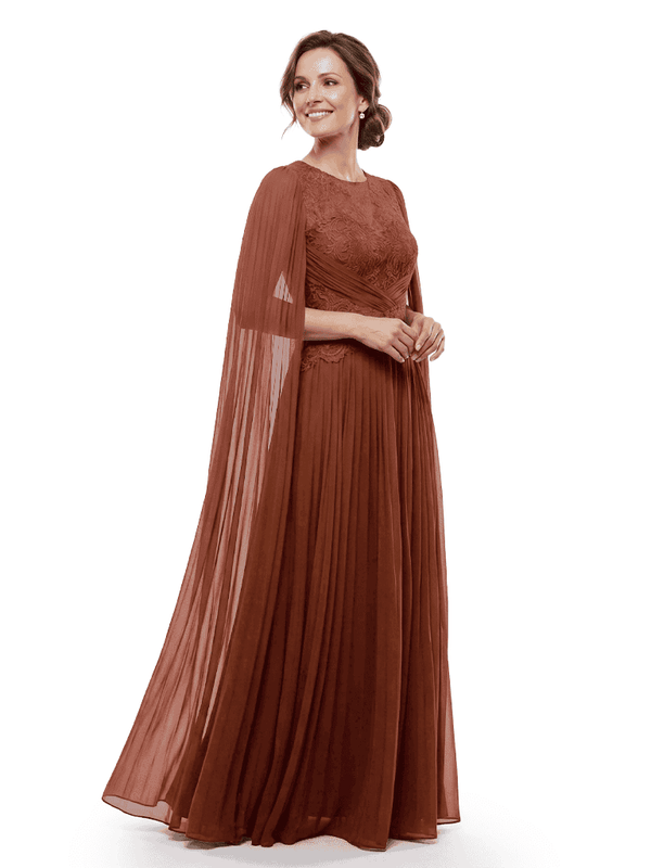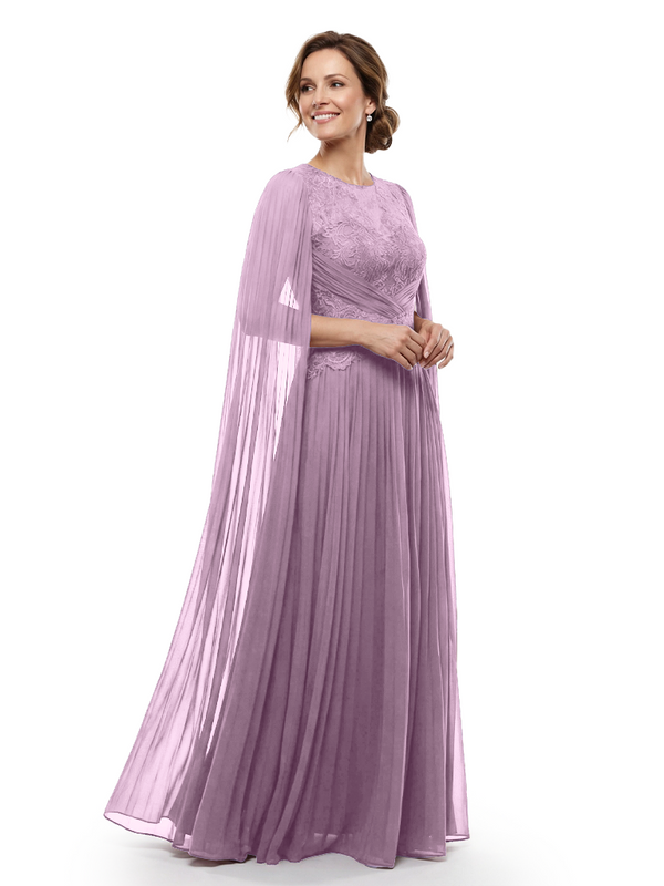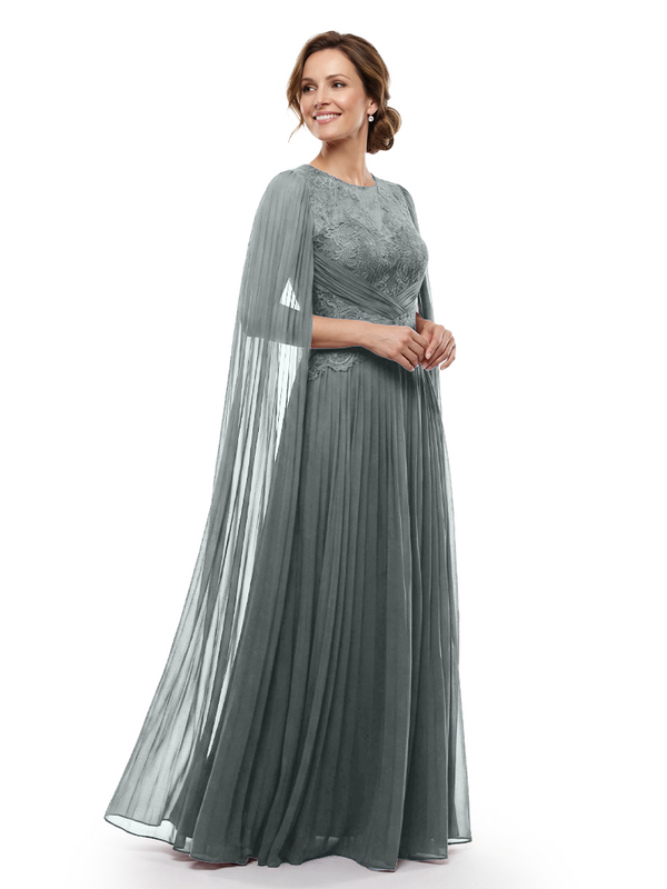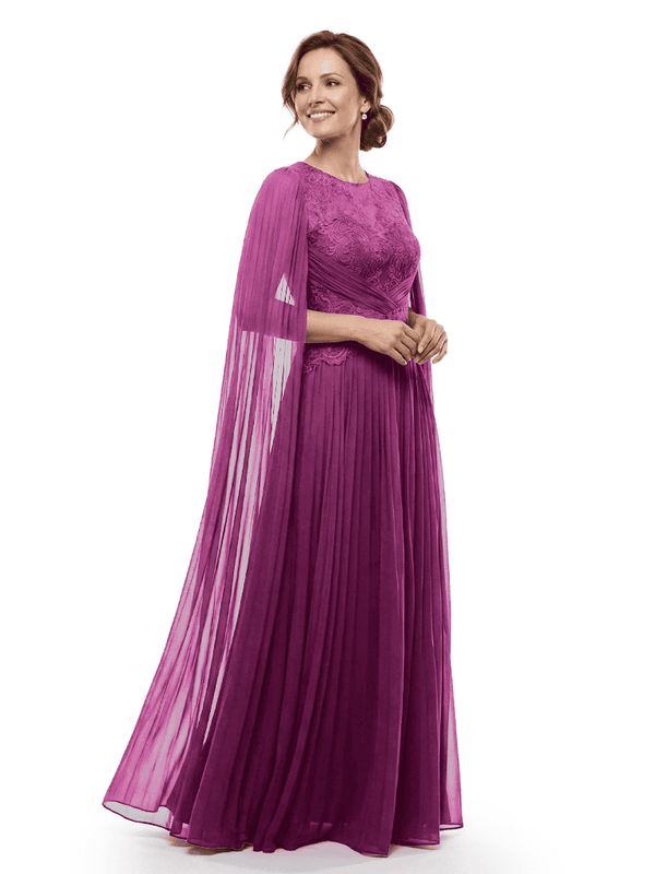Chicsew Mother of The Bride Dresses Jewel Long Sleeves Chiffon Gown Formal Wedding Event Dress - ChicSew