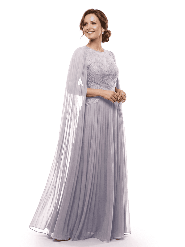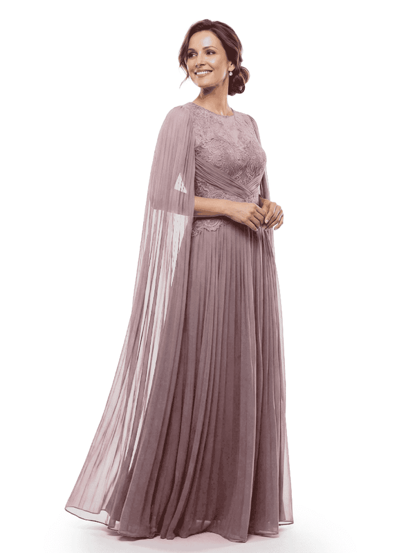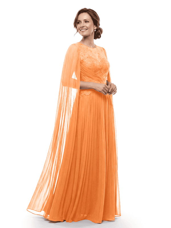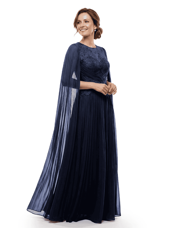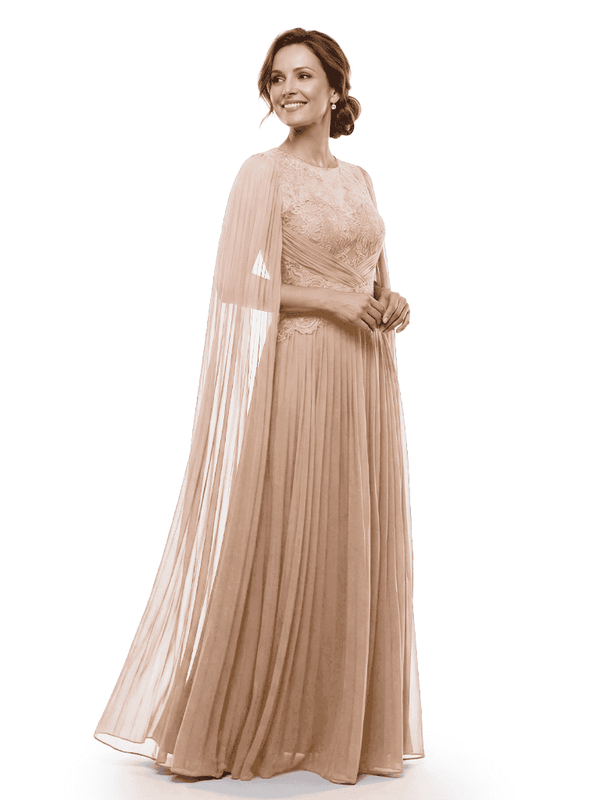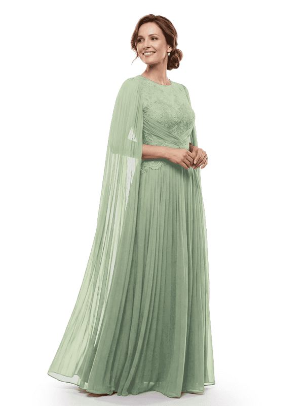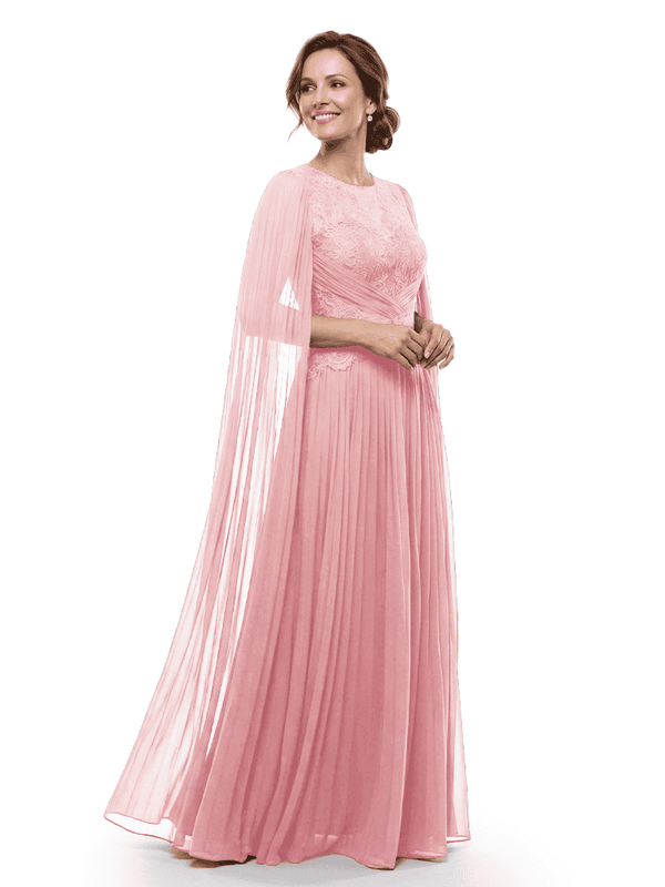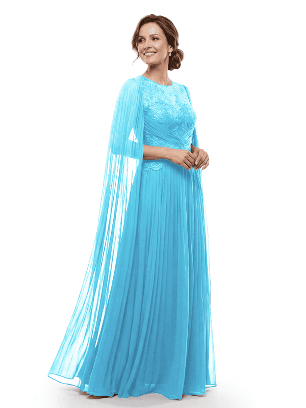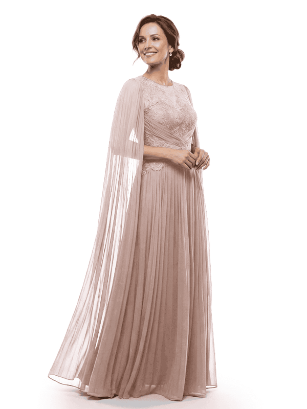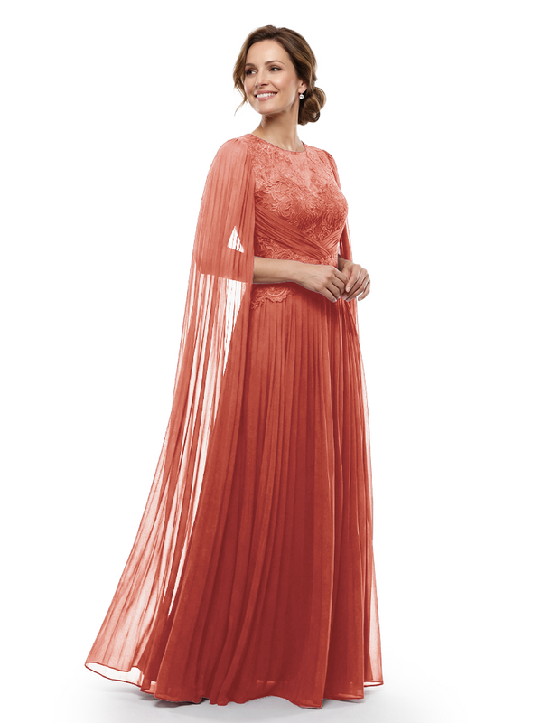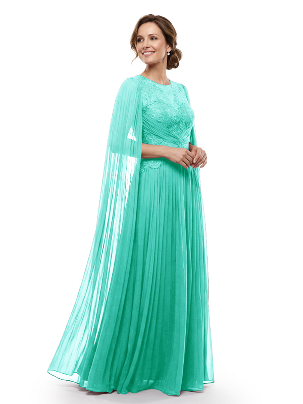 Chicsew Mother of The Bride Dresses Jewel Long Sleeves Chiffon Gown Formal Wedding Event Dress - ChicSew