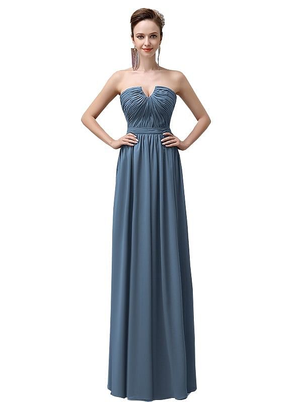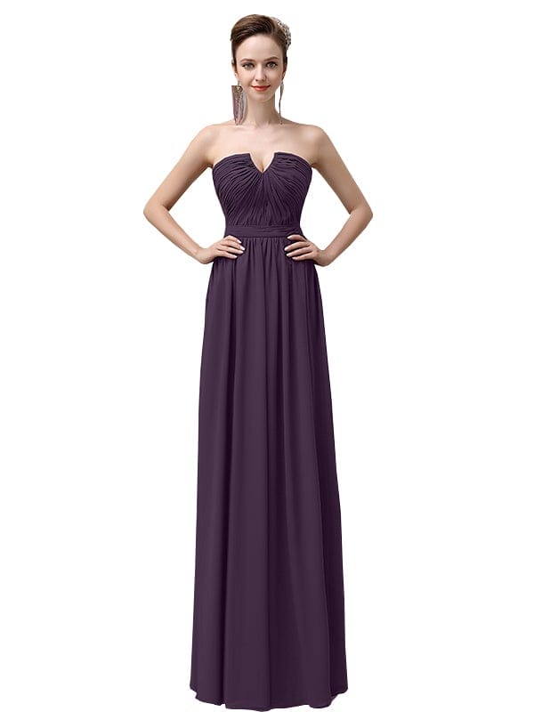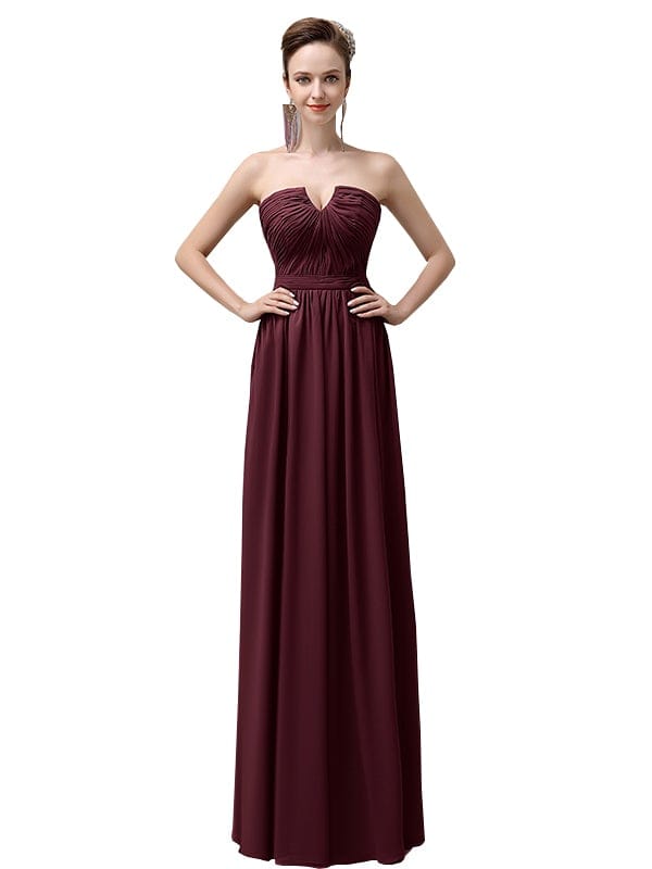 Sweetheart Simple A-line Floor-Length Chiffon Long Bridesmaid Dresses - ChicSew.co.uk