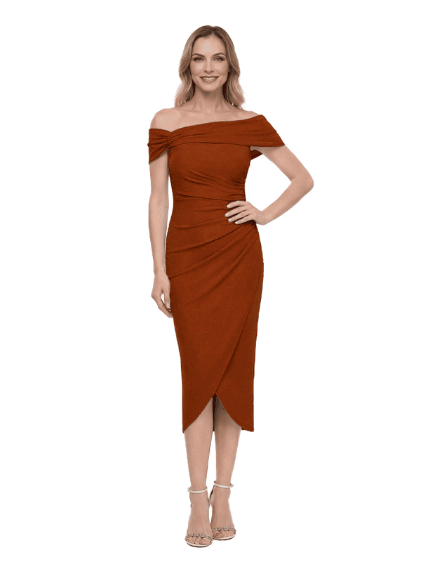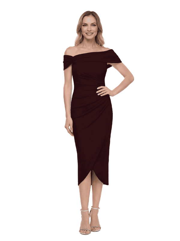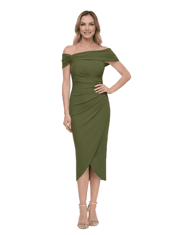 Chicsew Pretty Asymmetrical Crepe Midi Sheath Gown Formal Mother Of The Groom Dresses