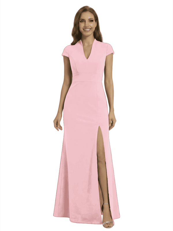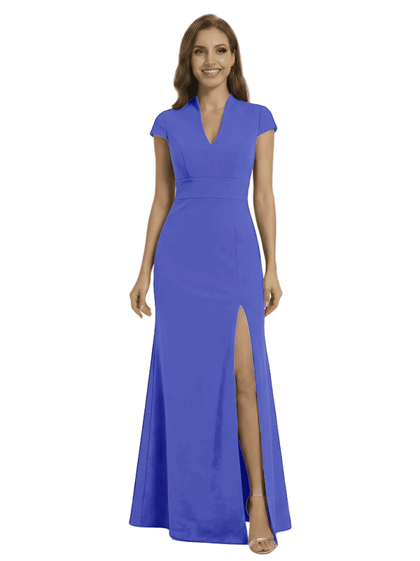Chicsew Pretty Crepe Cap Sleeves V-Neck Side Slit Mermaid Gown Formal Mother Of The Groom Dresses