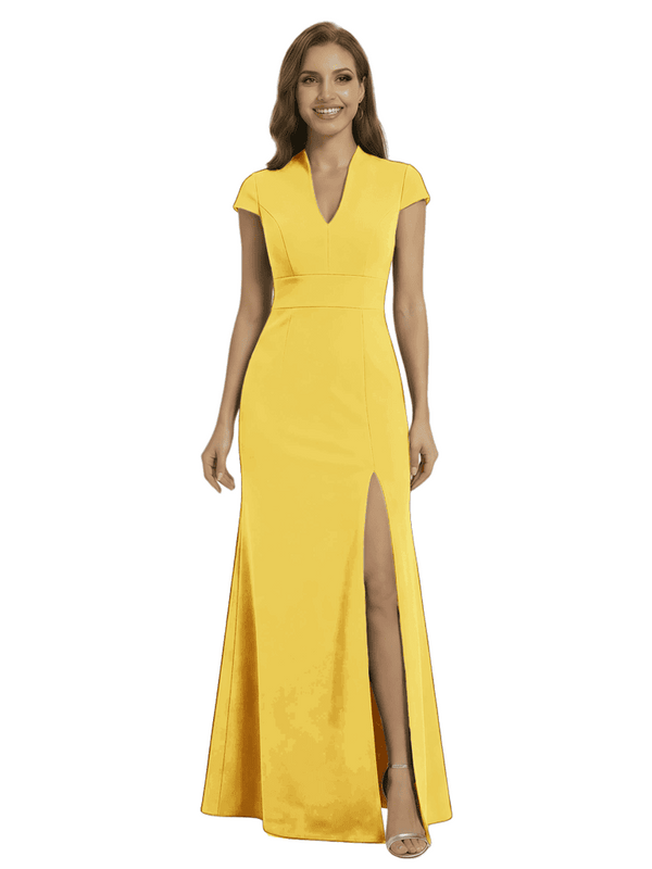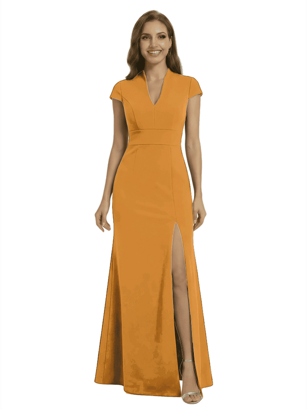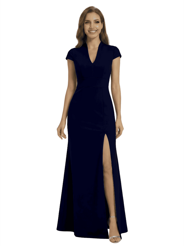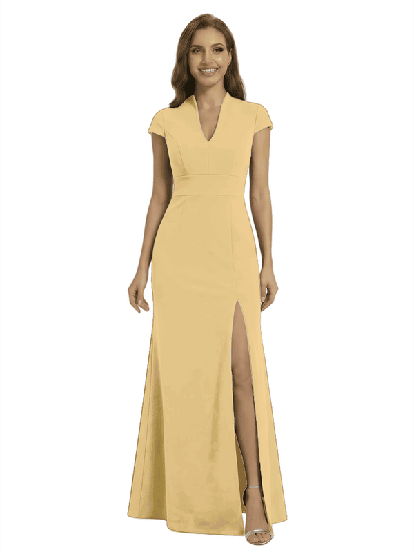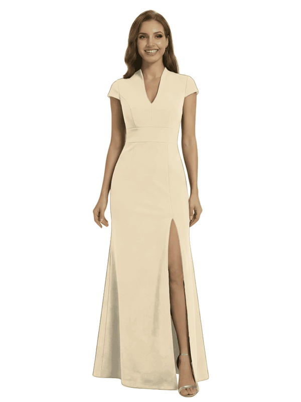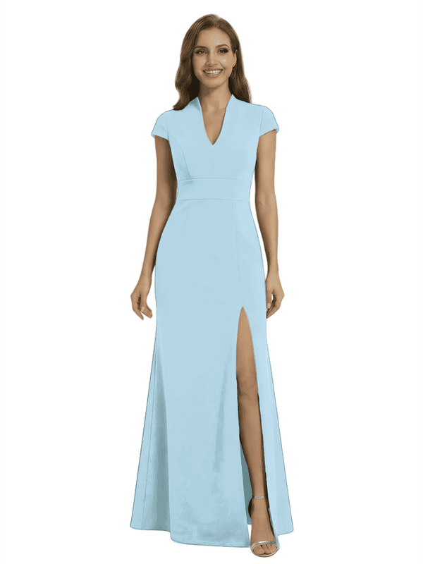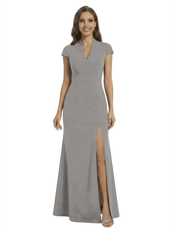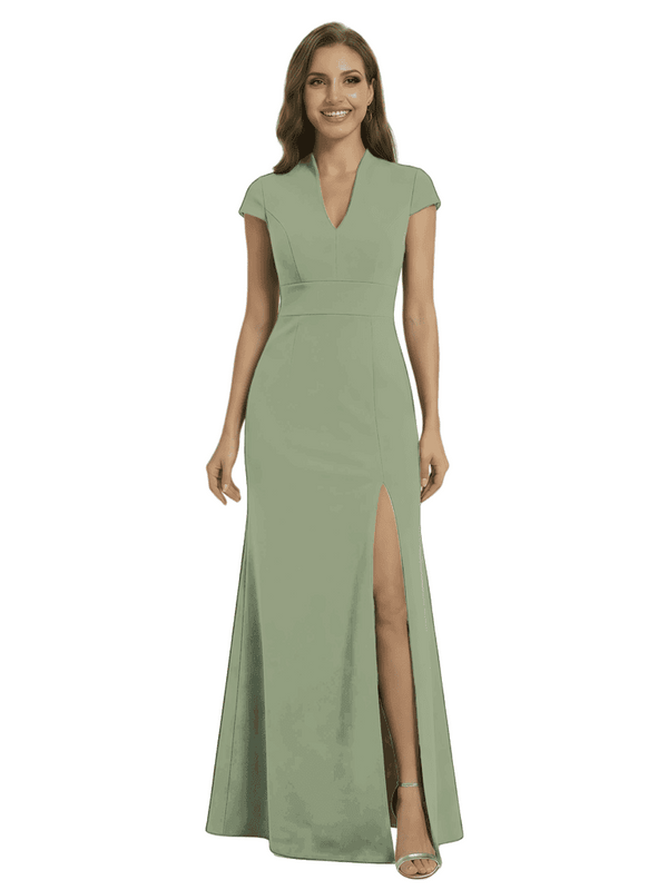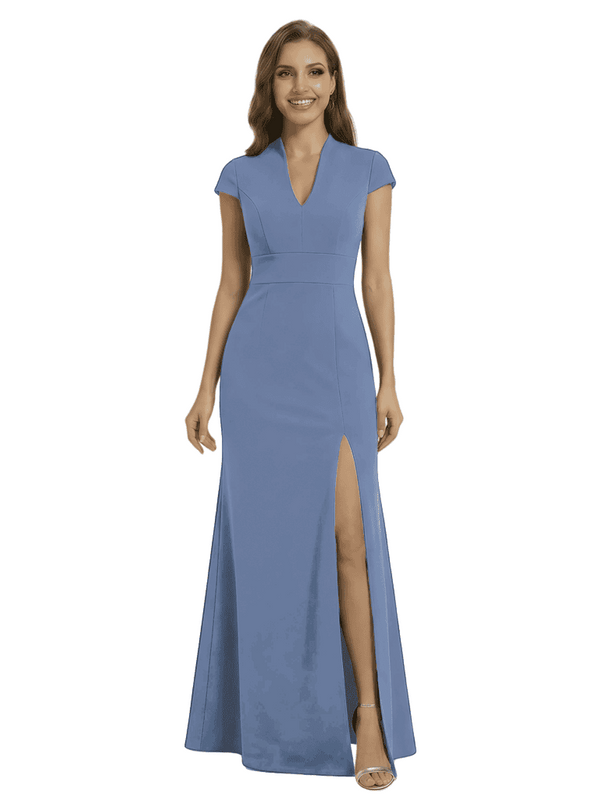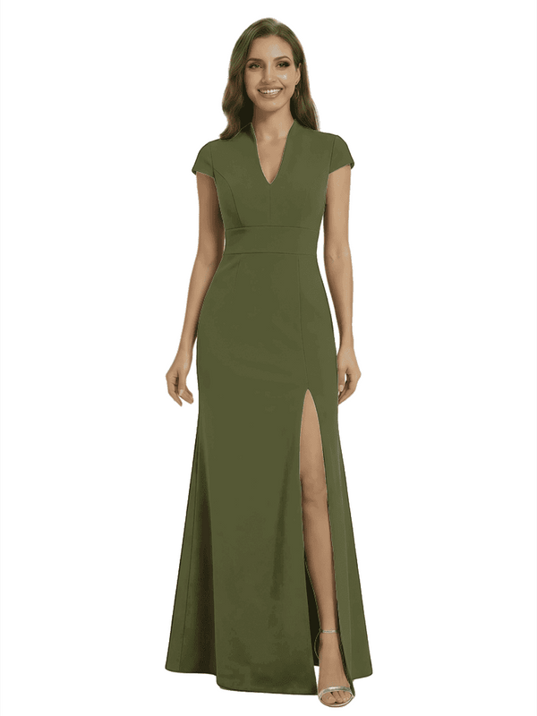 Chicsew Pretty Crepe Cap Sleeves V-Neck Side Slit Mermaid Gown Formal Mother Of The Groom Dresses - ChicSew