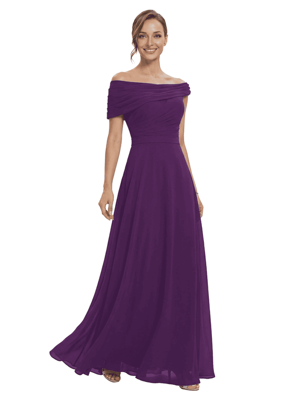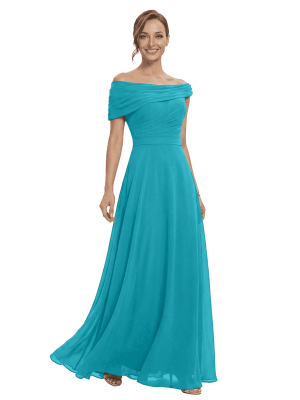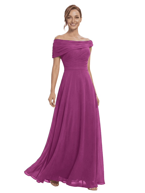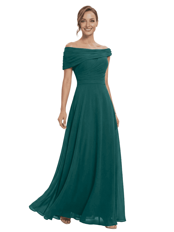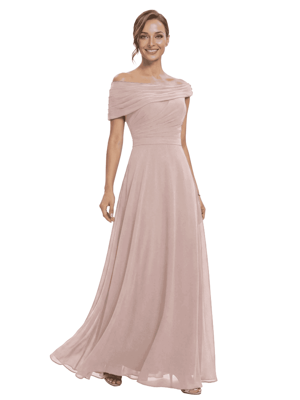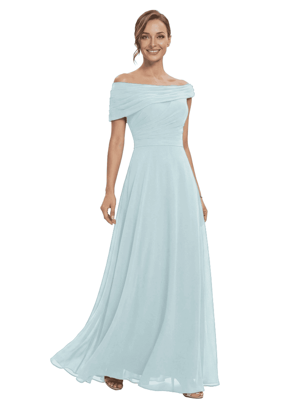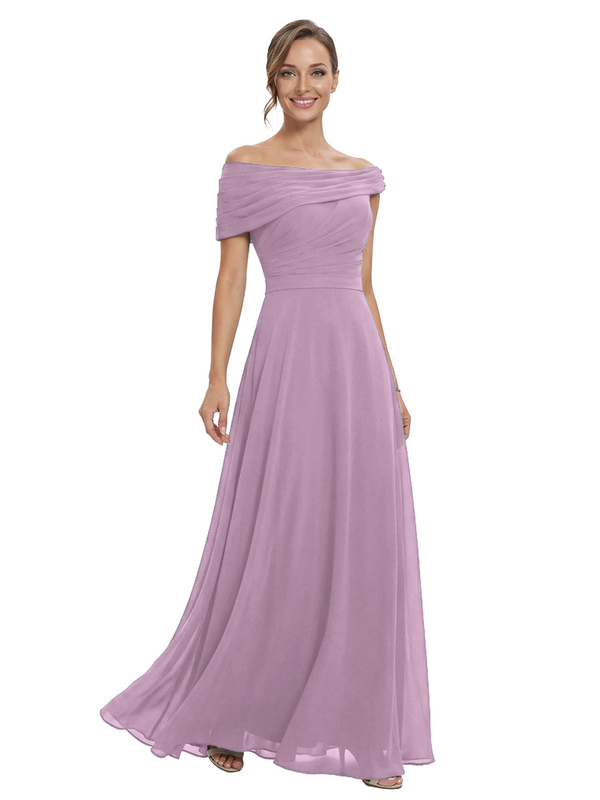 Chicsew Stylish Off Shoulder Chiffon Mother of The Bride Dress Flowy Long Elegant Formal Gown - ChicSewride