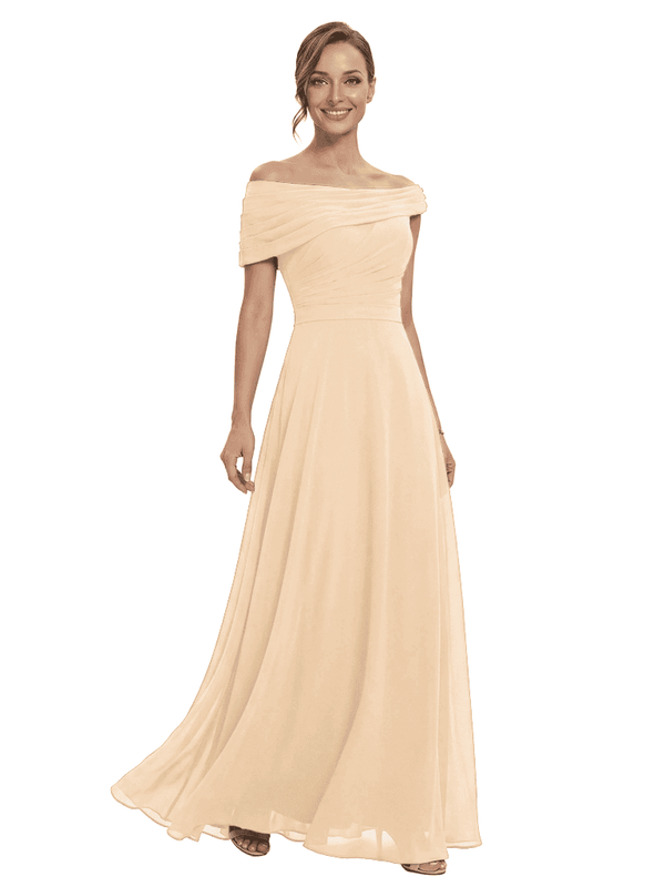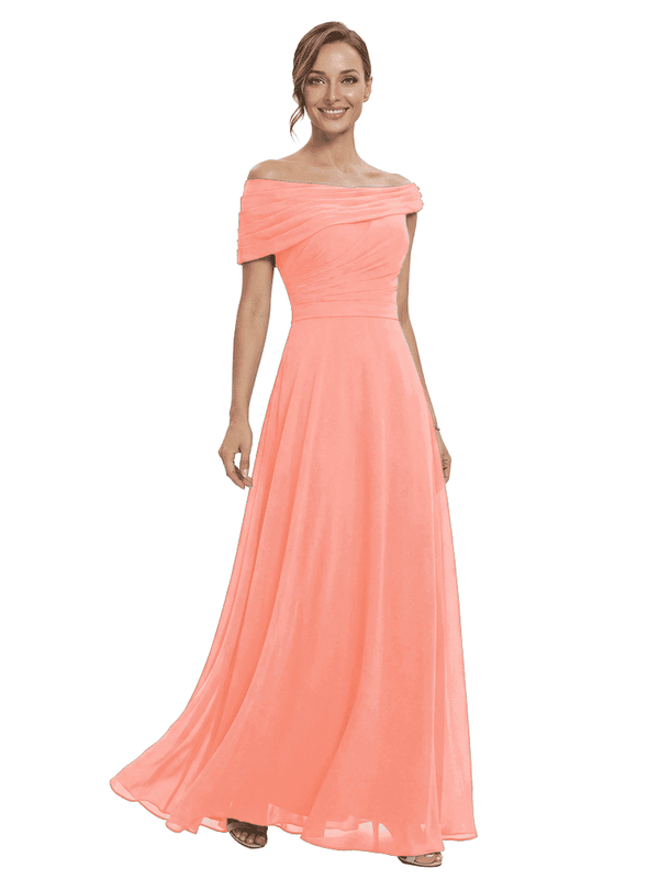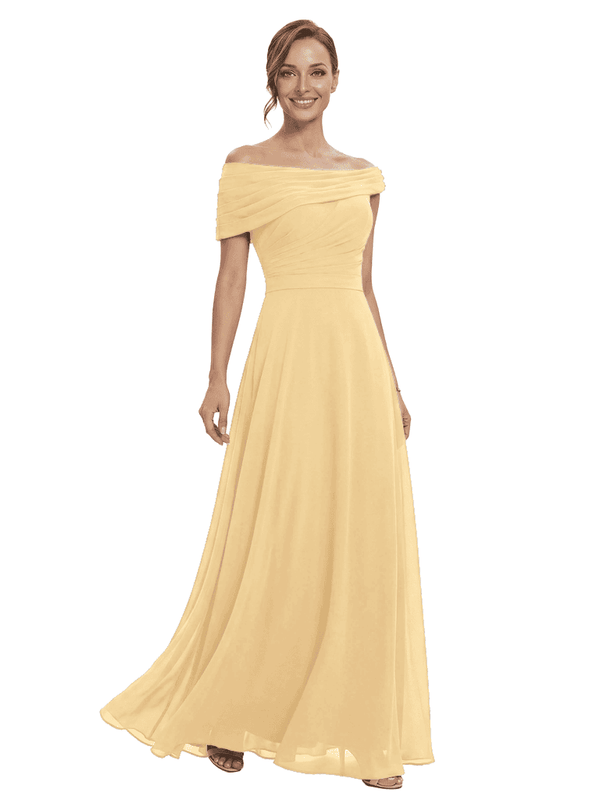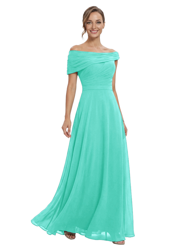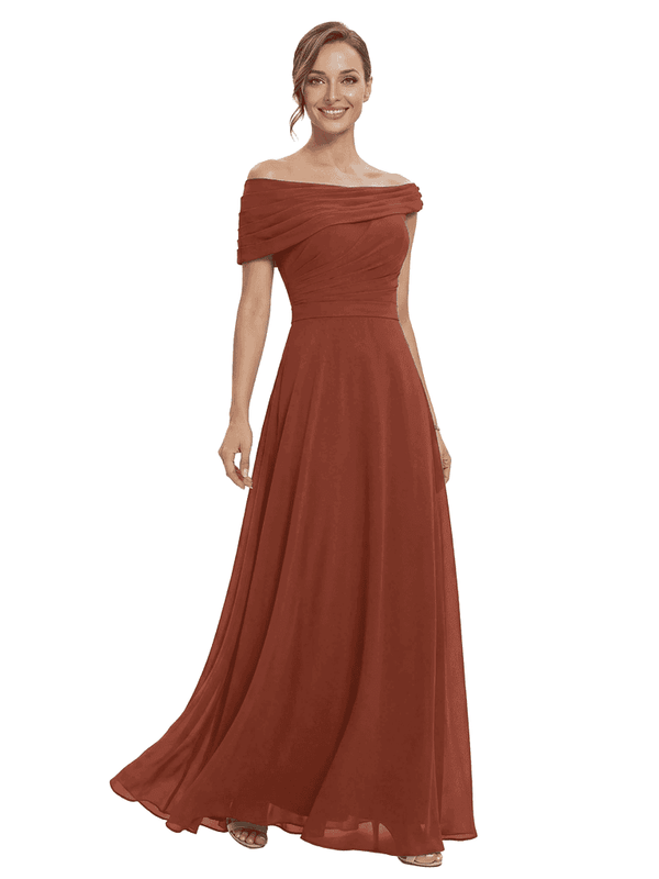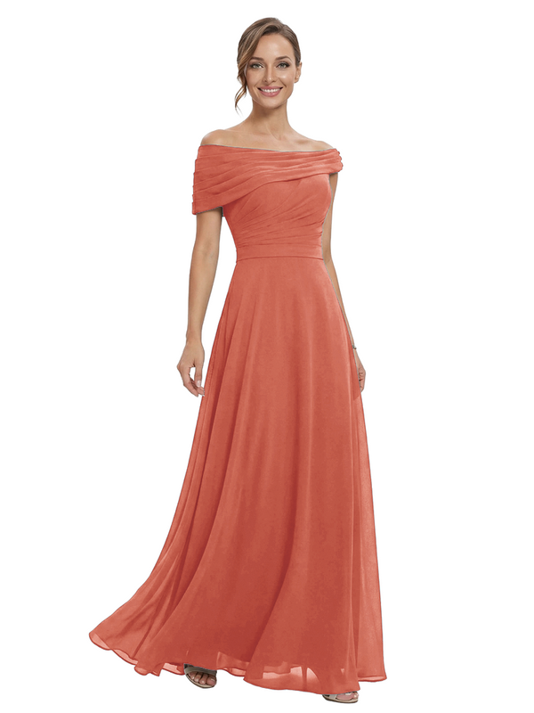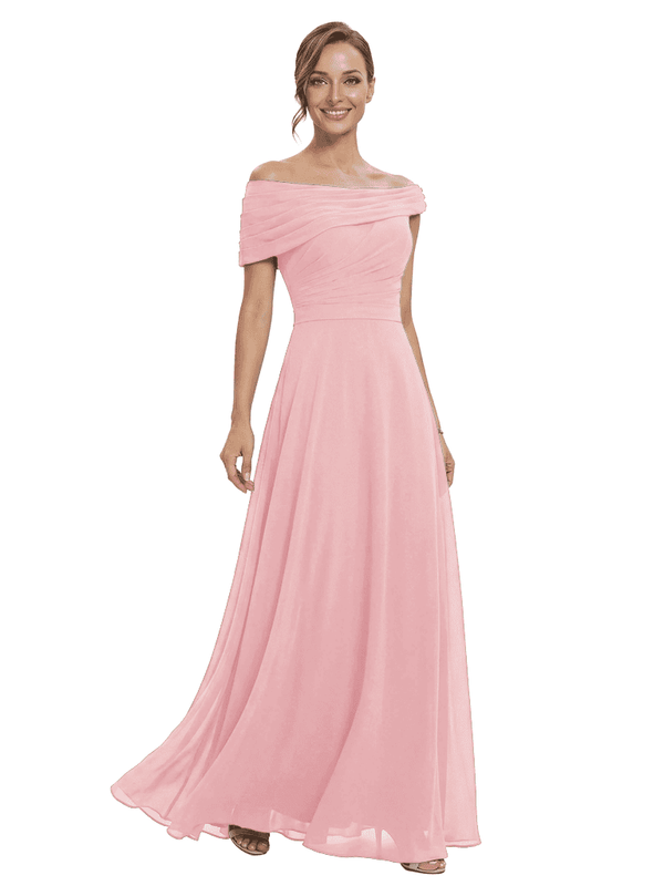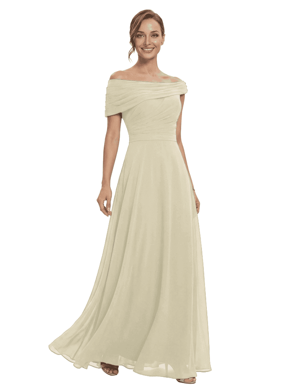 Chicsew Stylish Off Shoulder Chiffon Mother of The Bride Dress Flowy Long Elegant Formal Gown - ChicSewride
