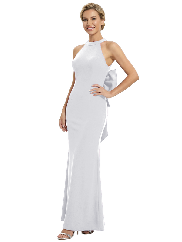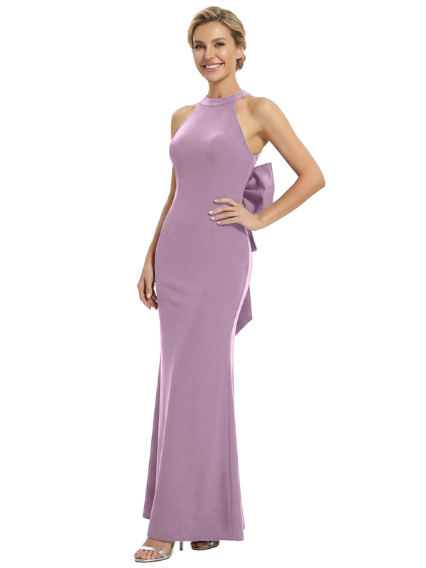 Chicsew Unique Halter Mermaid Satin Mother Of The Bride Gown With Elegant Oversized Bow