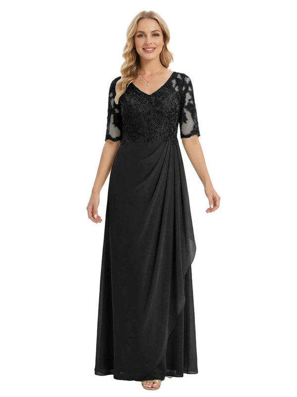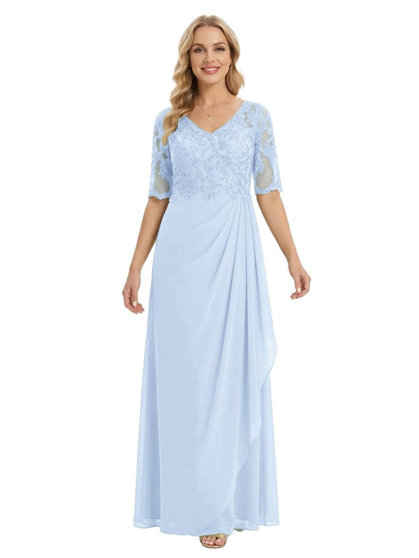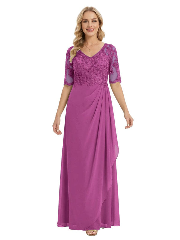 Classy V-Neck Half Sleeve Chiffon Gown With Lace Applique Mother of The Bride Dresses - ChicSew