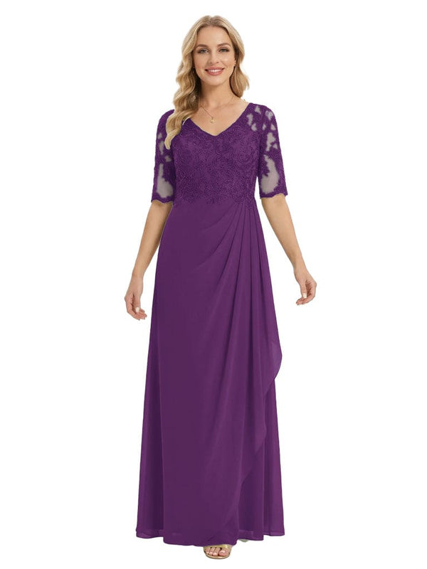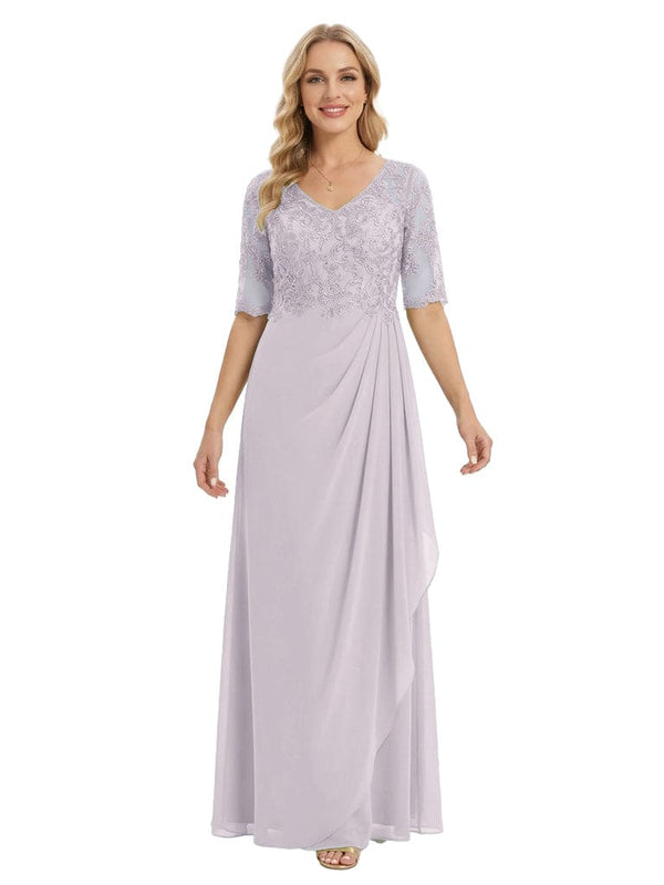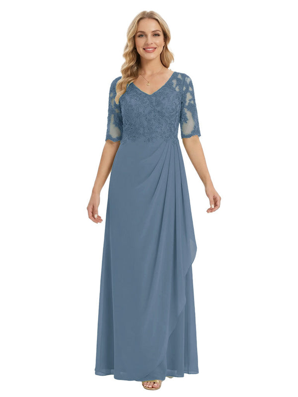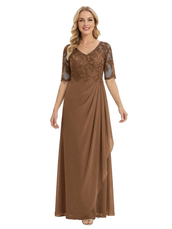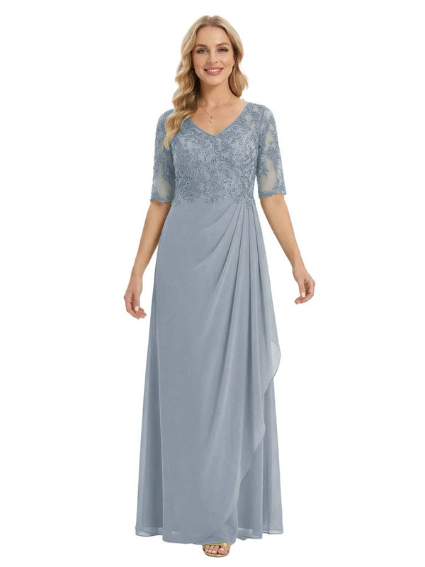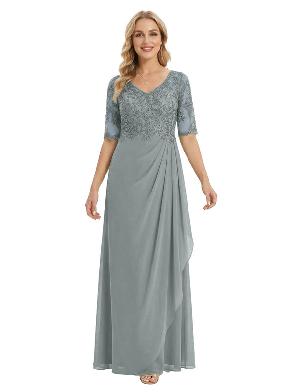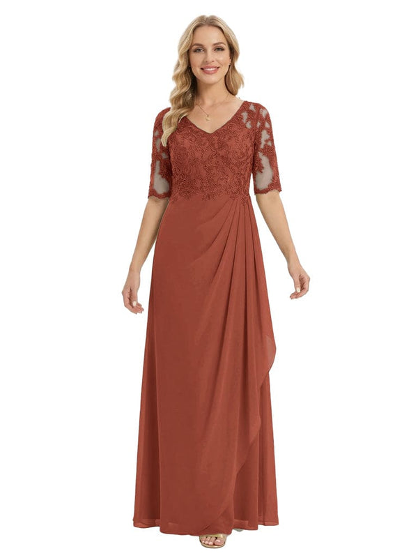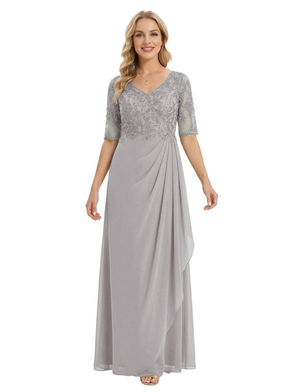 Classy V-Neck Half Sleeve Chiffon Gown With Lace Mother of The Bride Dresses