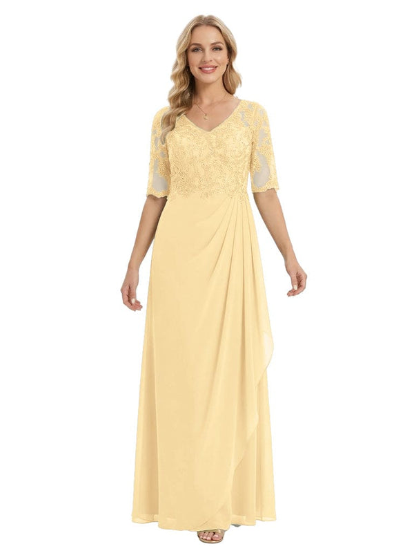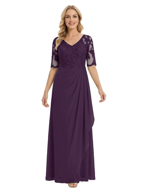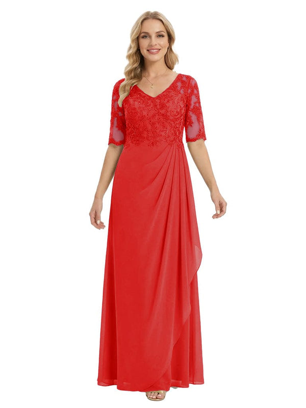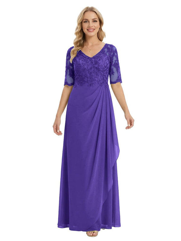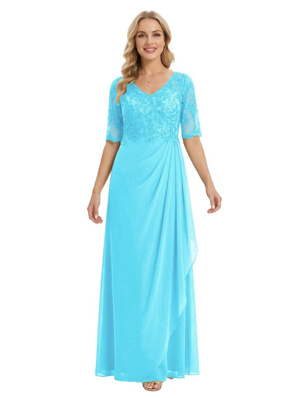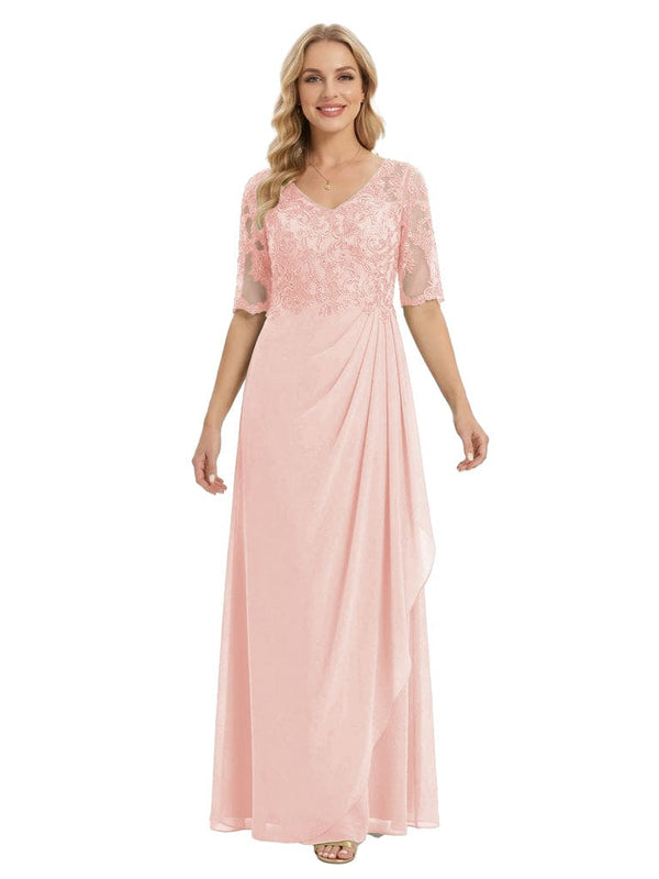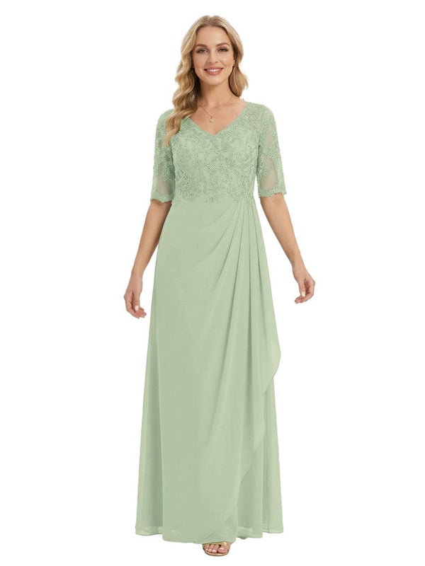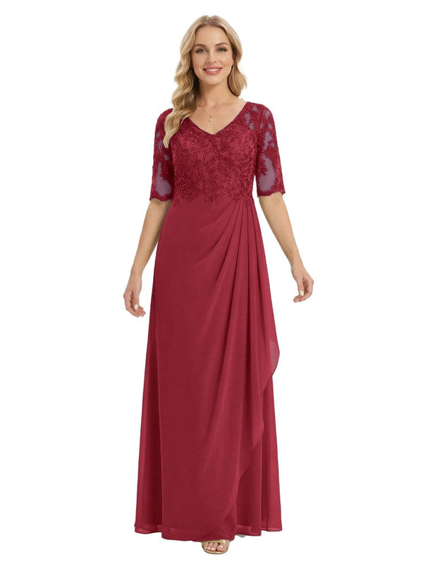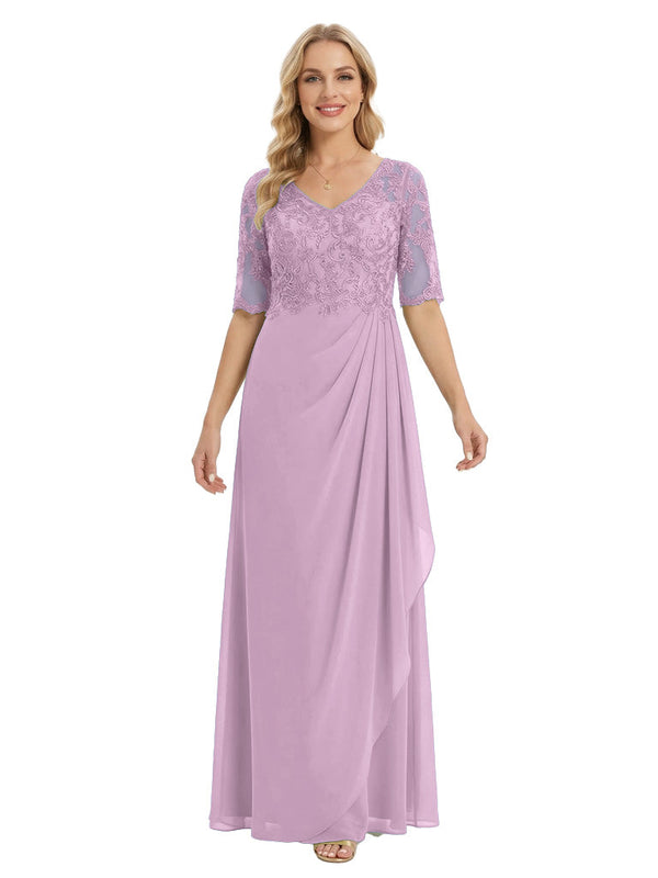 Classy V-Neck Half Sleeve Chiffon Gown With Lace Mother of The Bride Dresses