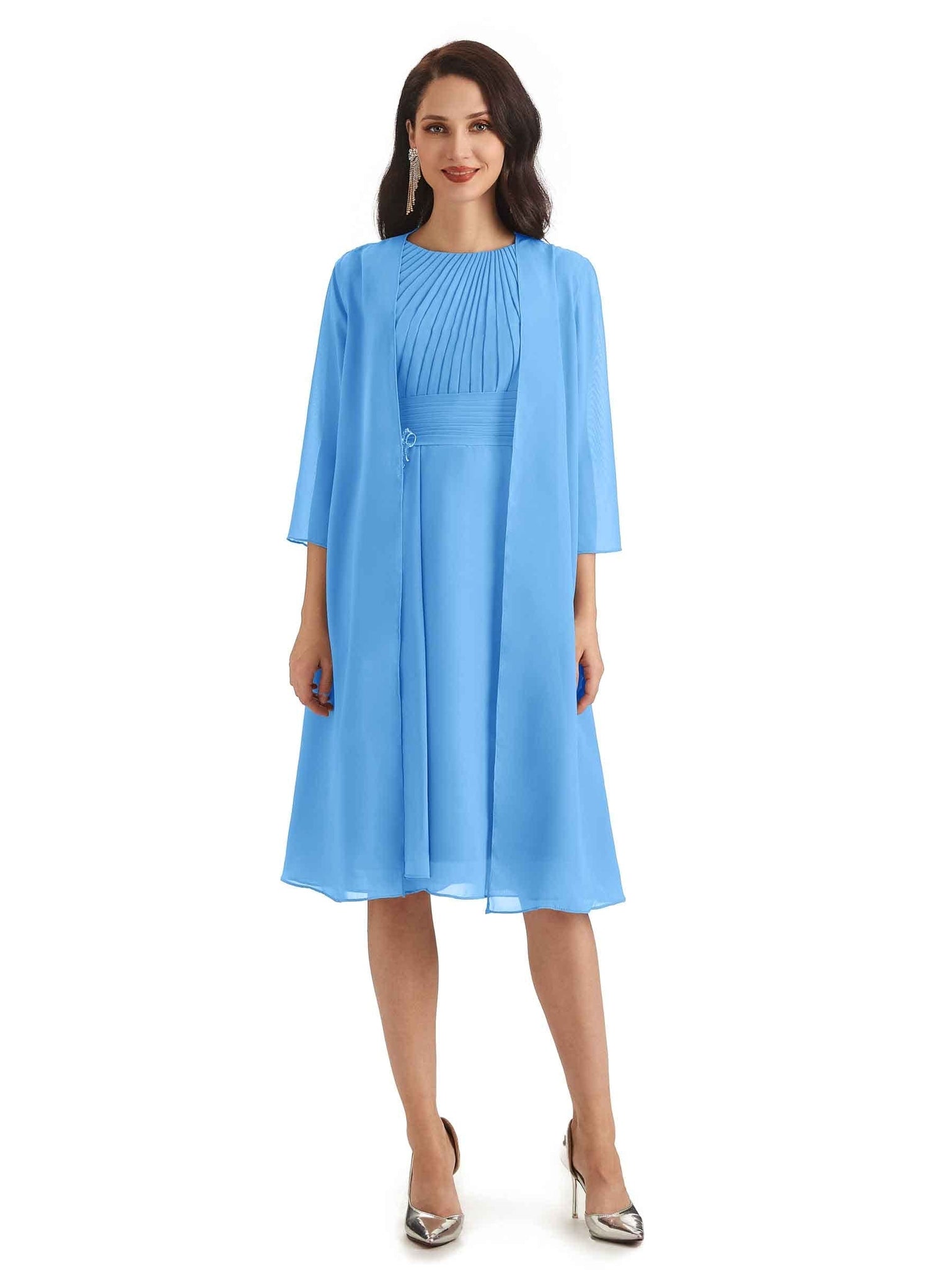 Elegant A-line Chiffon Knee-Length Short Mother of The Bride Dresses And Jacket Online Sale