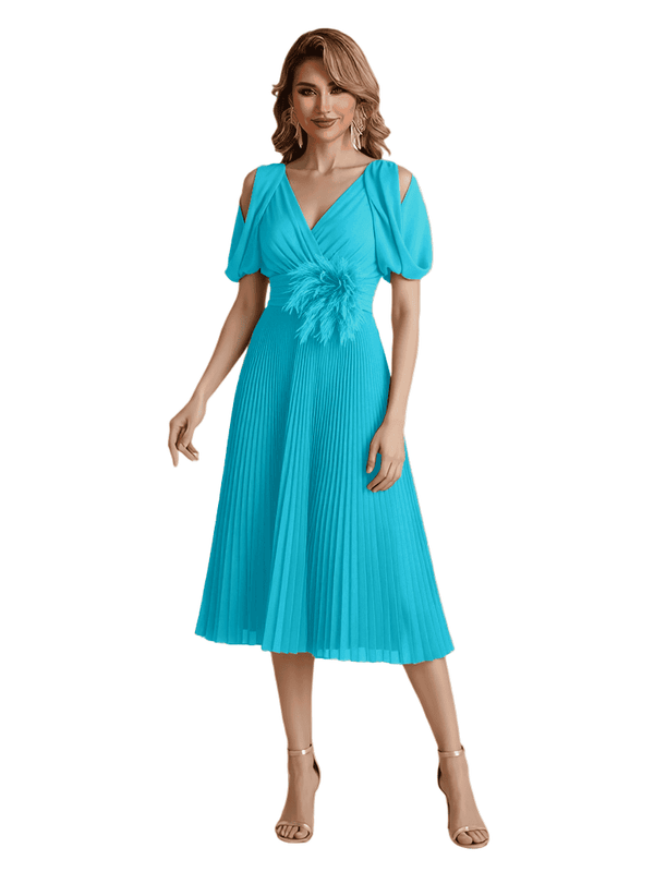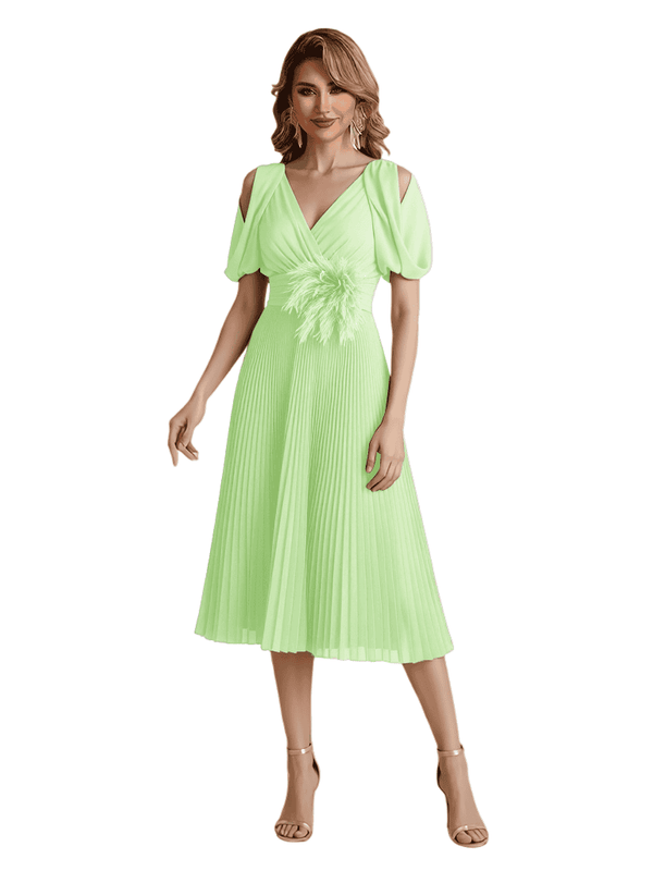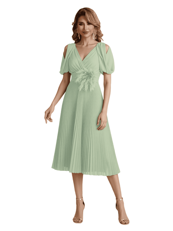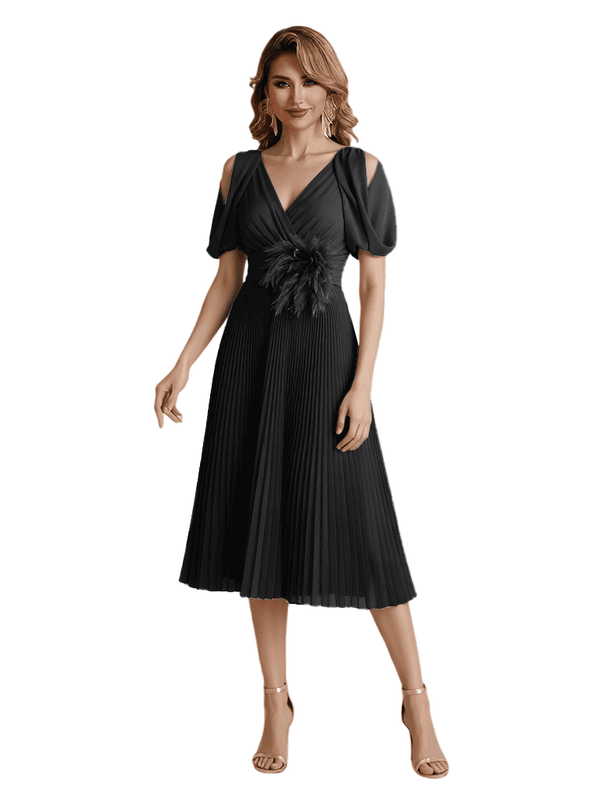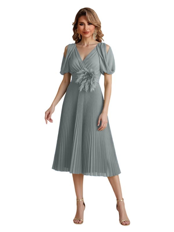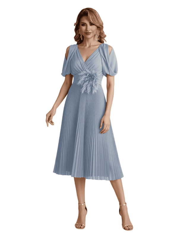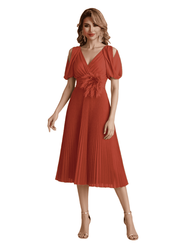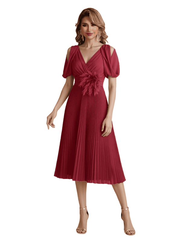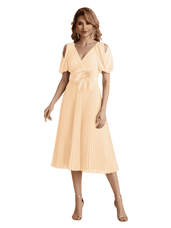 Since the material is soft satin, it's stretchy, if your real measurements are bigger than dress, then dress will be tight for you, the pleats will be stretched to plain, the pleats will not be obviously, further more, if you take dress off, then stitches will be stretched out, they become obviously if you bring up the pleats, in this condition, you can sort out the pleats by stretching them into both side, then stitches will indent into pleats. If your real measurements are smaller than dress, then pleats will out of shape, they will become loose, so please find a seamstress in your local shop to take dress in.For more, please check our blog: https://chicsew.com/blogs/news/why-i-can-see-stitches-under-pleatsWe also have ADJUSTMENTS & REIMBERSEMENTS policy, please check this link: https://chicsew.com/pages/adjustments-reimbersements