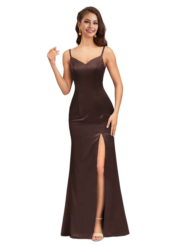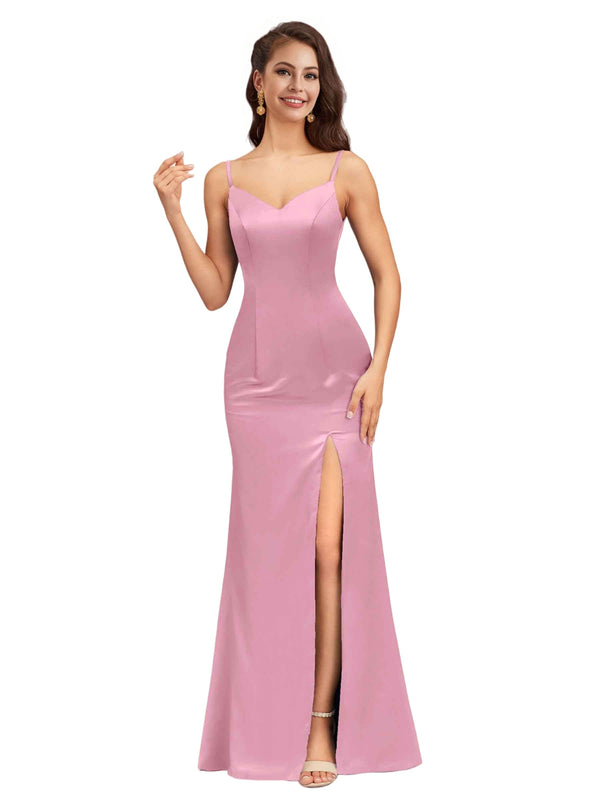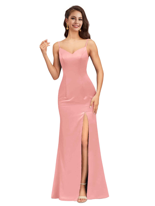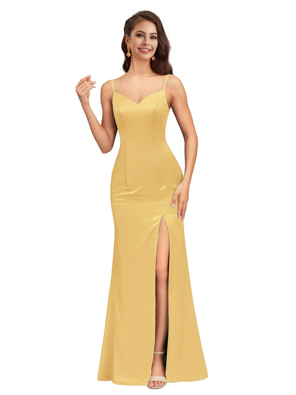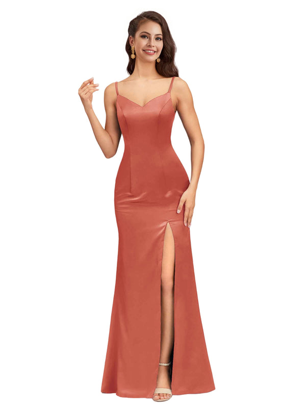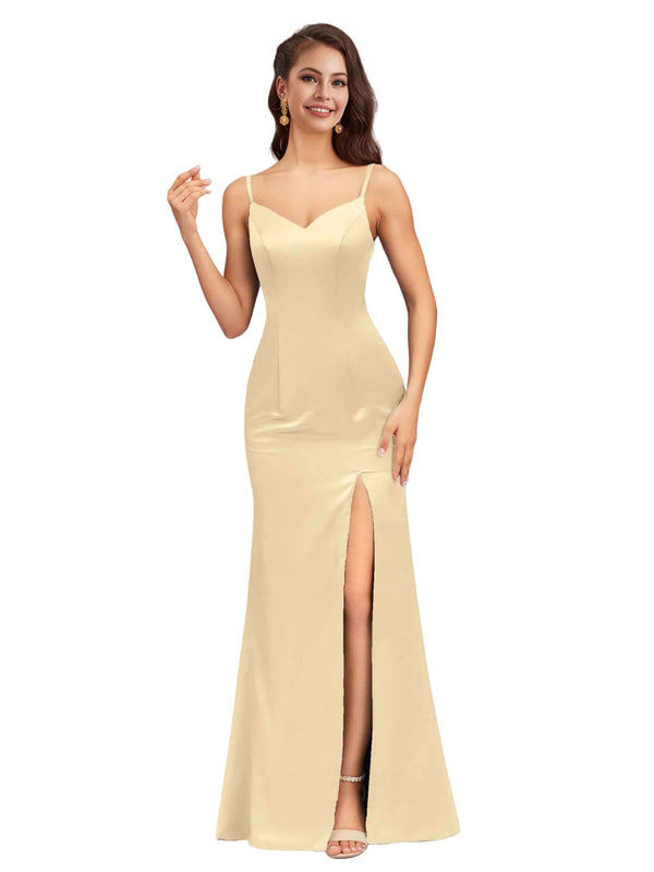 Elegant Spaghetti Straps Mermaid Side Slit Beauty Soft Satin Bridesmaid Dresses - ChicSew