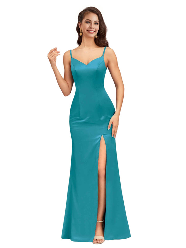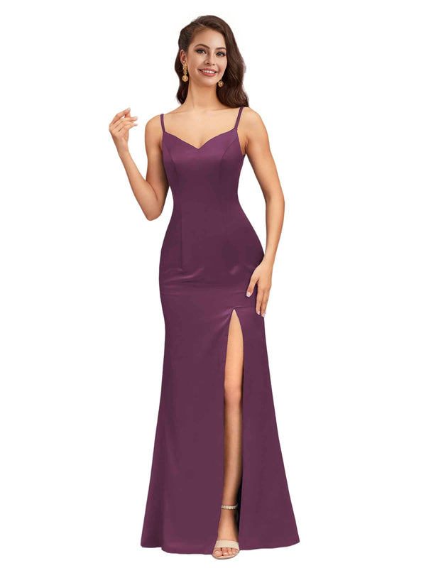 Elegant Spaghetti Straps Mermaid Side Slit Beauty Soft Satin Bridesmaid Dresses £102.99