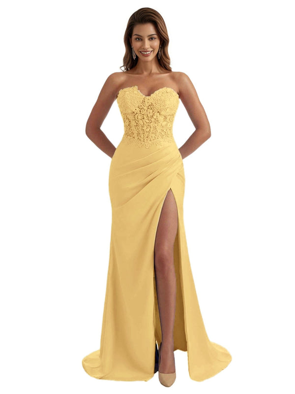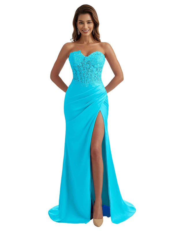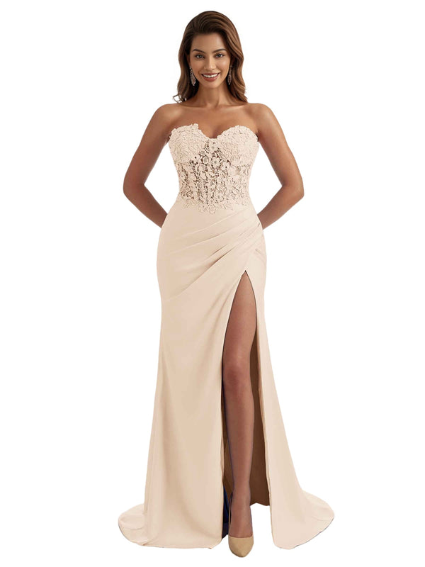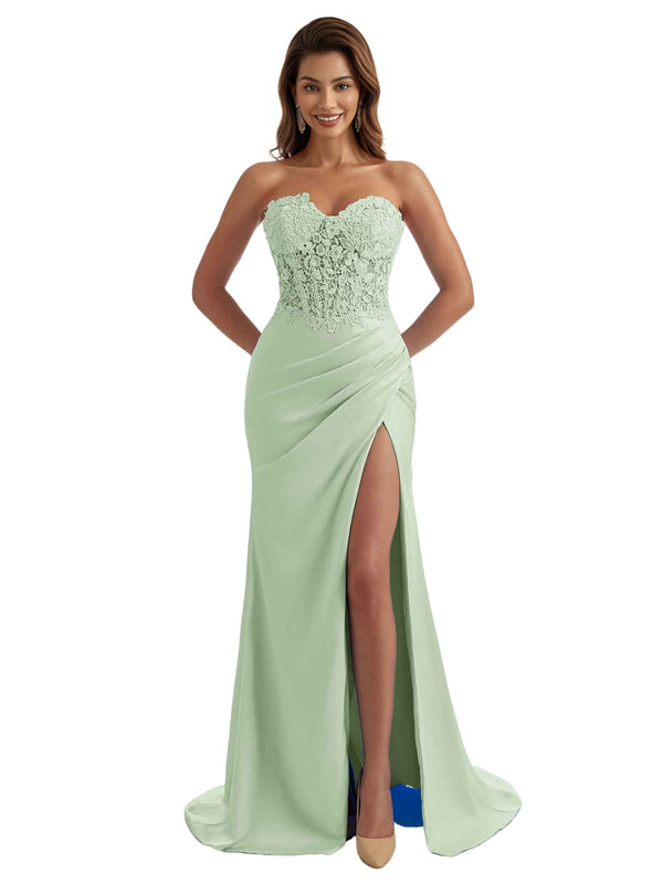 Embellishment: Side Split, Pleats, Lace Appliques
