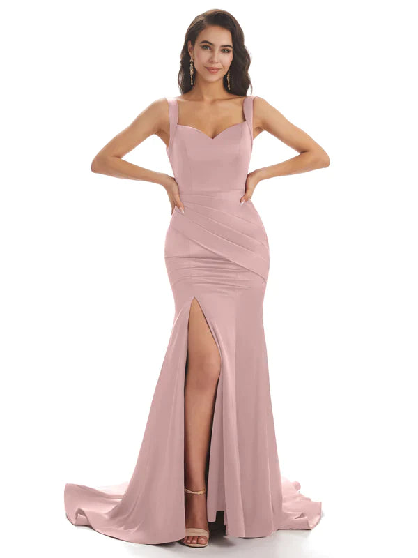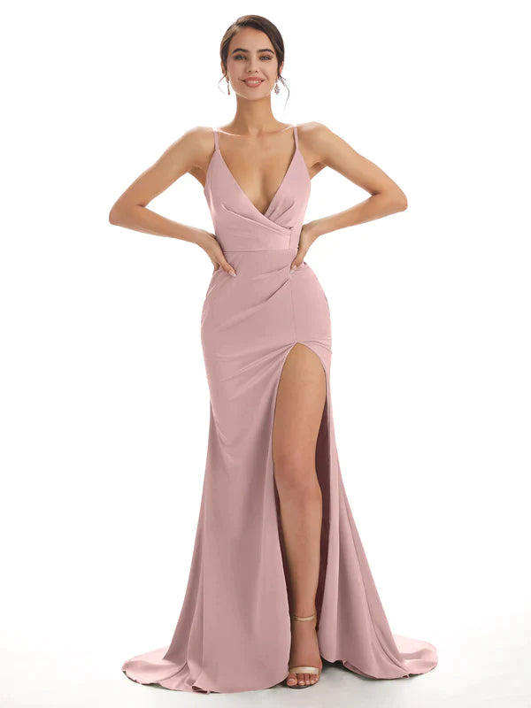 Mismatched Vintage-Mauve Sexy Side Slit Mermaid Soft Satin Long Brides