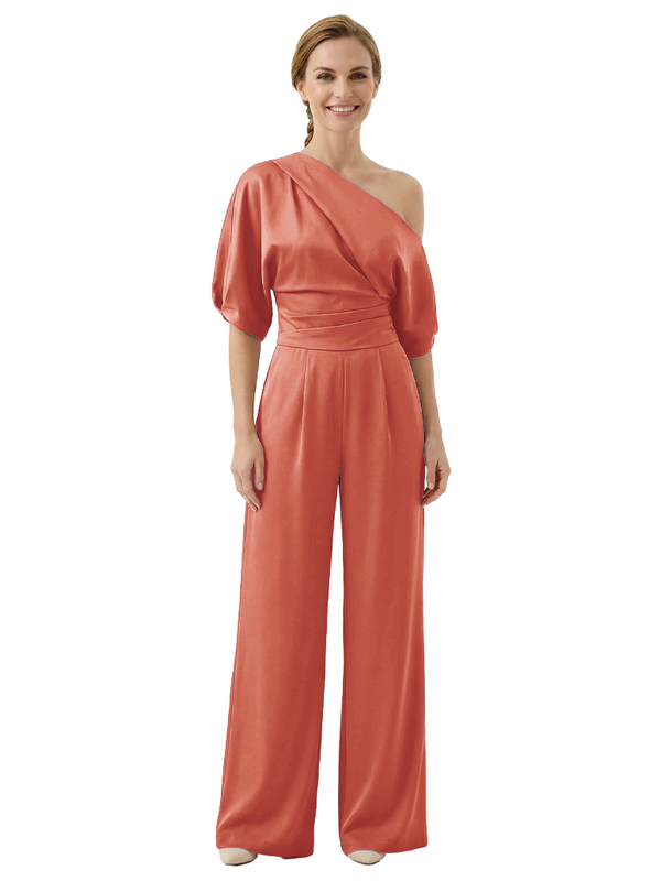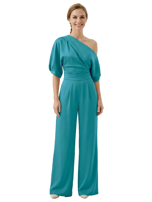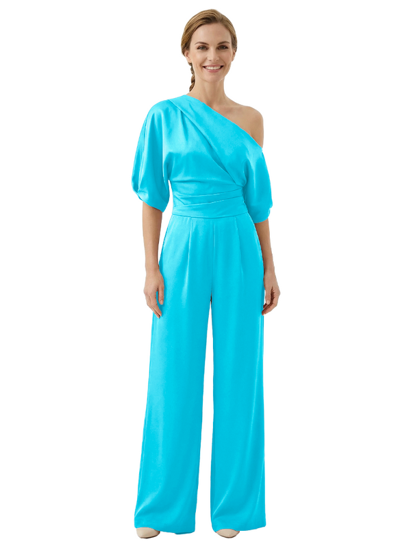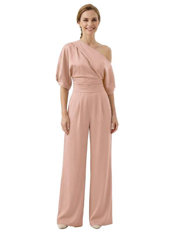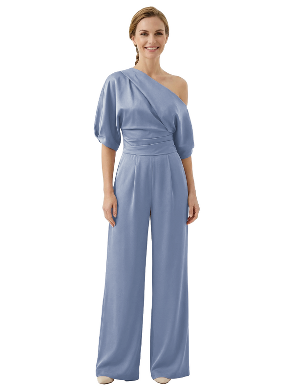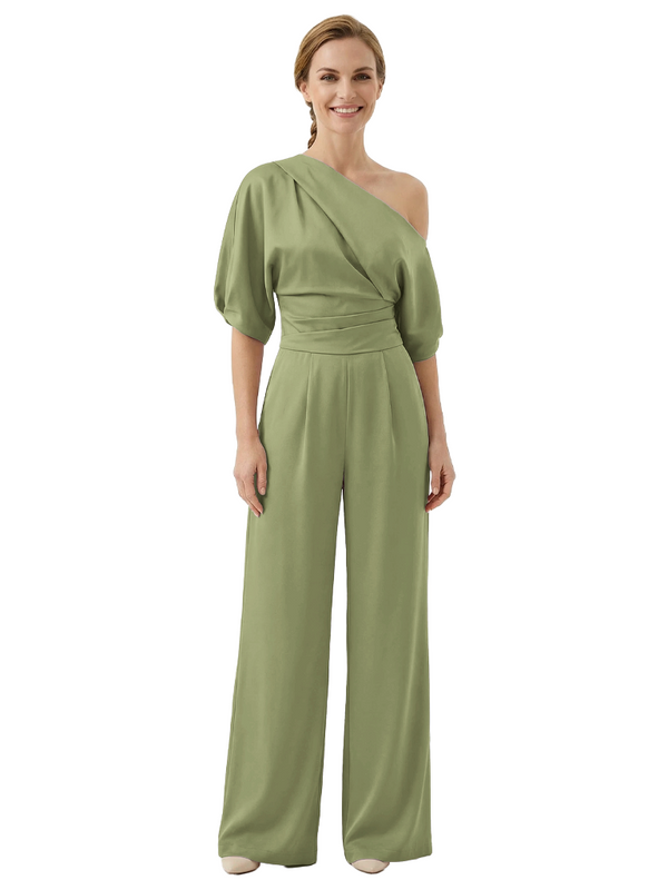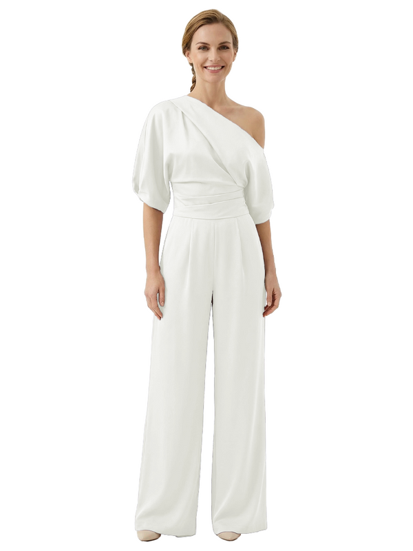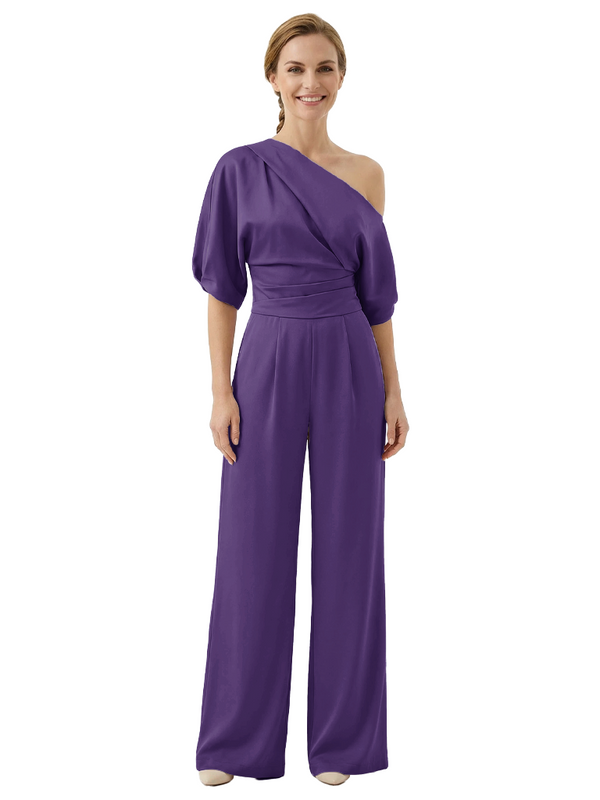 Modern Asymmetrical Short Sleeves Mother Of The Bride Jumpsuit- ChicSew