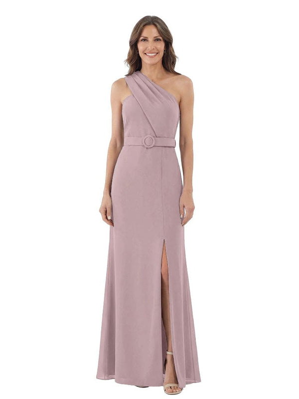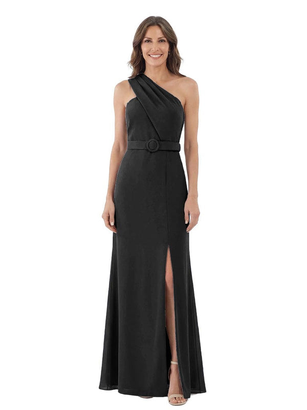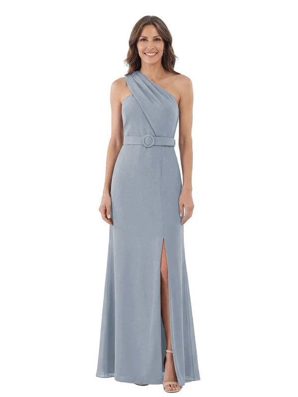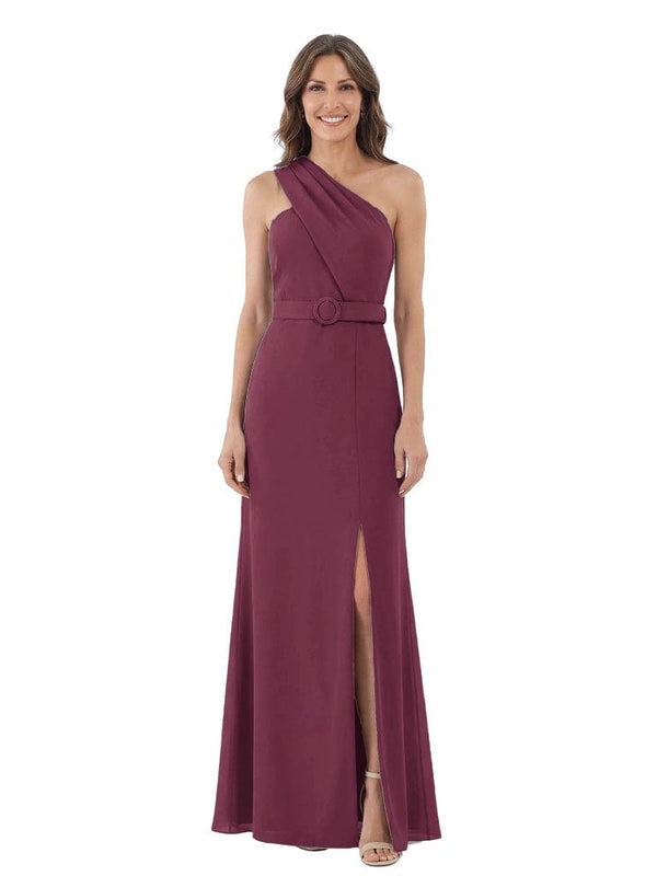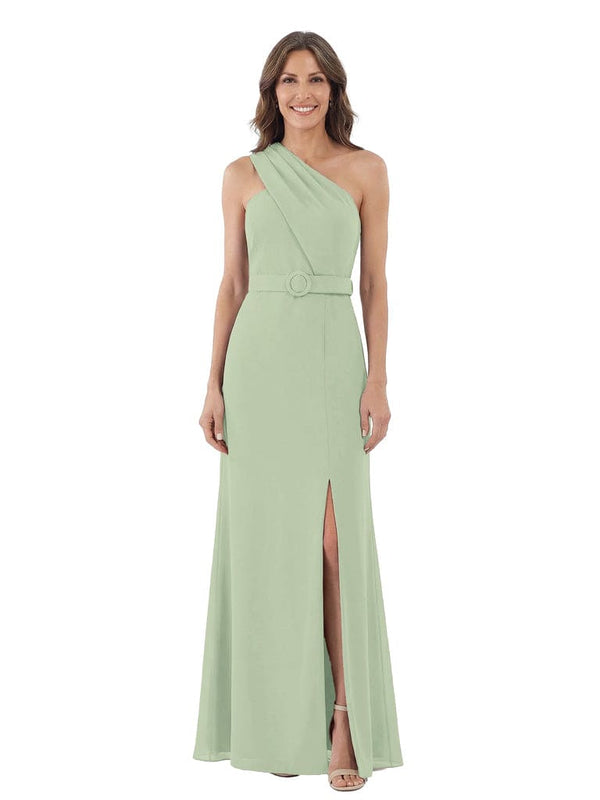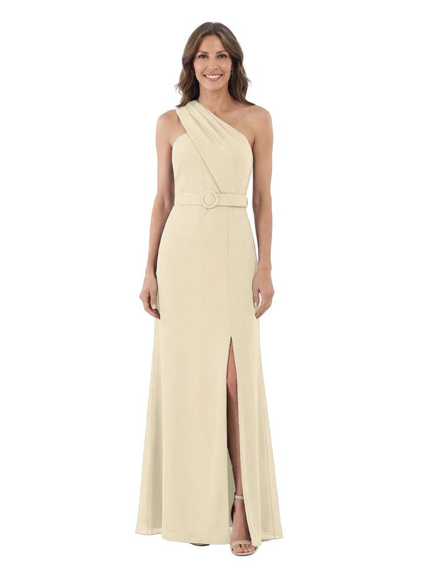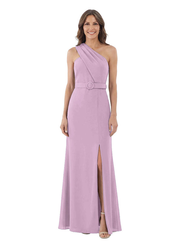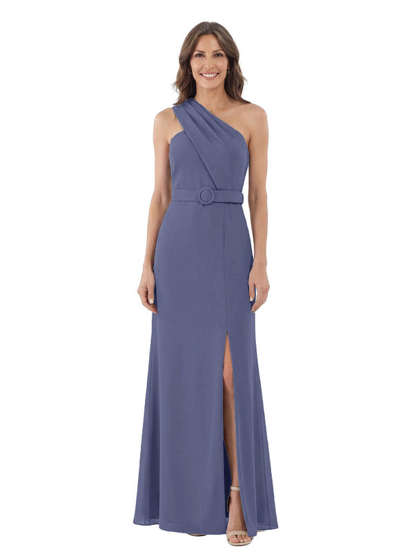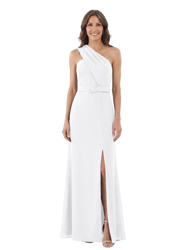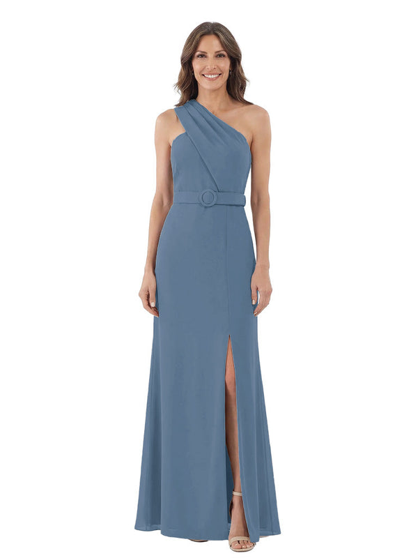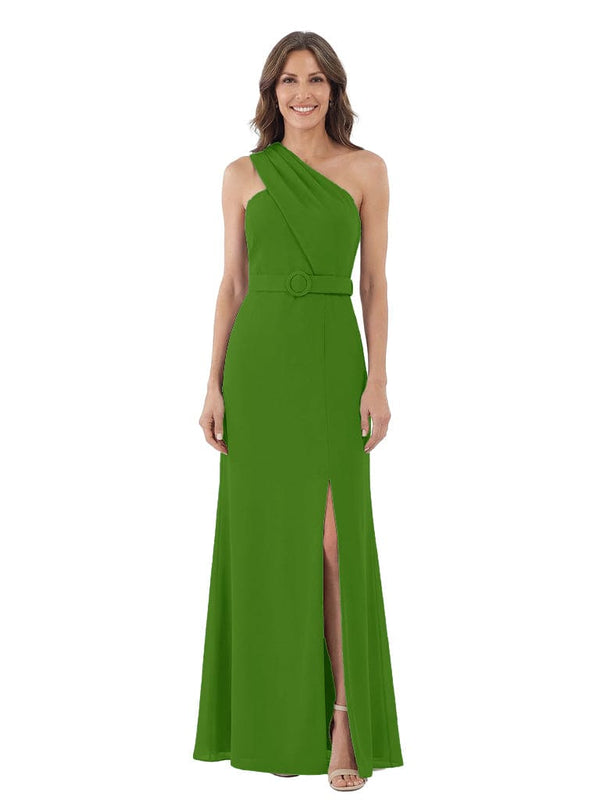 Modern One Shoulder Satin Mother of The Groom Dress Maxi Sheath Gown with Belt Accent Side Slit for Formal Wedding Events - ChicSew