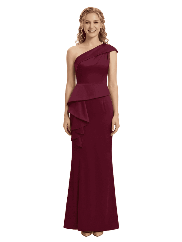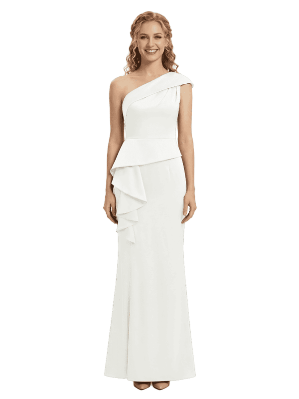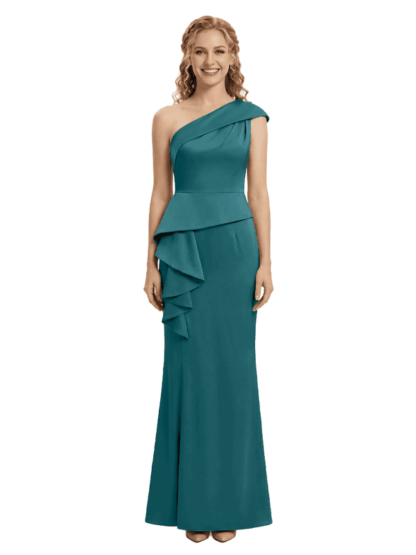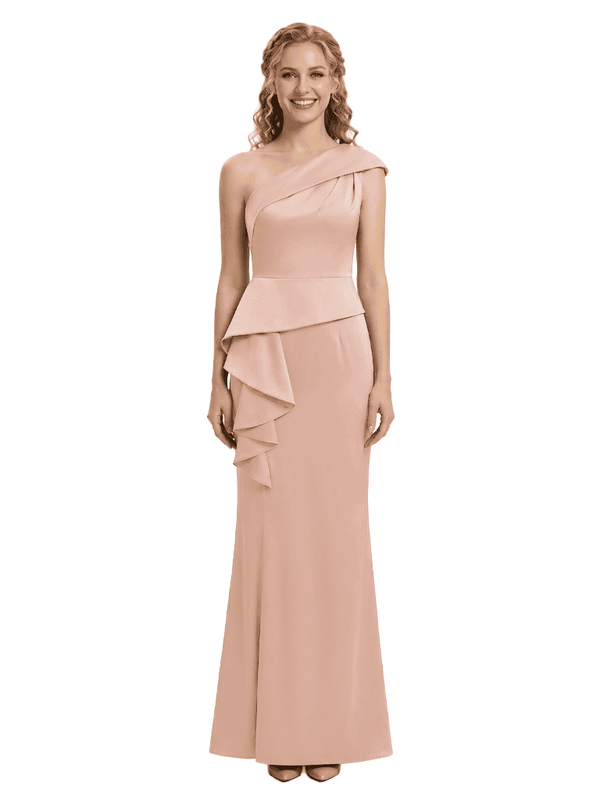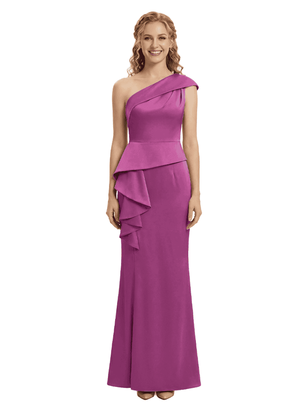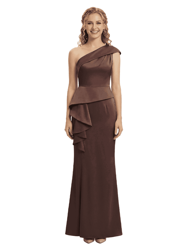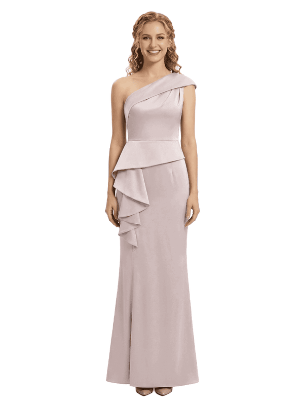 Morden Asymmetric Satin Mother of The Bride Dress Sleeveless Ruffles Mermiad Maxi Gown - ChicSew